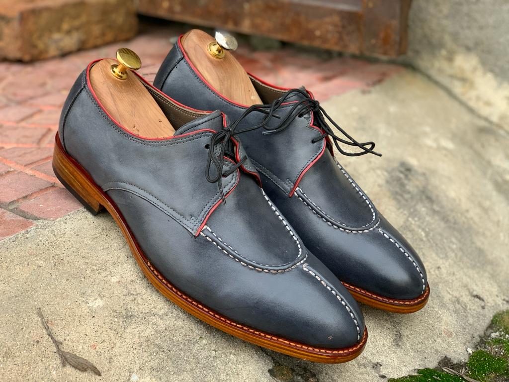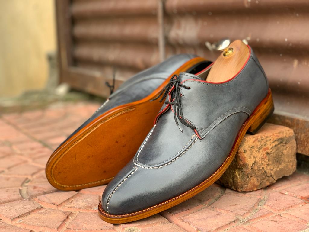 Hand Painted Gray Split Toe Leather Lace Up Shoes