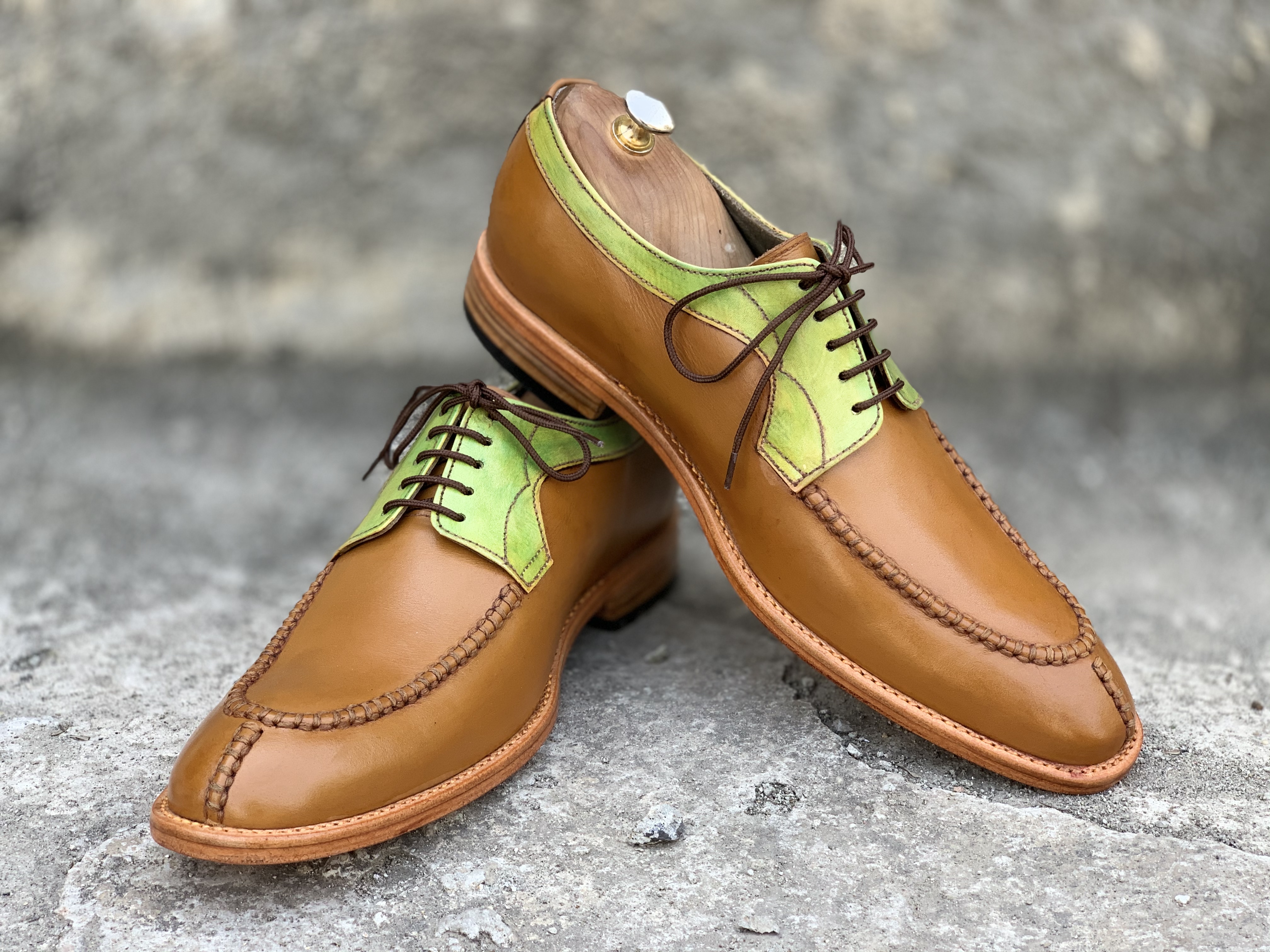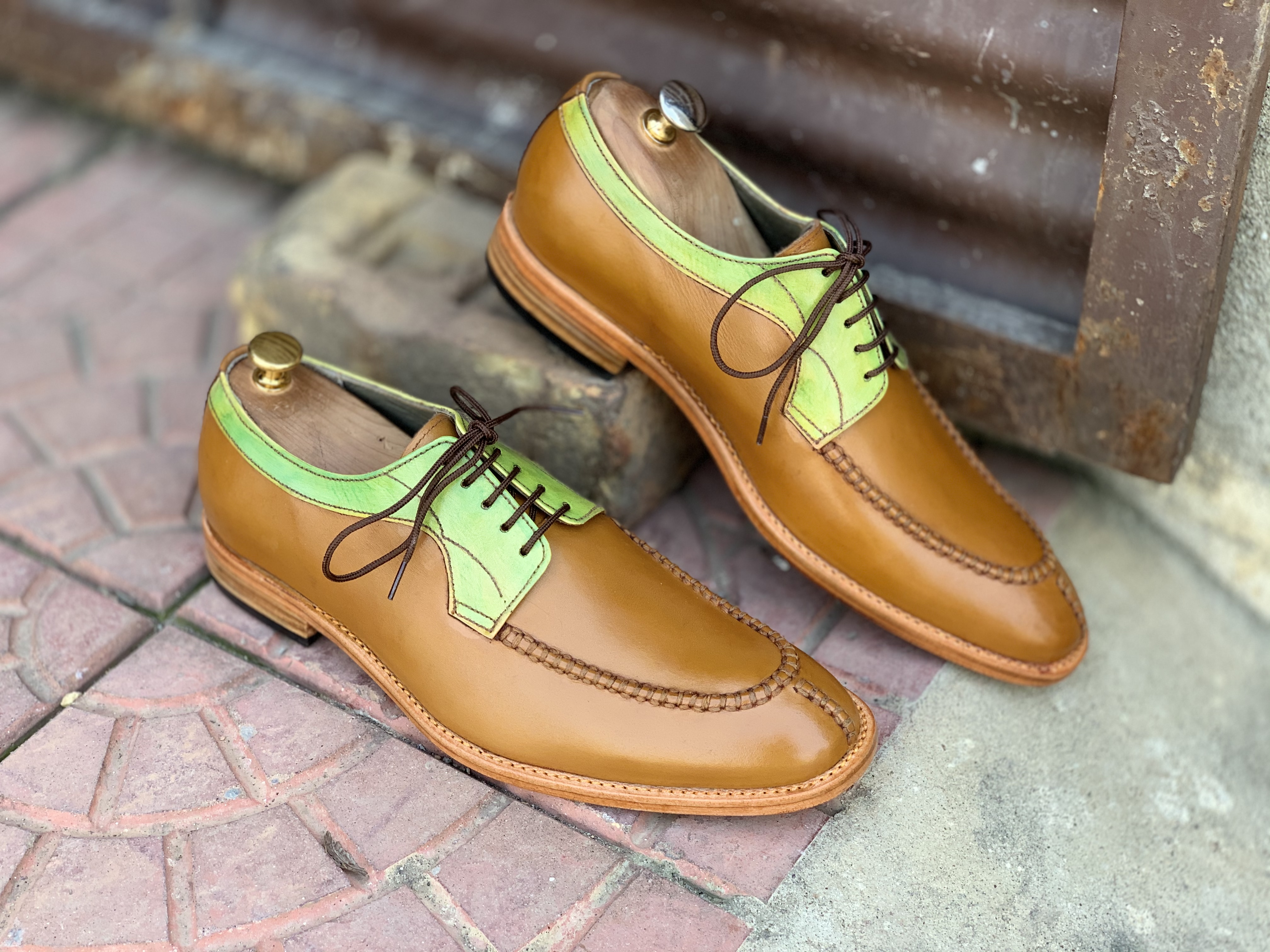 Handmade Two Tone Yellow & Tan Leather Lace Up Shoes