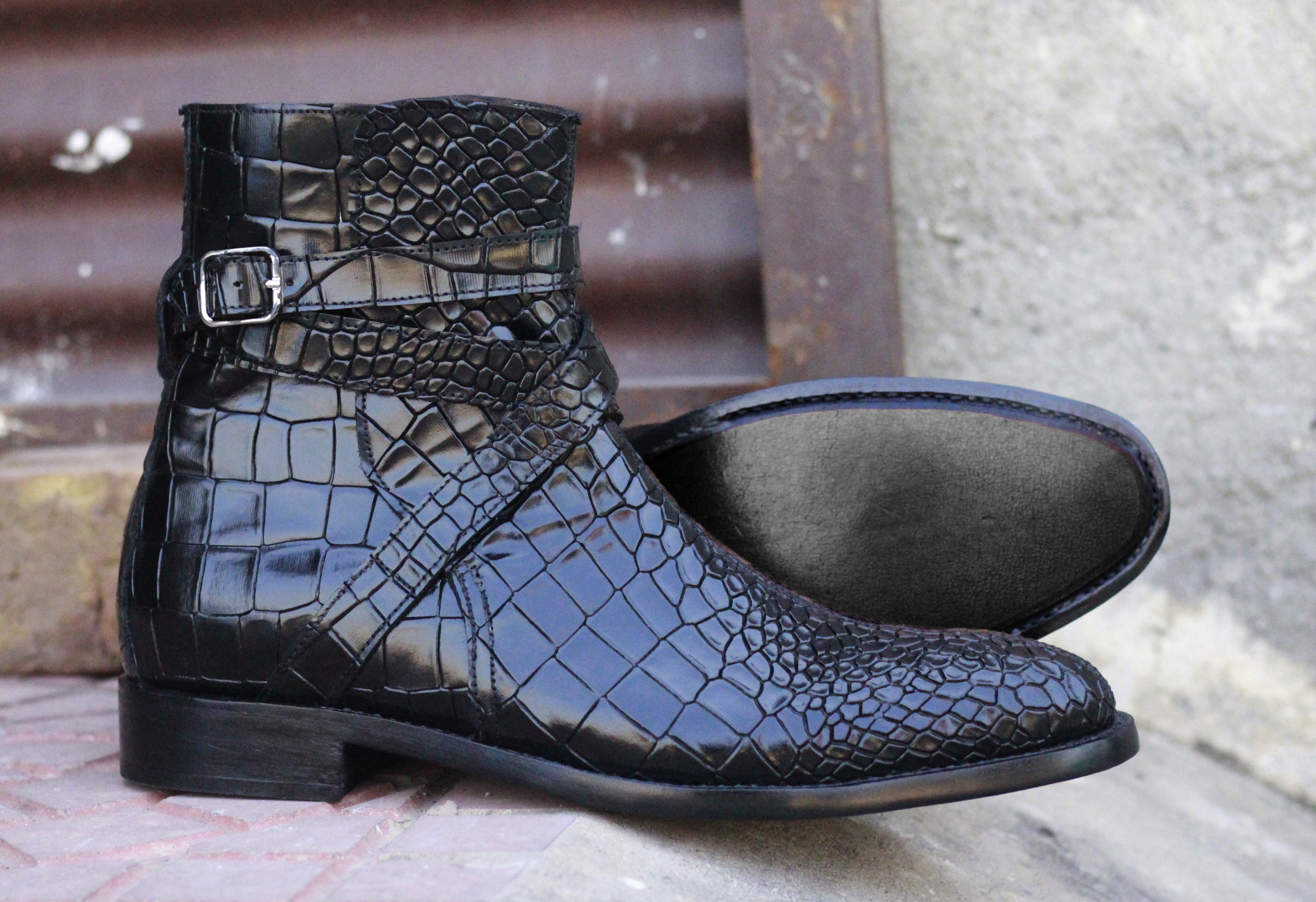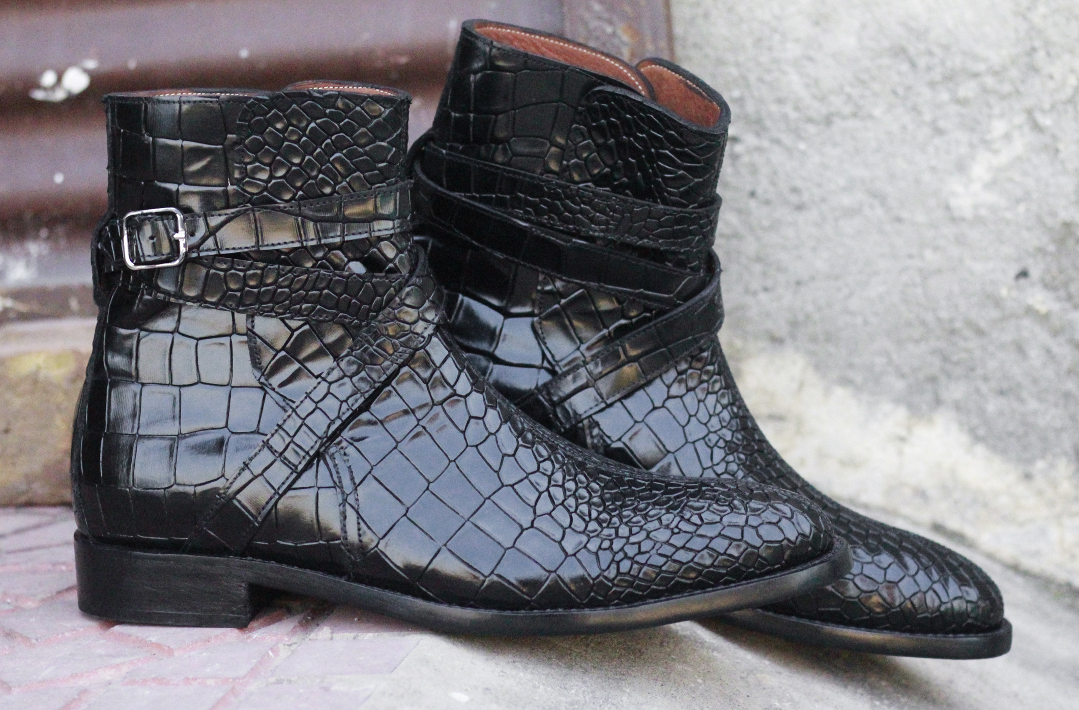 Black Alligator Ankle High Leather Jodhpurs Boot