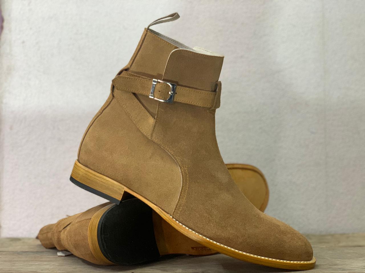 Ankle High Beige Suede Leather Jodhpurs Boot For Men