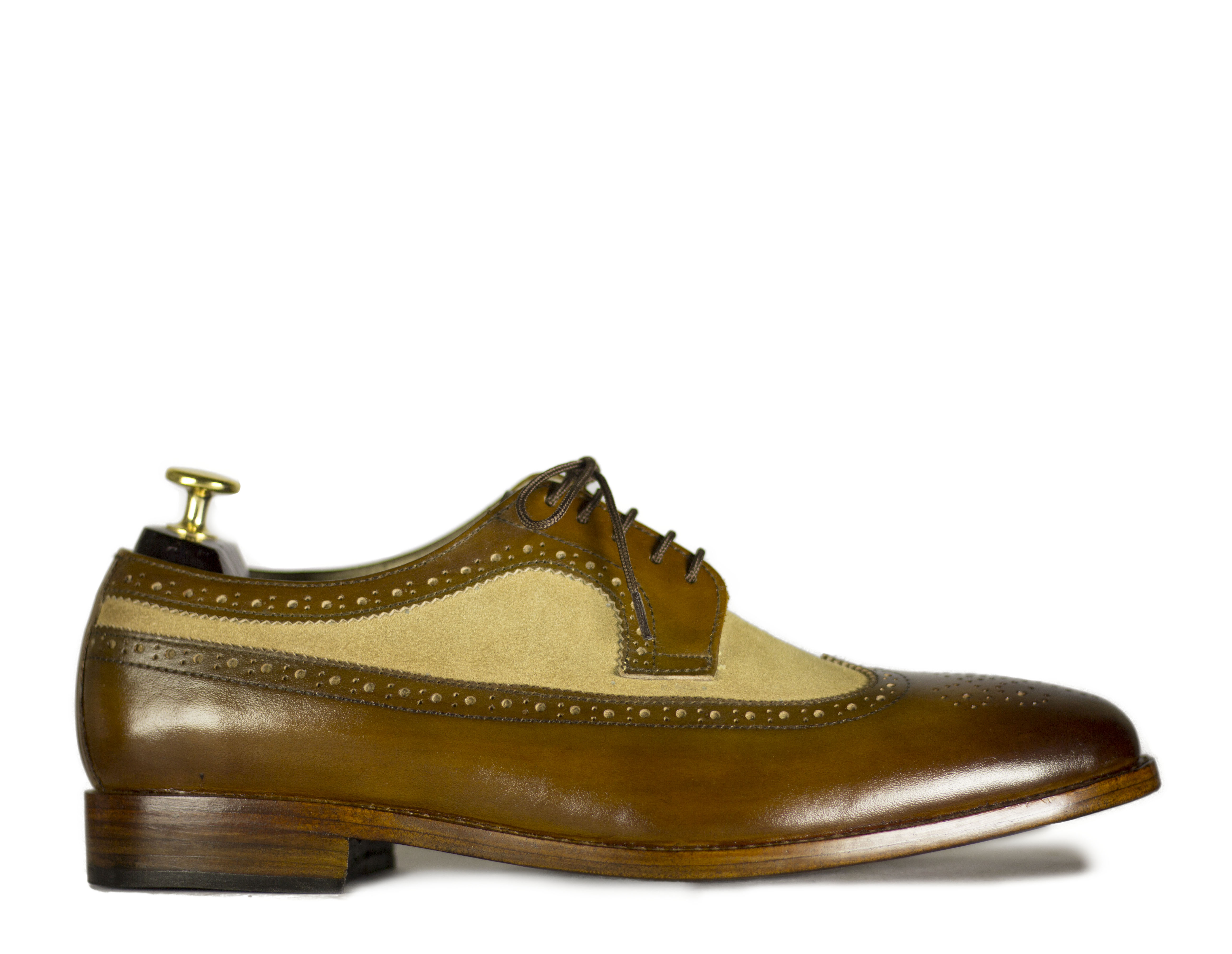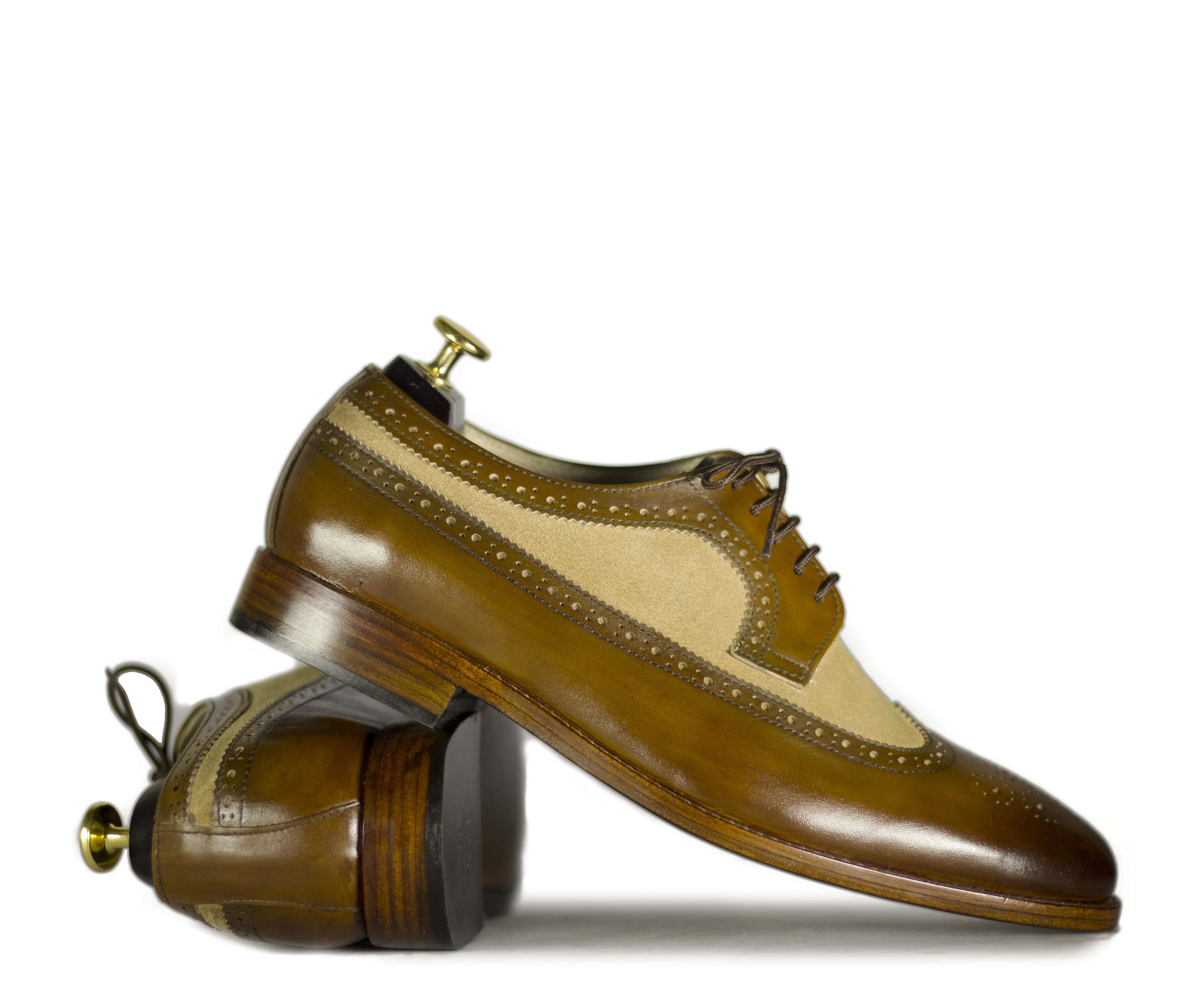 Stylish Brown Beige Lace Up Leather Brogue Shoes
