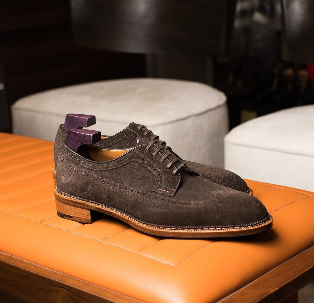Cordovan Lace Up Wing Tip Brogue Leather Suede Shoes