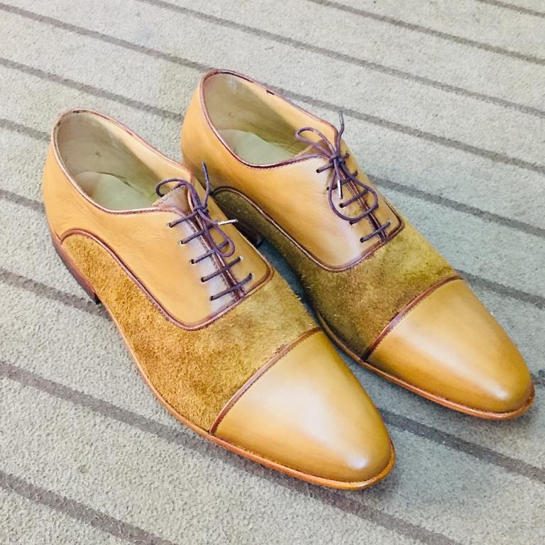 Tan cap Toe Lace Up Leather Suede Men's Formal Shoes