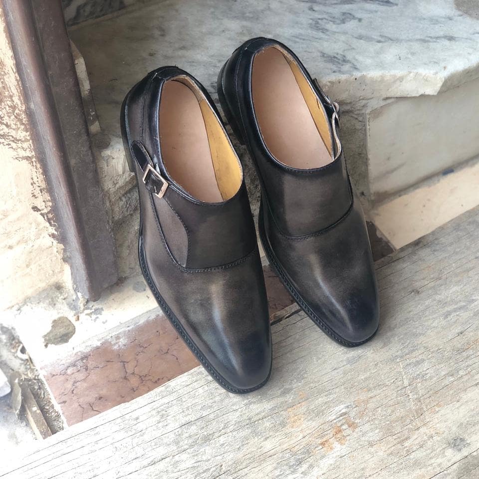 Handmade Side Buckle Leather Men's Foot Wear Shoes