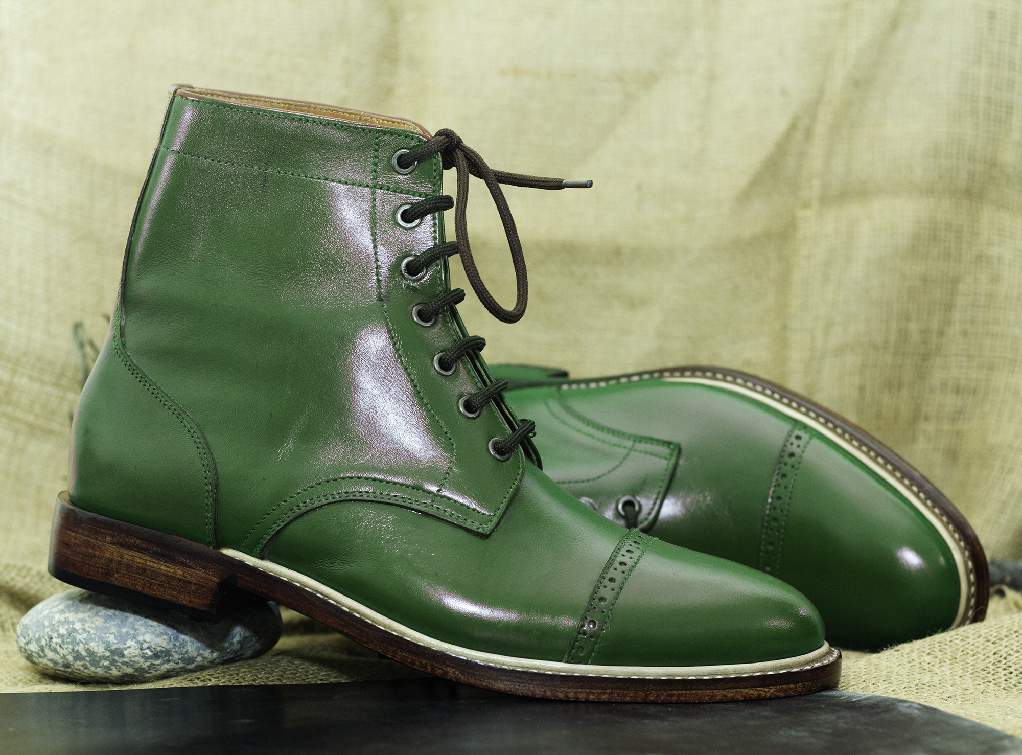 Beautiful Green Cap Toe Ankle High Leather Lace Up Boot