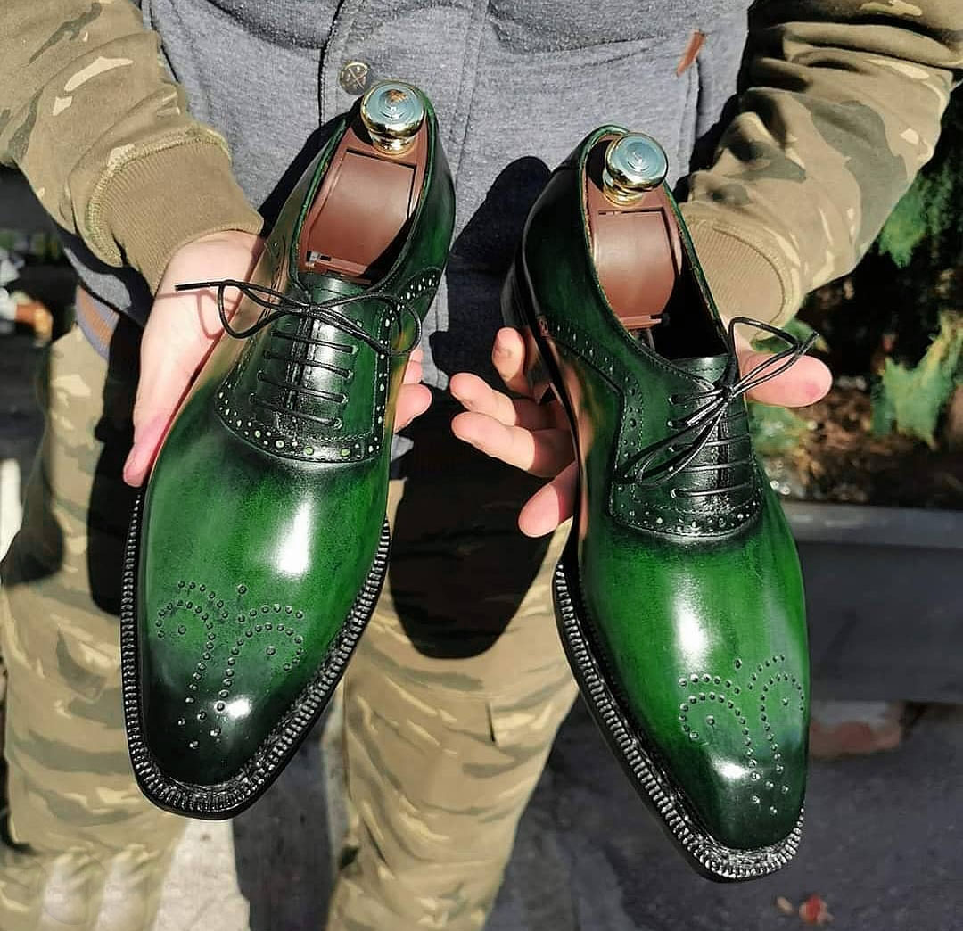 Hand Painted Bottle Green Lace Up Leather Brogue Shoes