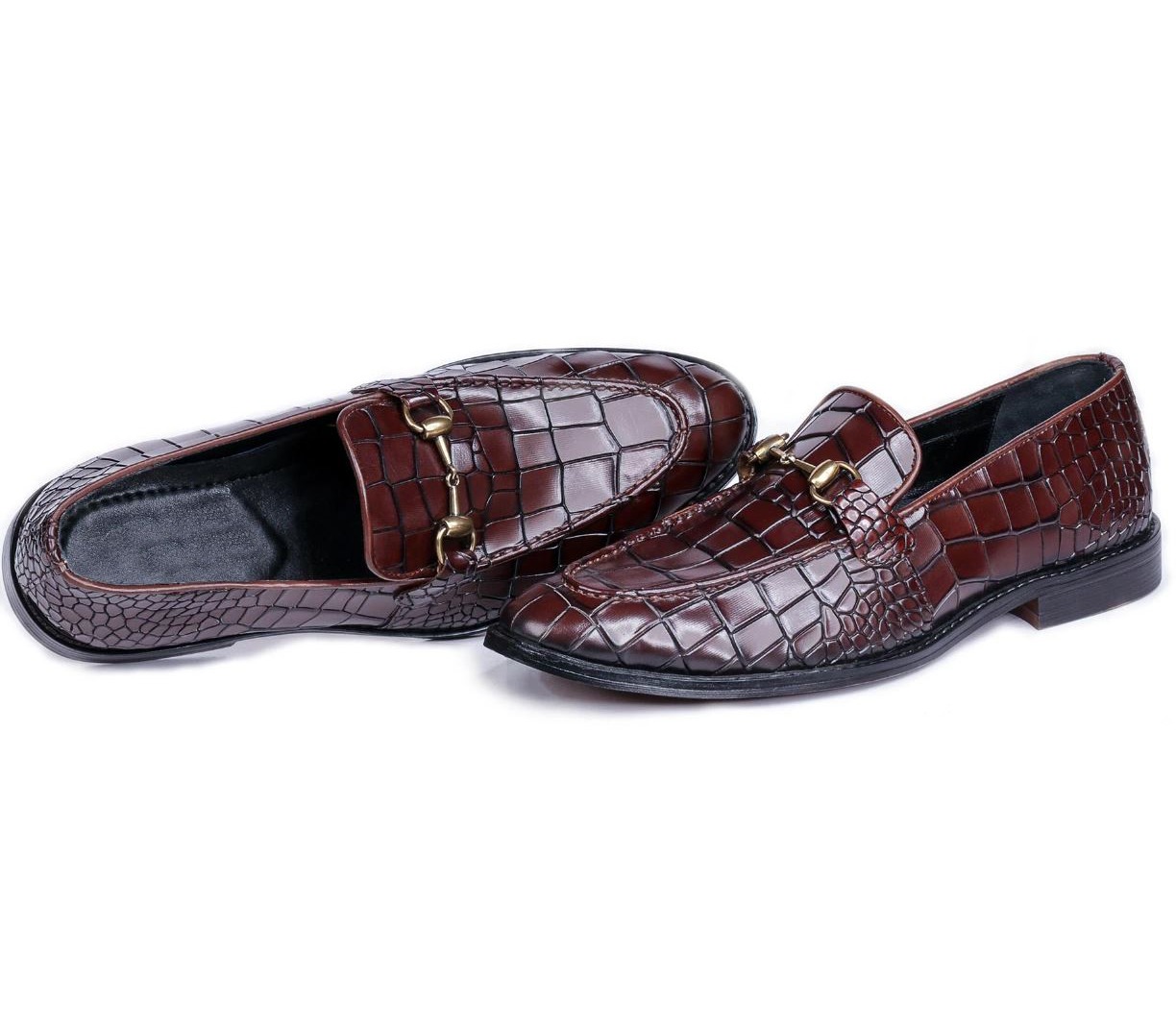 Slip On Brown Alligator Texture Leather Loafers For Men