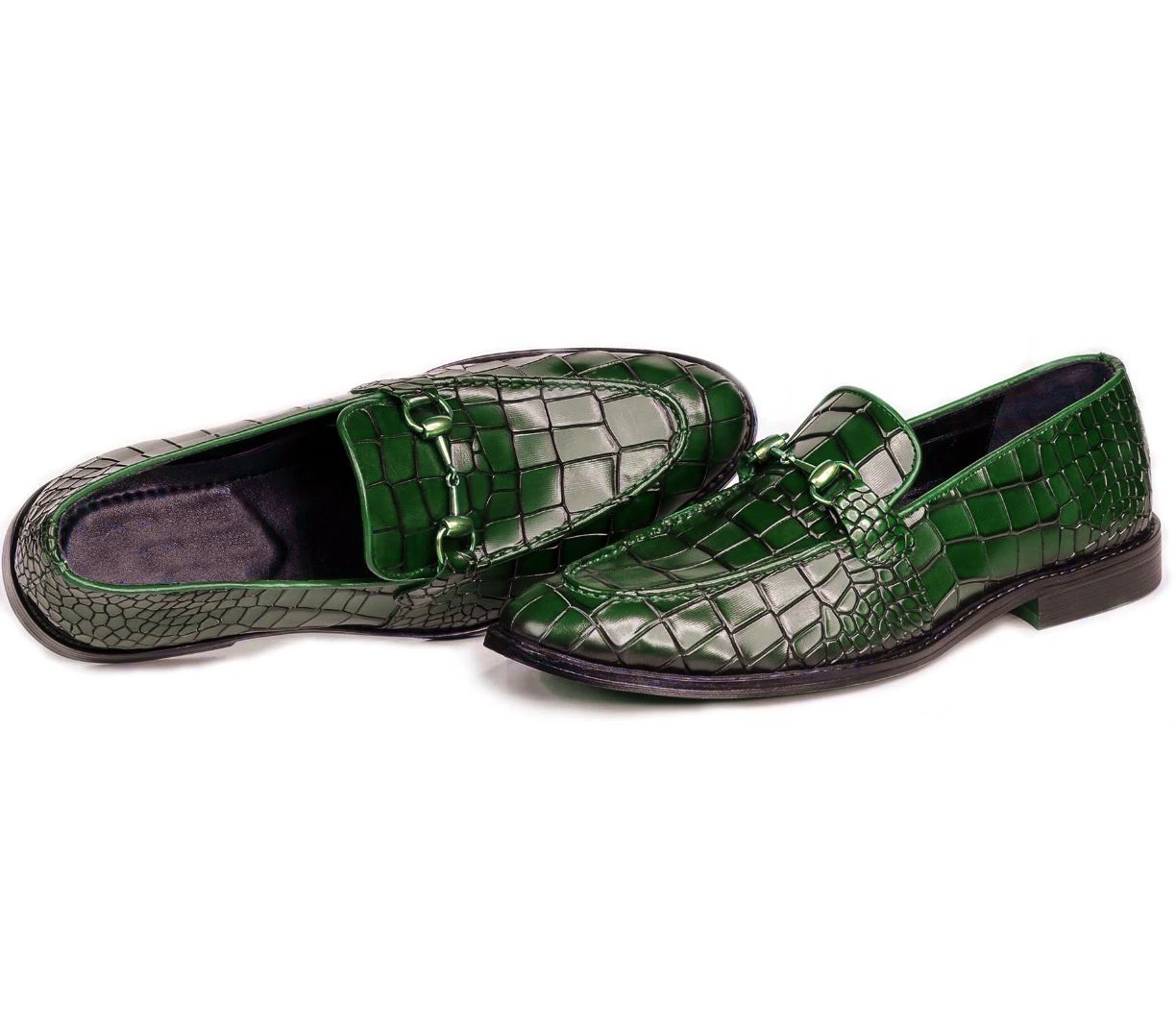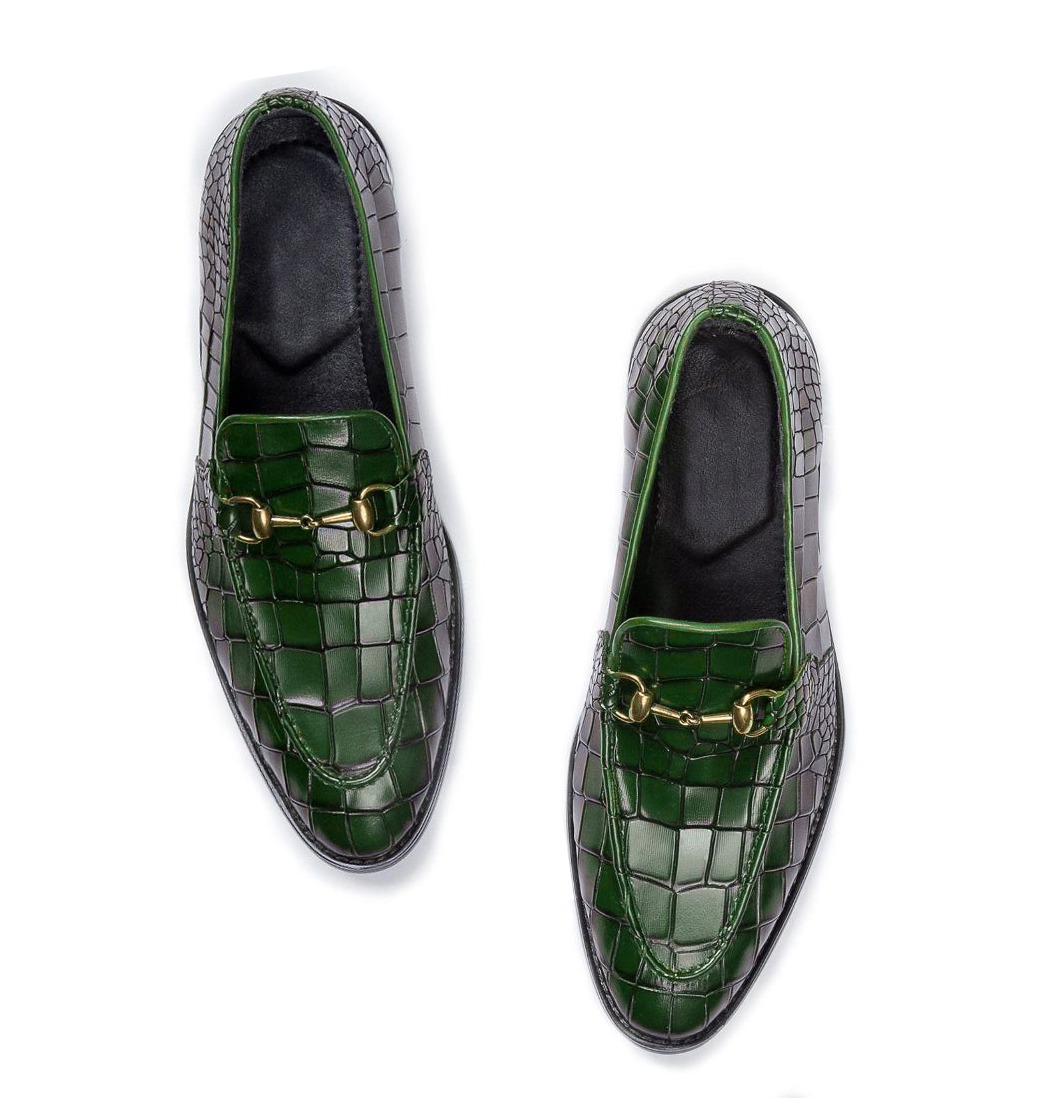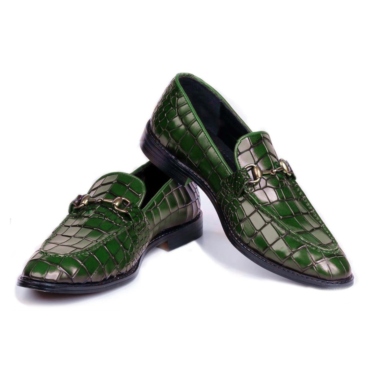Handmade Round Toe Alligator Texture Slip On Leather Loafers