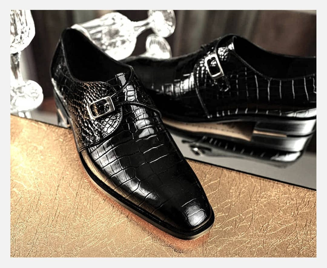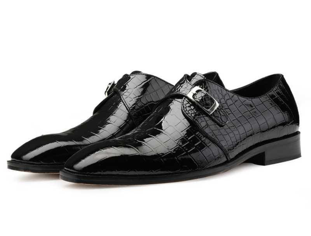 Handmade Pure Black Alligator Leather Monk Style Men's Shoes