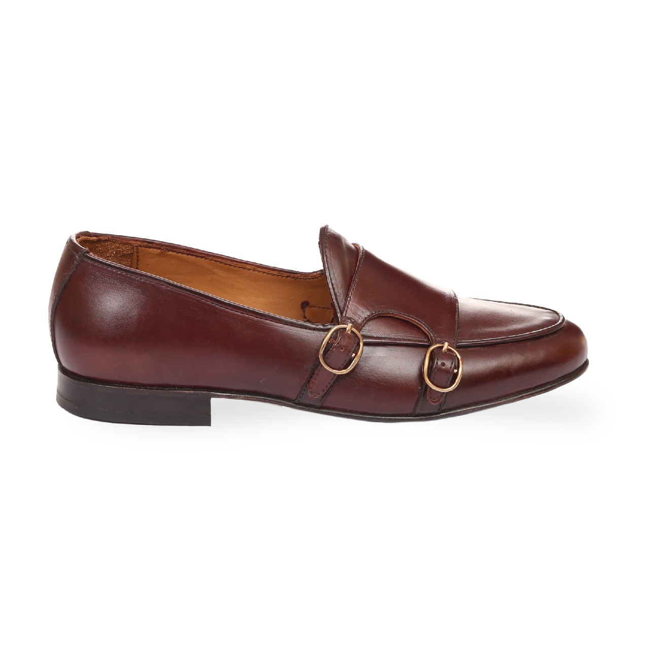 Handmade Men's Brown Double Monk Penny Leather Loafer Shoes