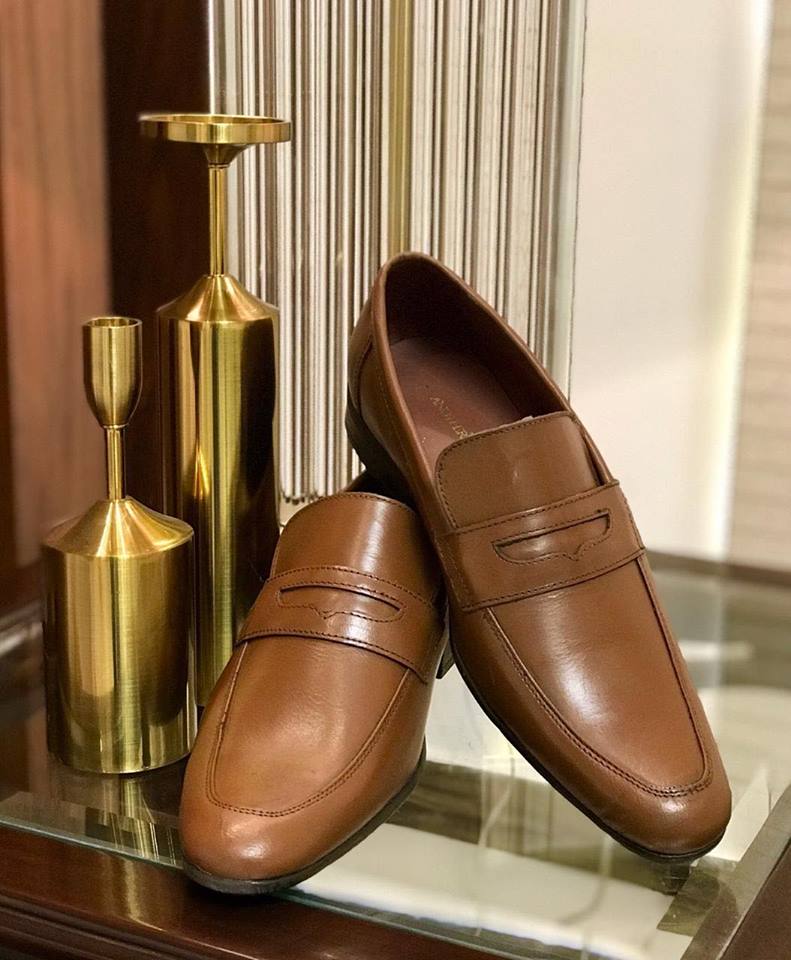 Hand Crafted Round Toe Men's Brown Slip On Dress Leather Loafers