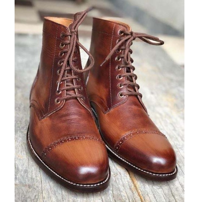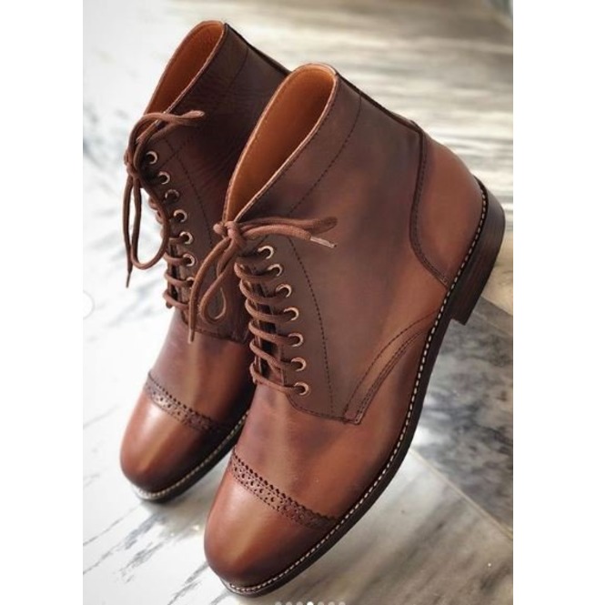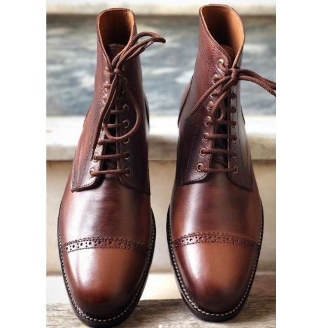 Hand Crafted Men’s Brogue Lace Up Cap Toe Ankle Dress Boots