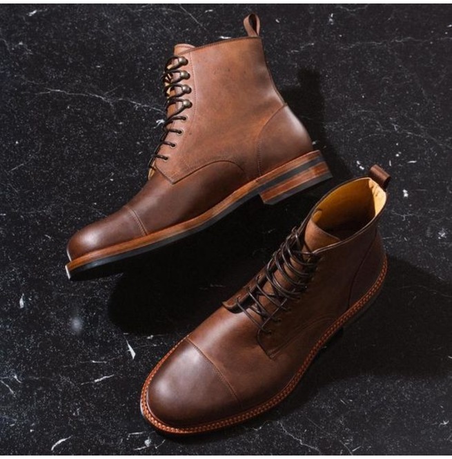 Hand Crafted Antique Brown Leather Ankle High Cap Toe Boots