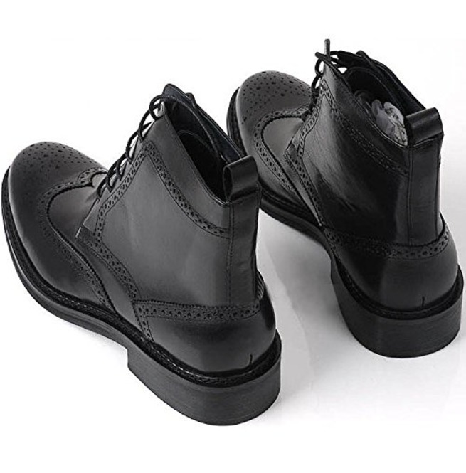 Hand Painted Black Wing Tip Brogue Ankle Dress Leather Boot