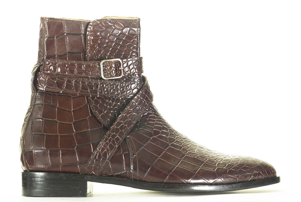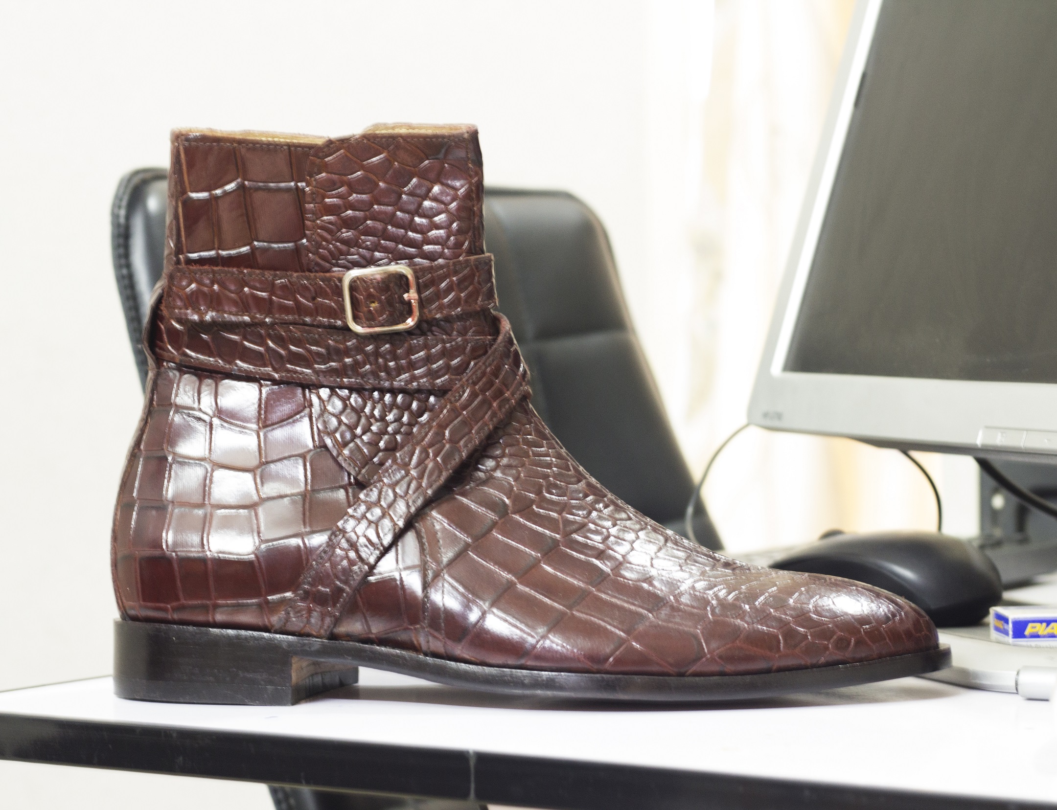 Handmade Brown Ankle High Alligator Texture Leather Jodhpurs Boot
