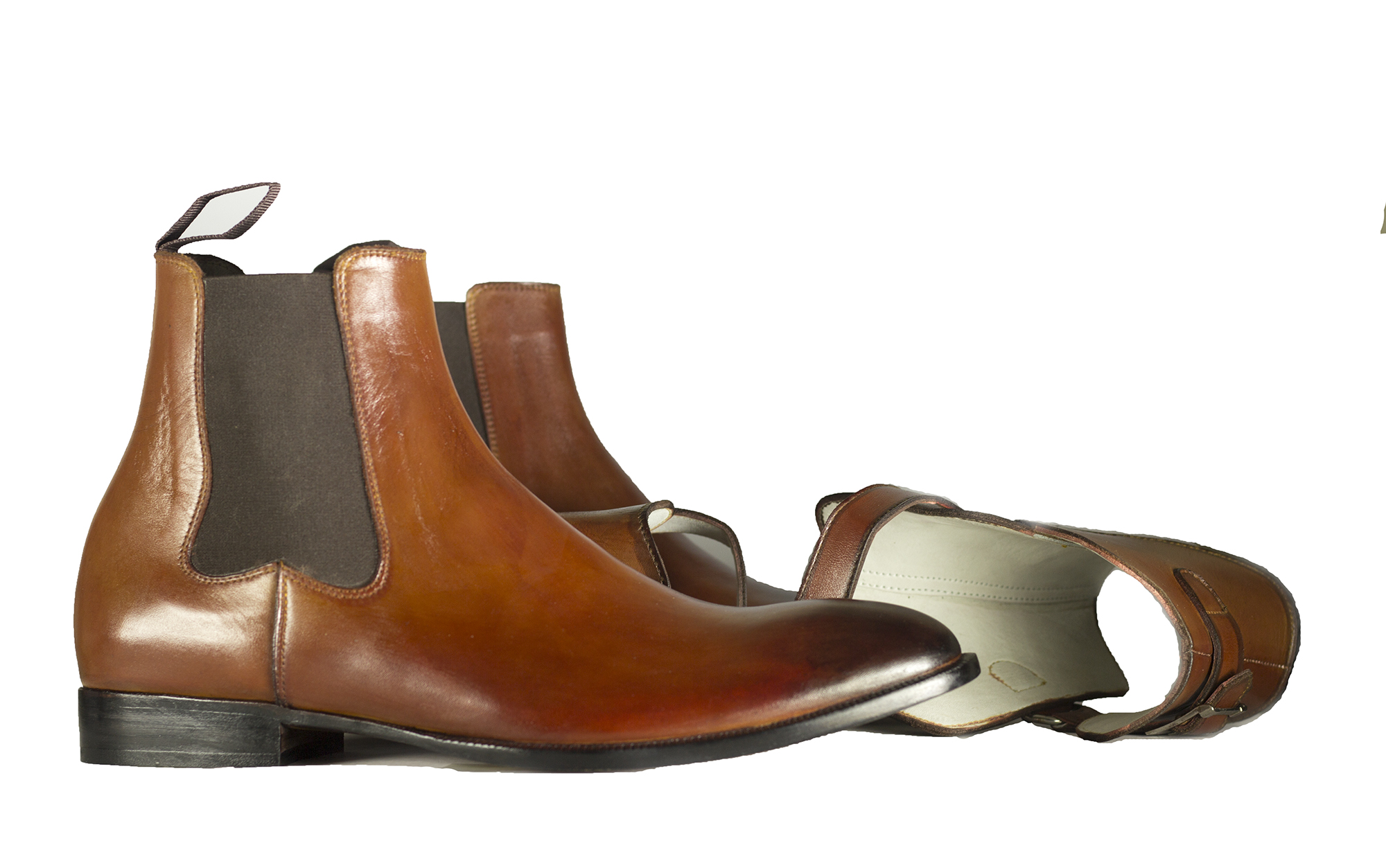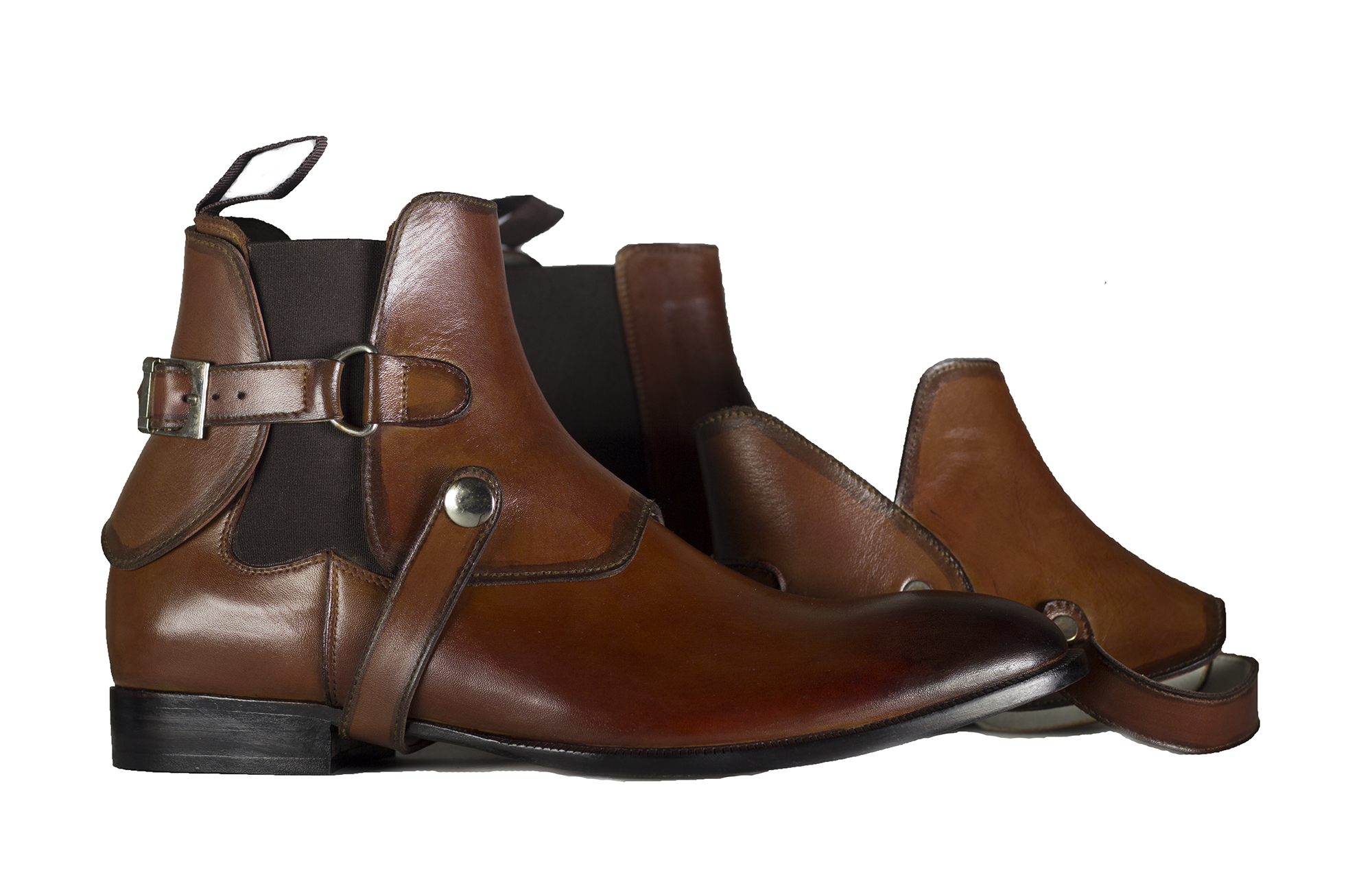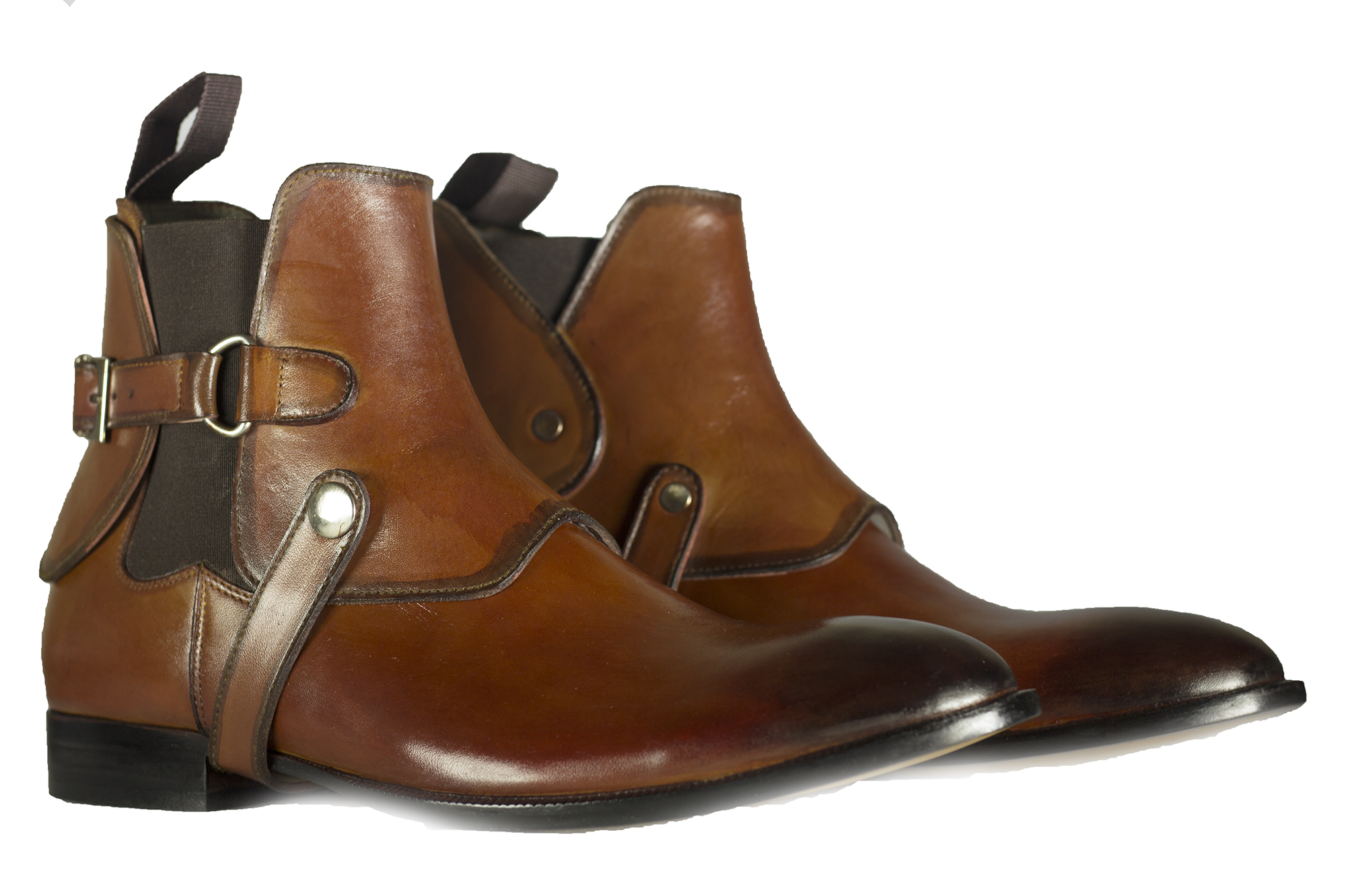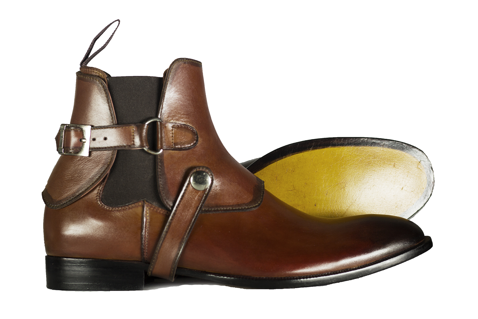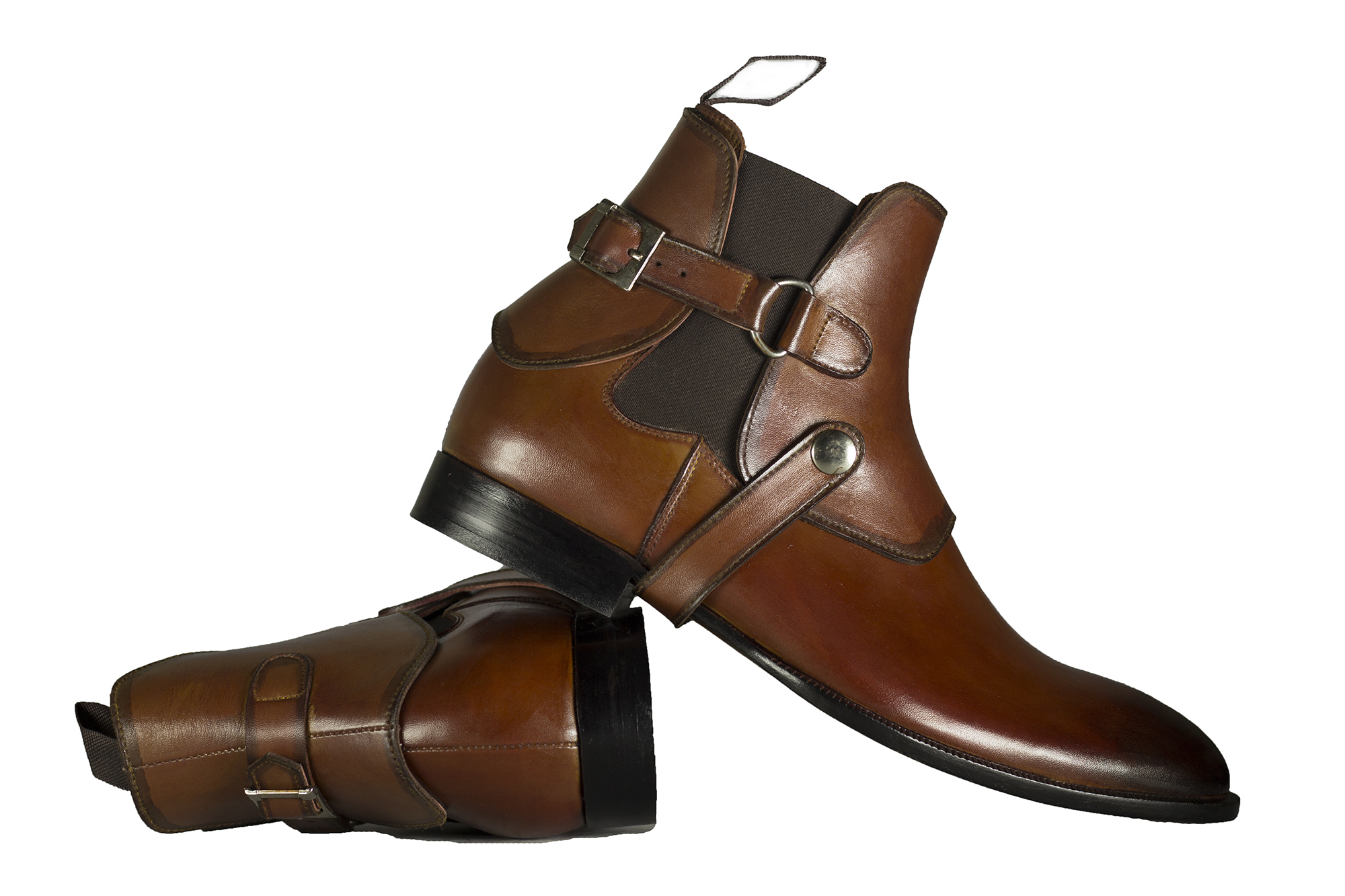 Hand Crafted Brown Ankle High Chelsea Buckle Strap Leather Boot