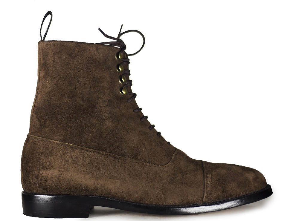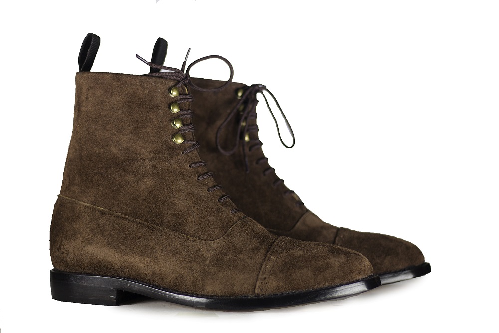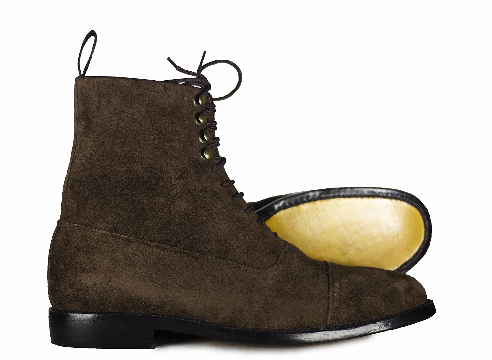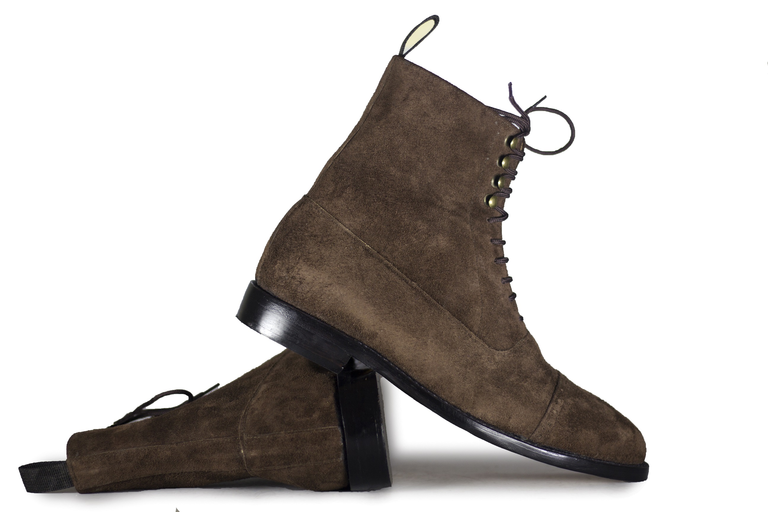 Ankle High Brown Cap Toe Leather Suede Lace Up Boot