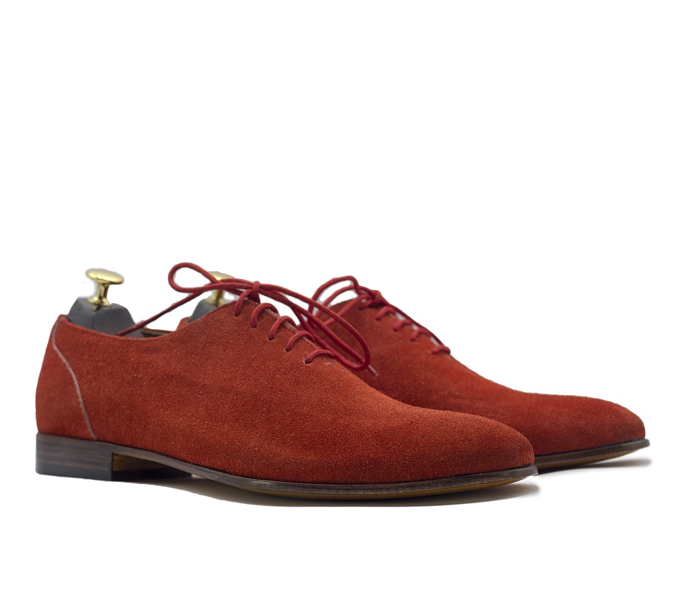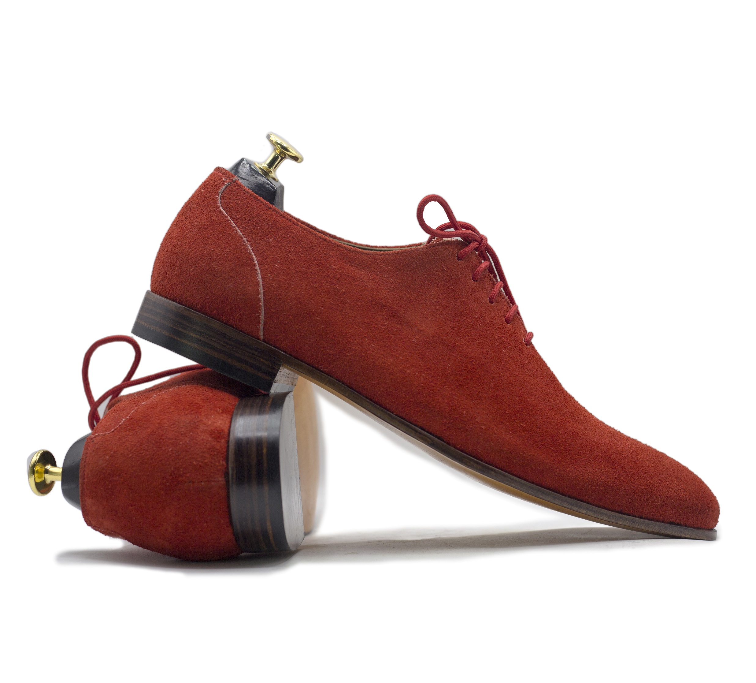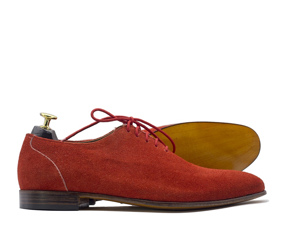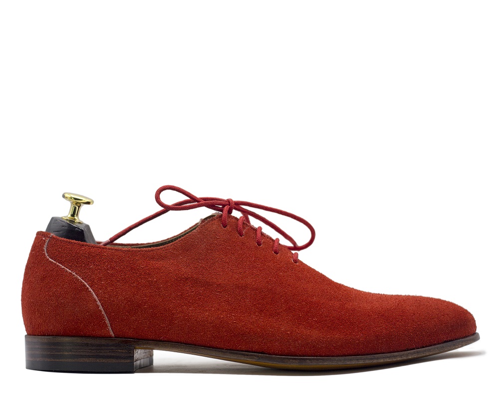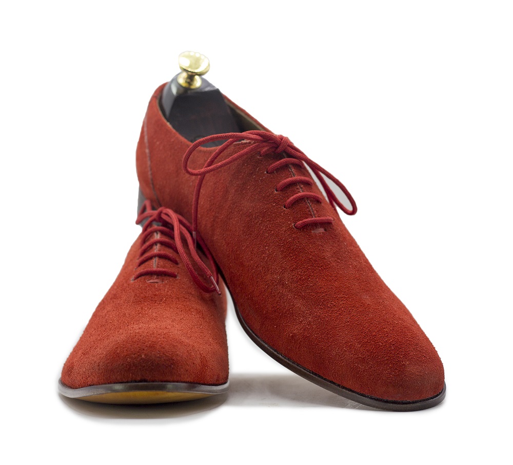 Handmade Pure Red Leather Suede Lace Up Shoes For Men