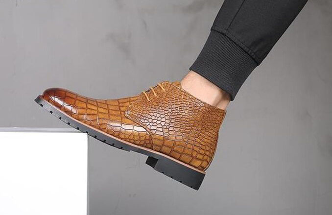 Half Ankle Alligator Texture Leather Chukka Boot For Men