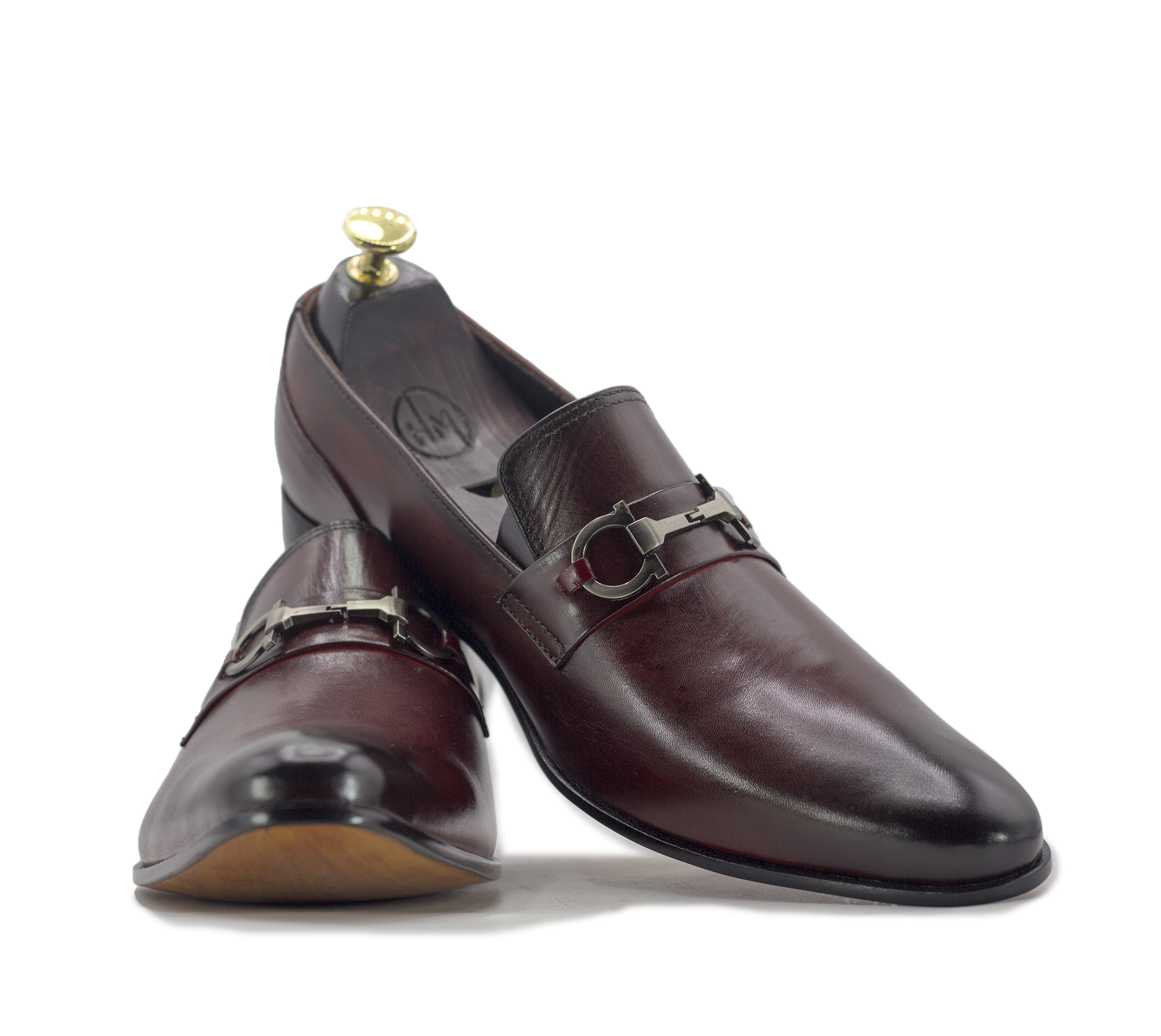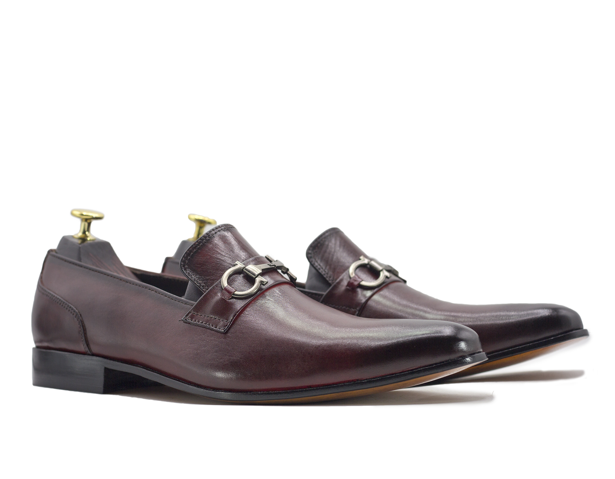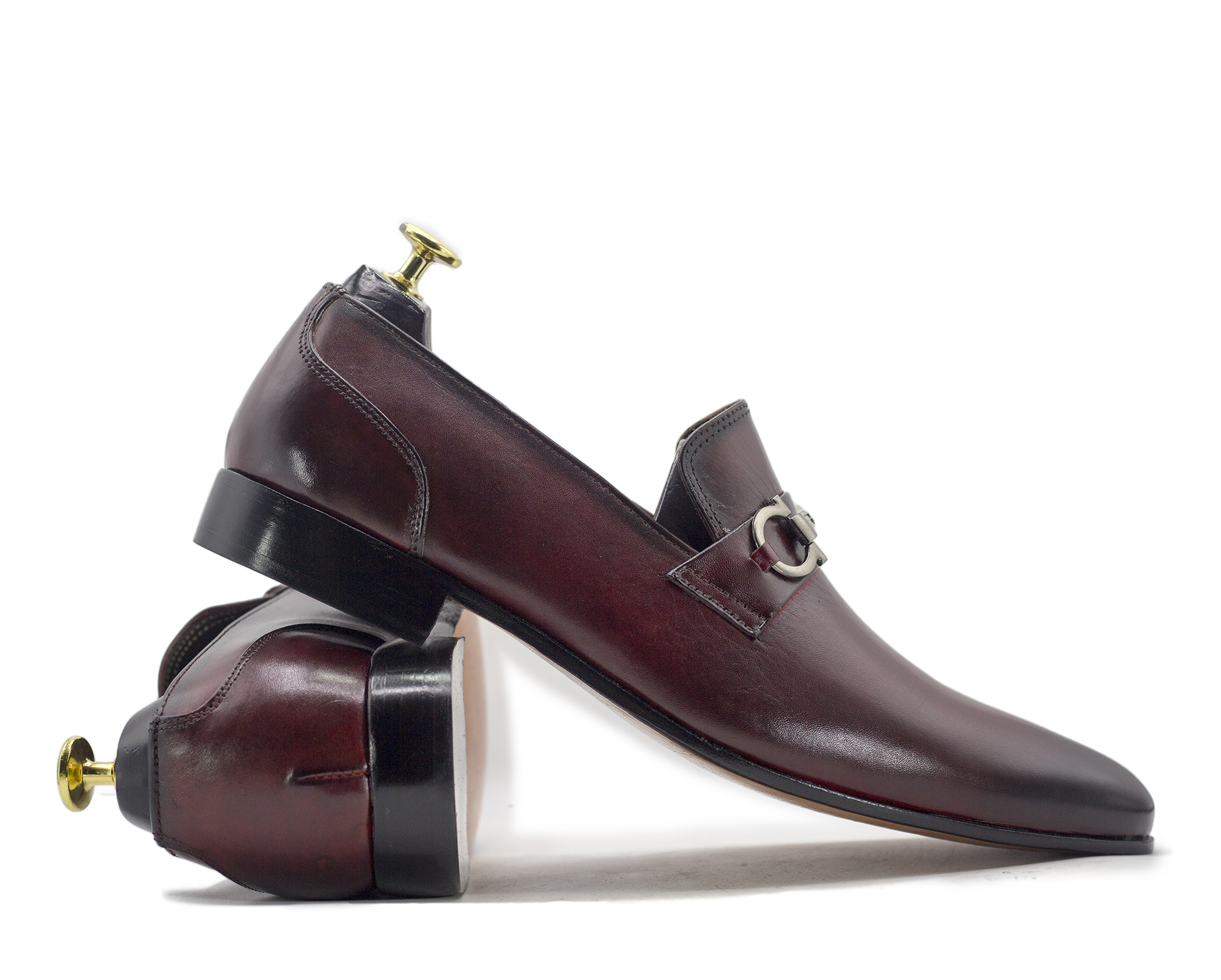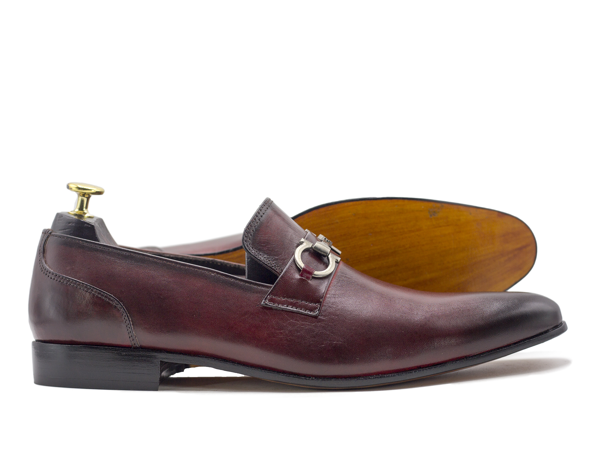 Hand Painted Burgundy Pointed Toe Leather Slip On Moccasin Loafers