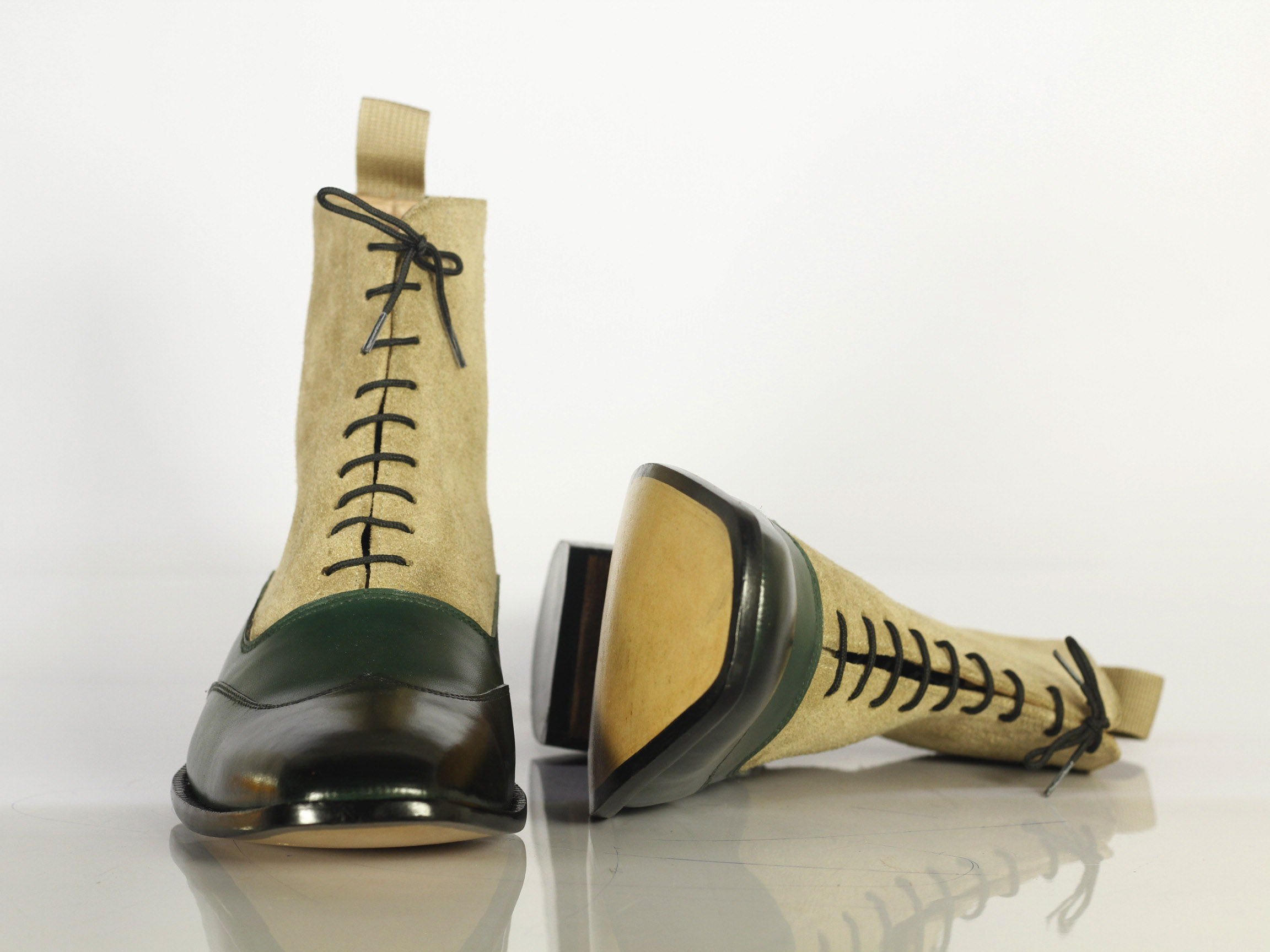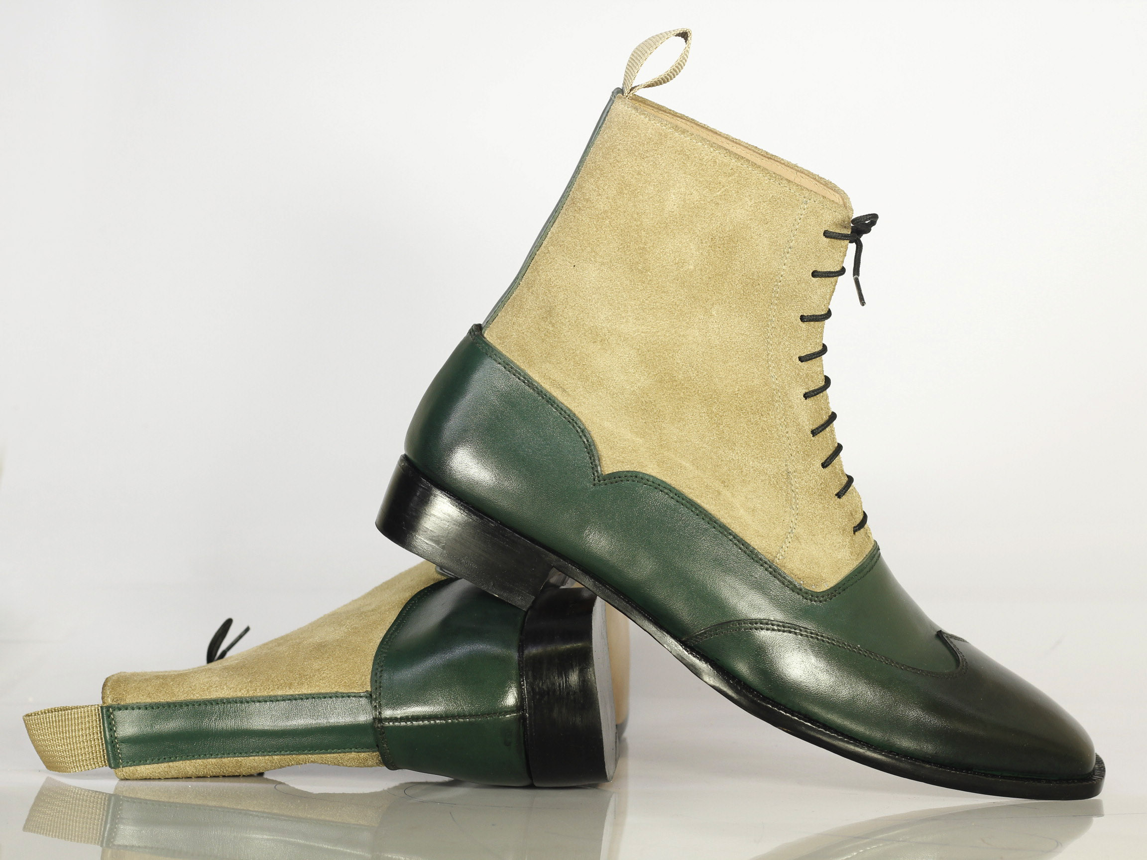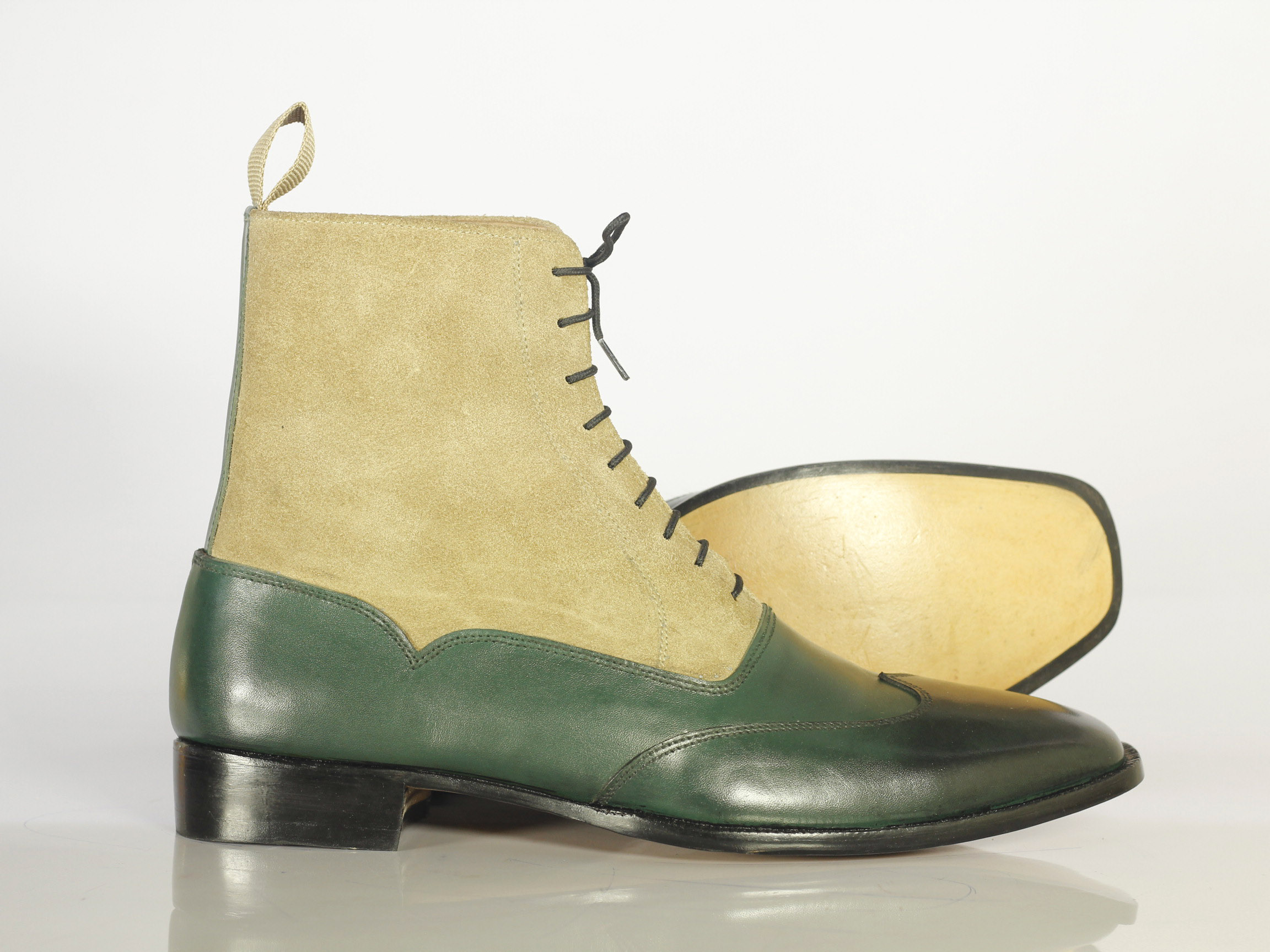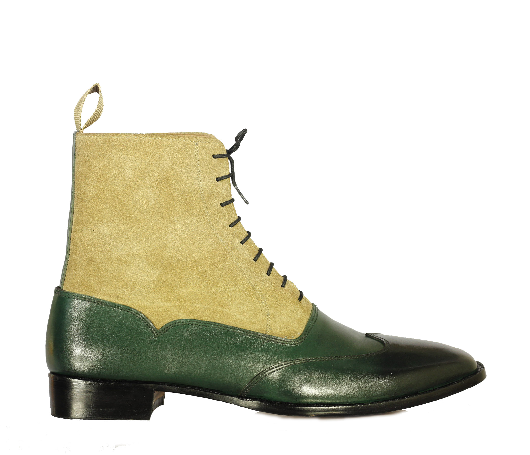 Hand Crafted Ankle High Two Tone Wing Tip Leather Suede Boot