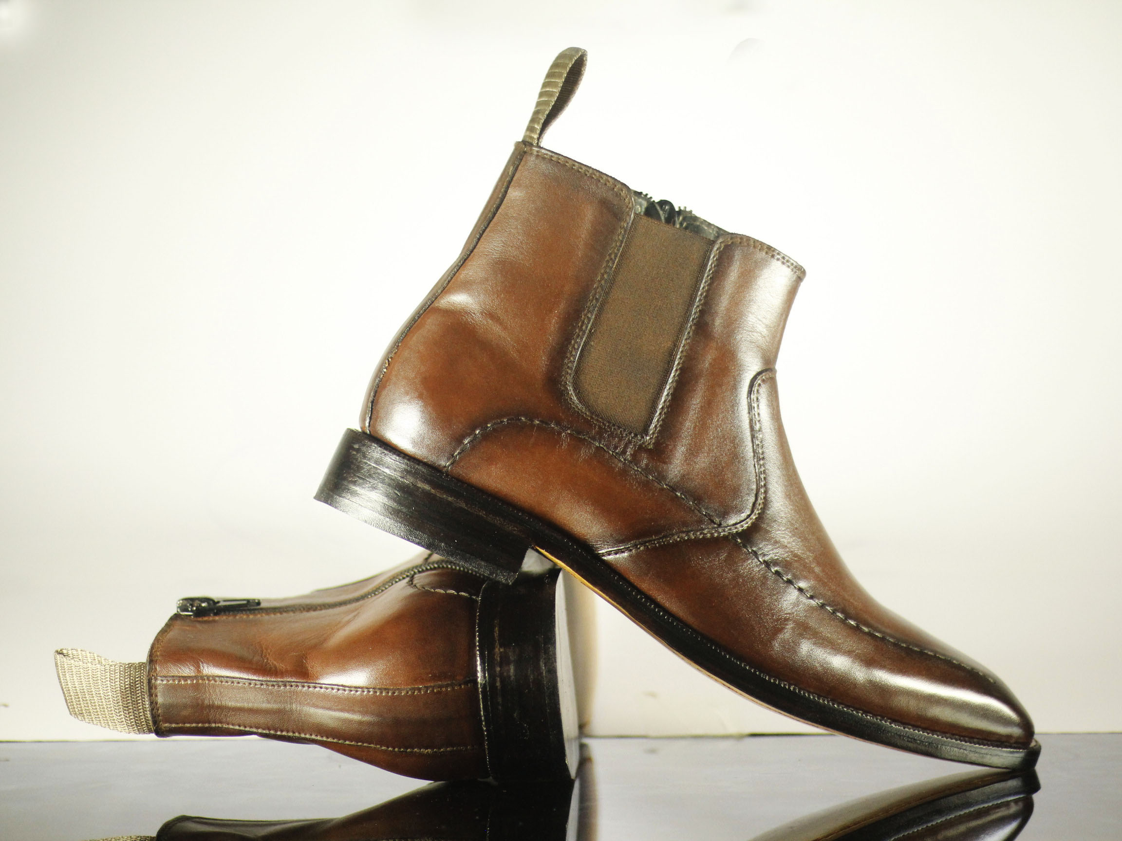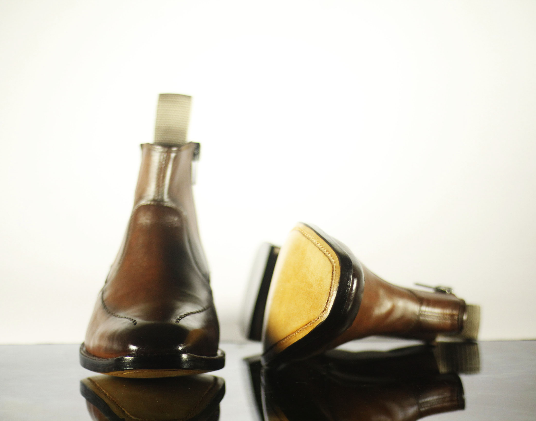 Hand Painted Brown Ankle High Men's Chelsea Boot