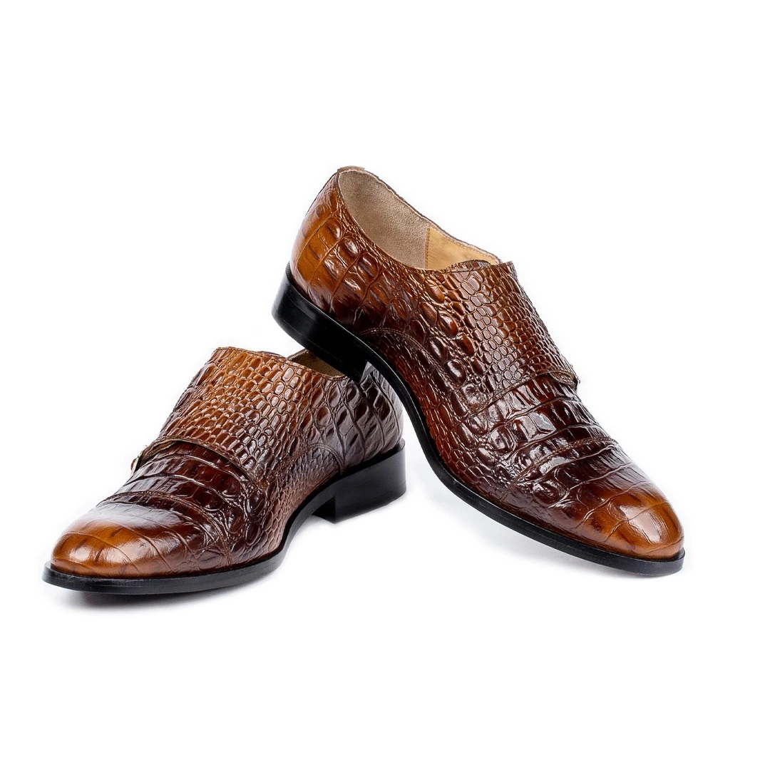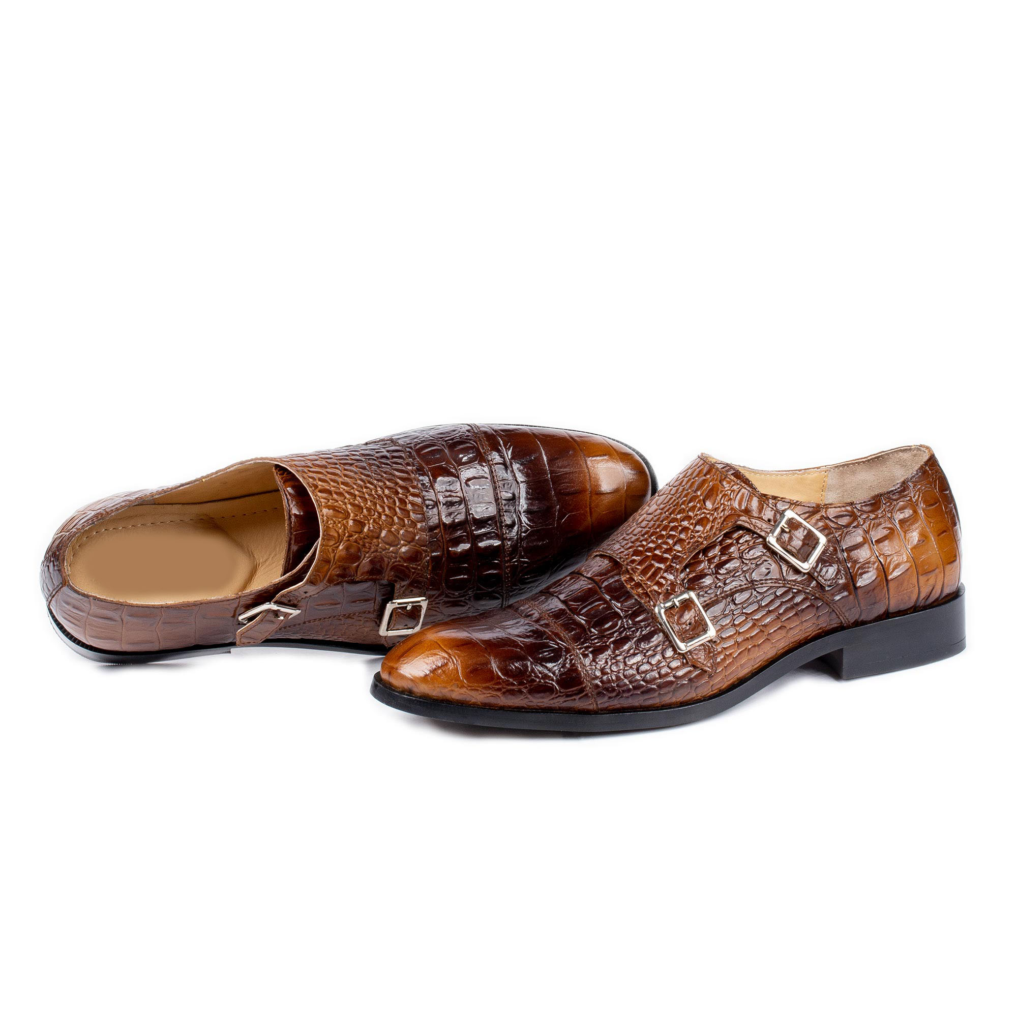 Handmade Double Monk Alligator Texture Leather Men's Shoes