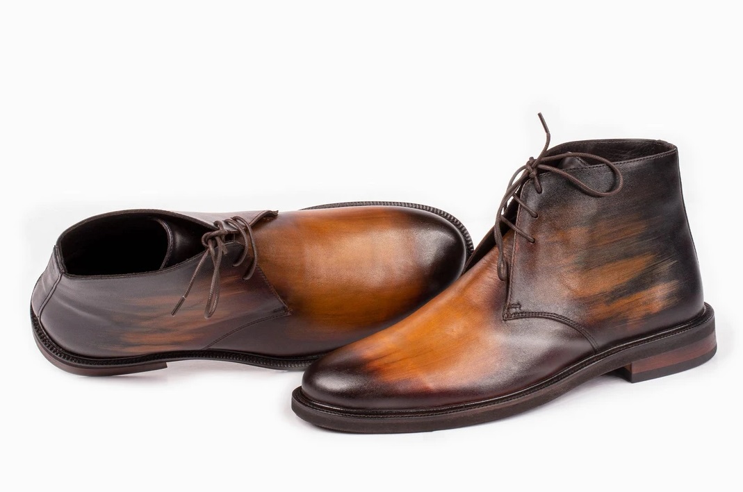 Hand Painted Two Tone Lace Up Leather Chukka Boot For Men