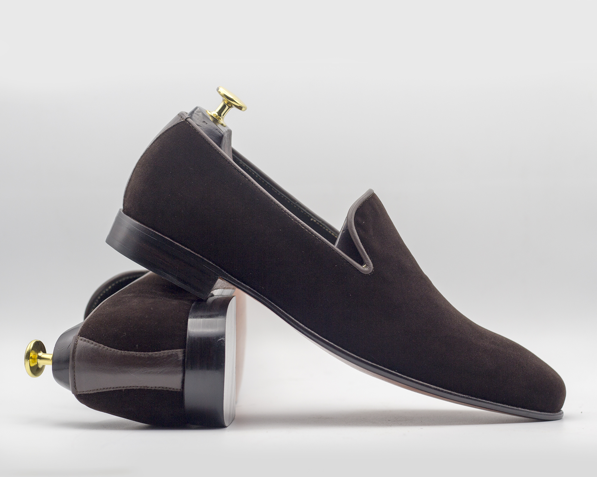 Handmade Cordovan Velvet Whole Cut Men's Moccasin Leather Loafers