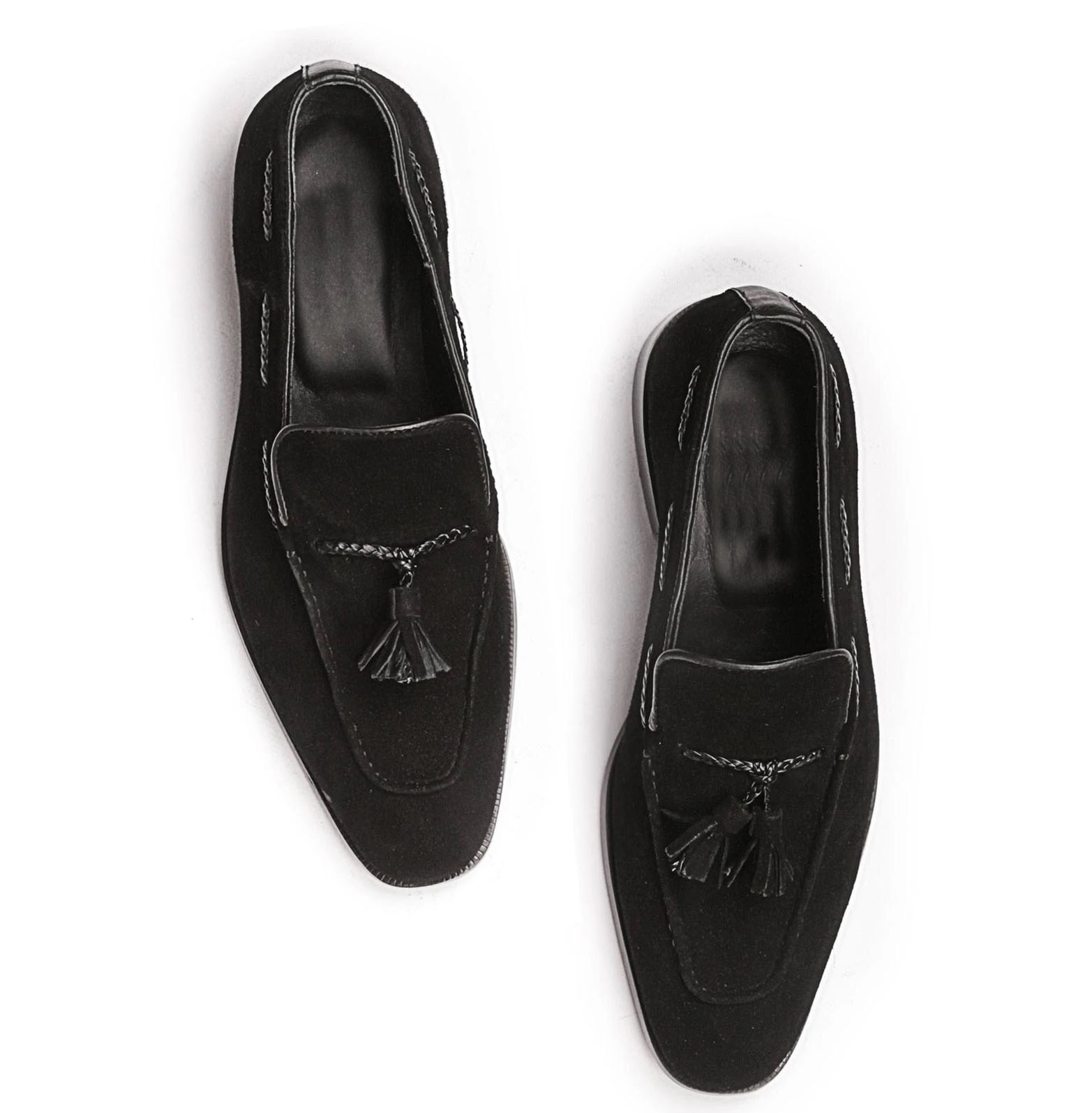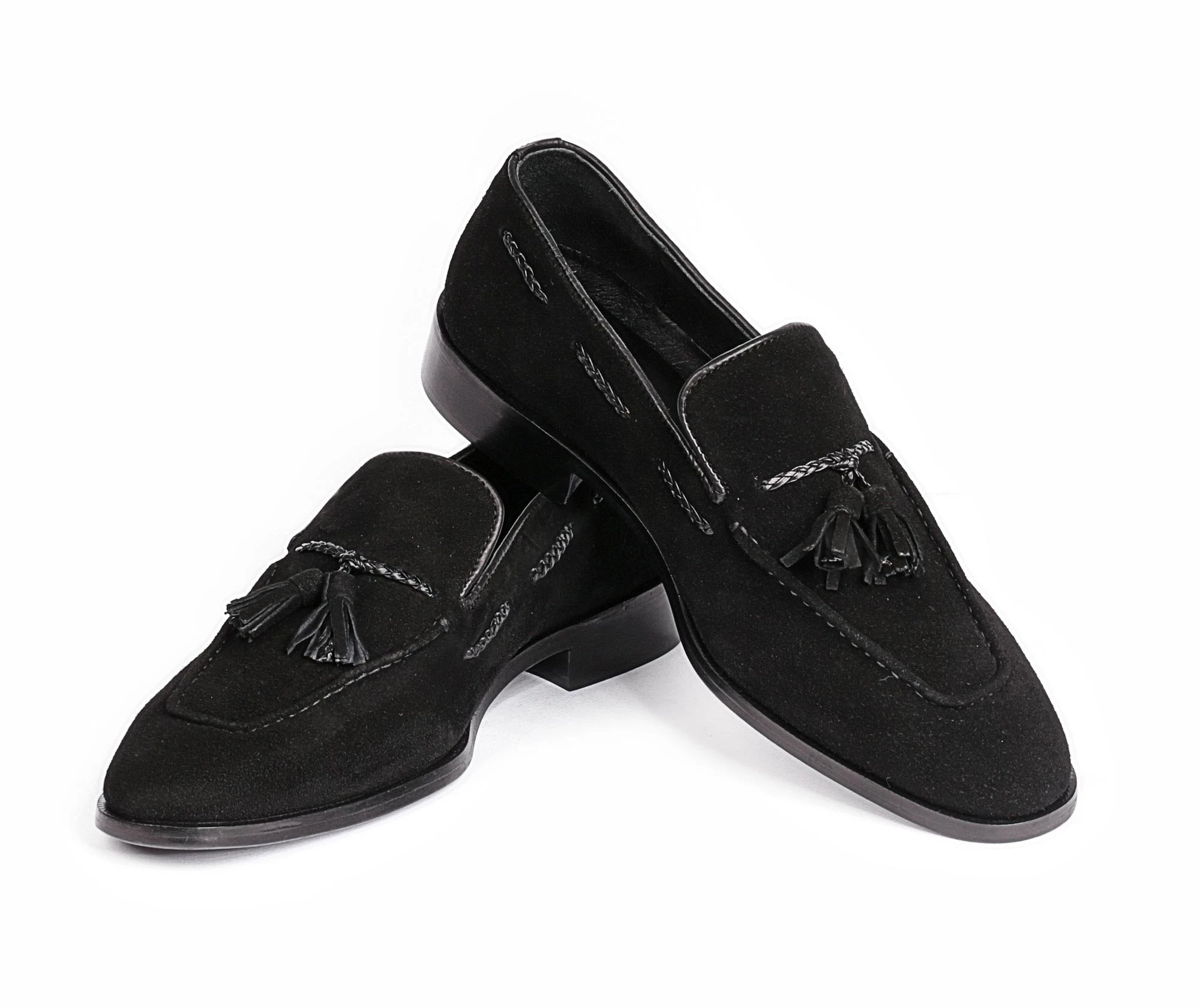 Hand Crafted Black Tasseled Leather Suede Men's Loafers