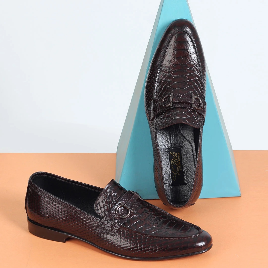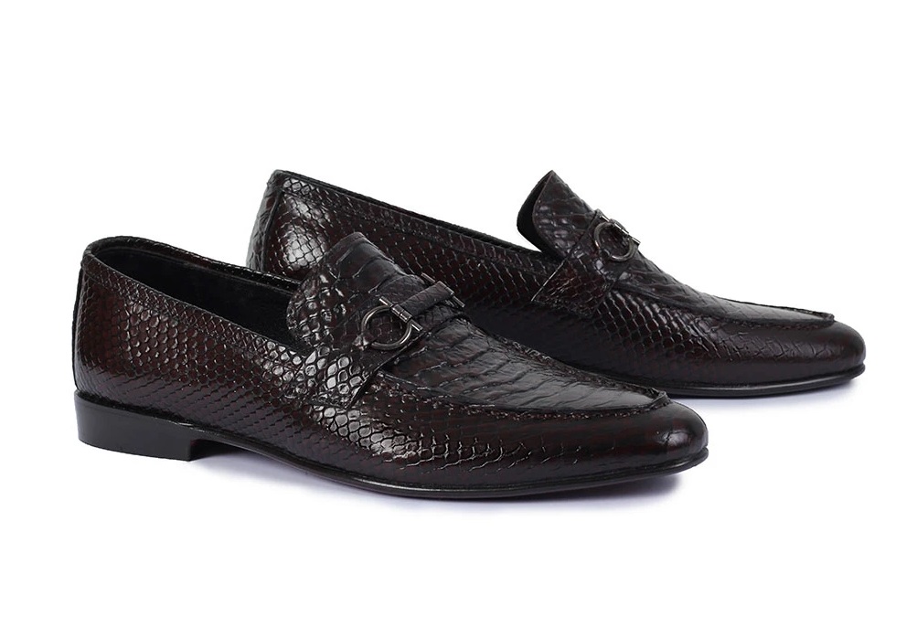 Men's Cordovan Round Toe Texture Leather Moccasin Loafers