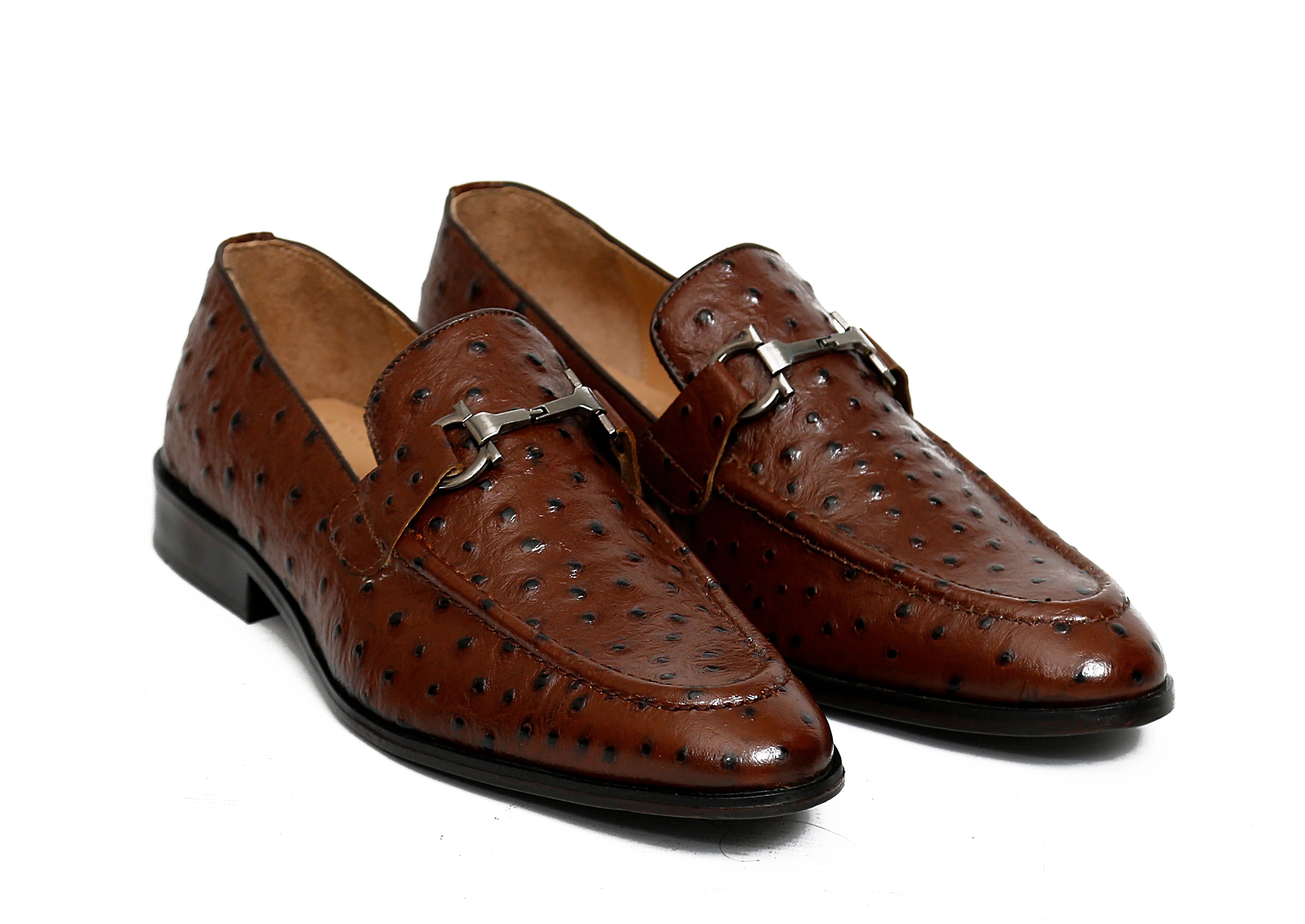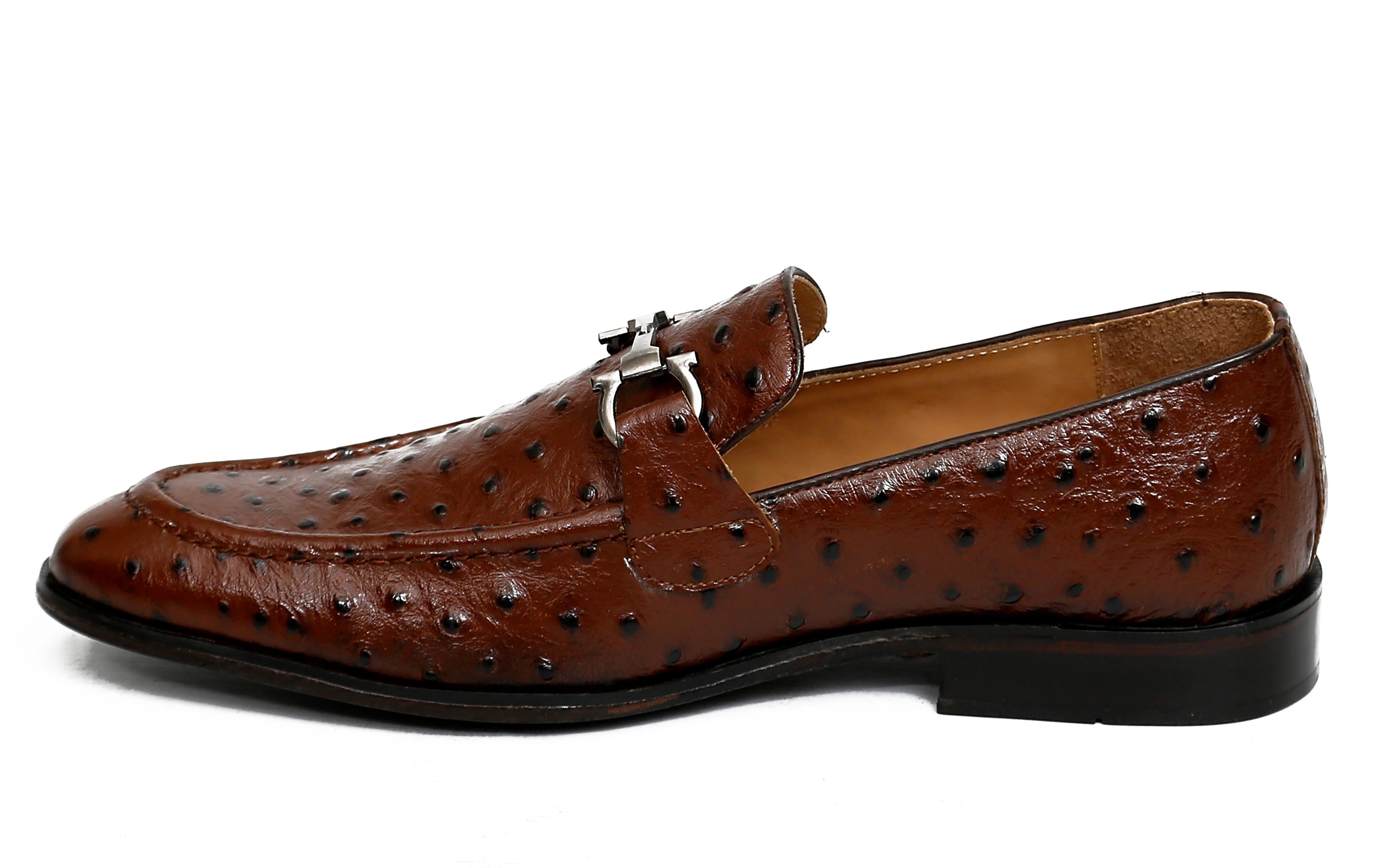 Men's Round Toe Brown Pebbled Leather Slip On Loafers