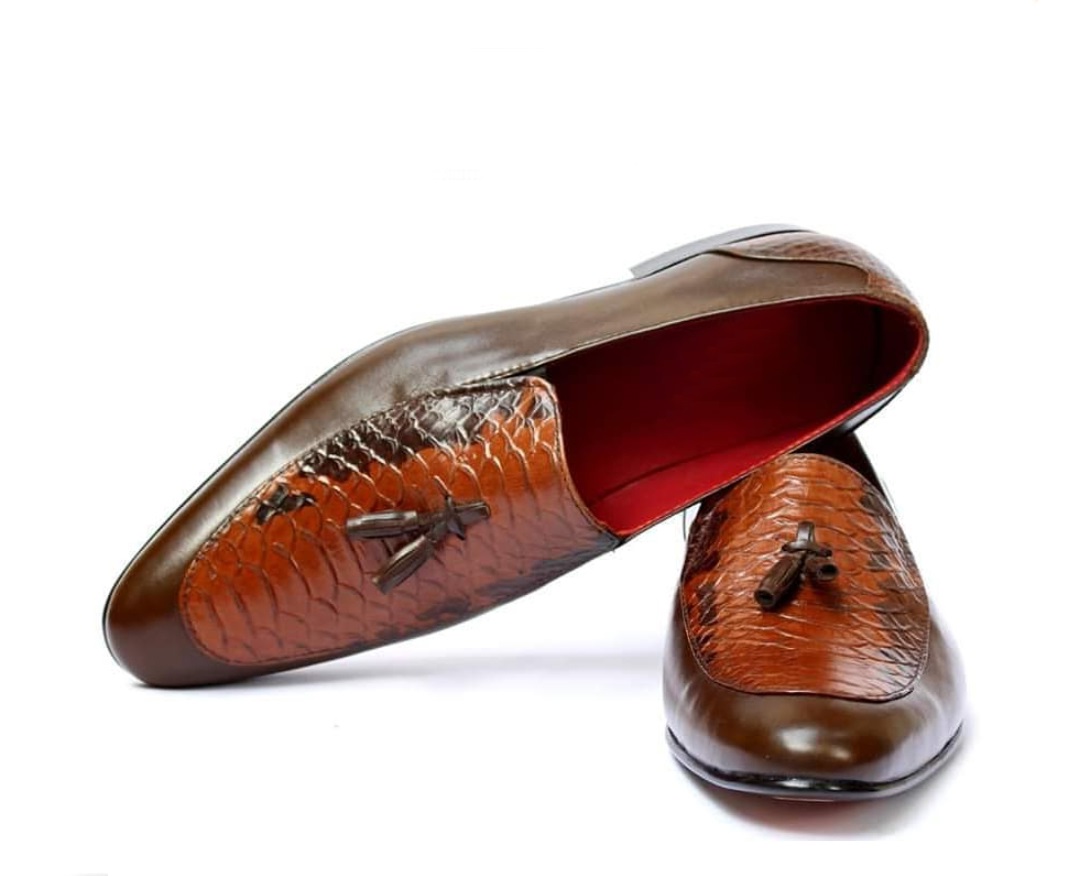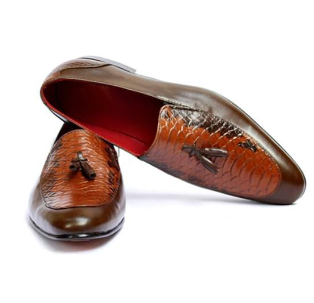 Handmade Two Tone Tasseled Slip On Python Leather Loafers