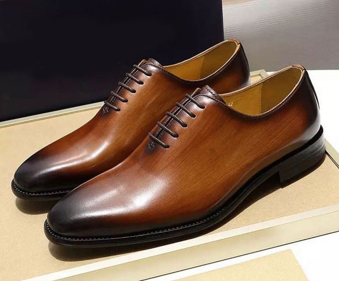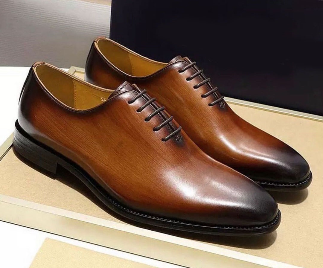 Two Tone Whole Cut Lace Up Men's Leather Shoes
