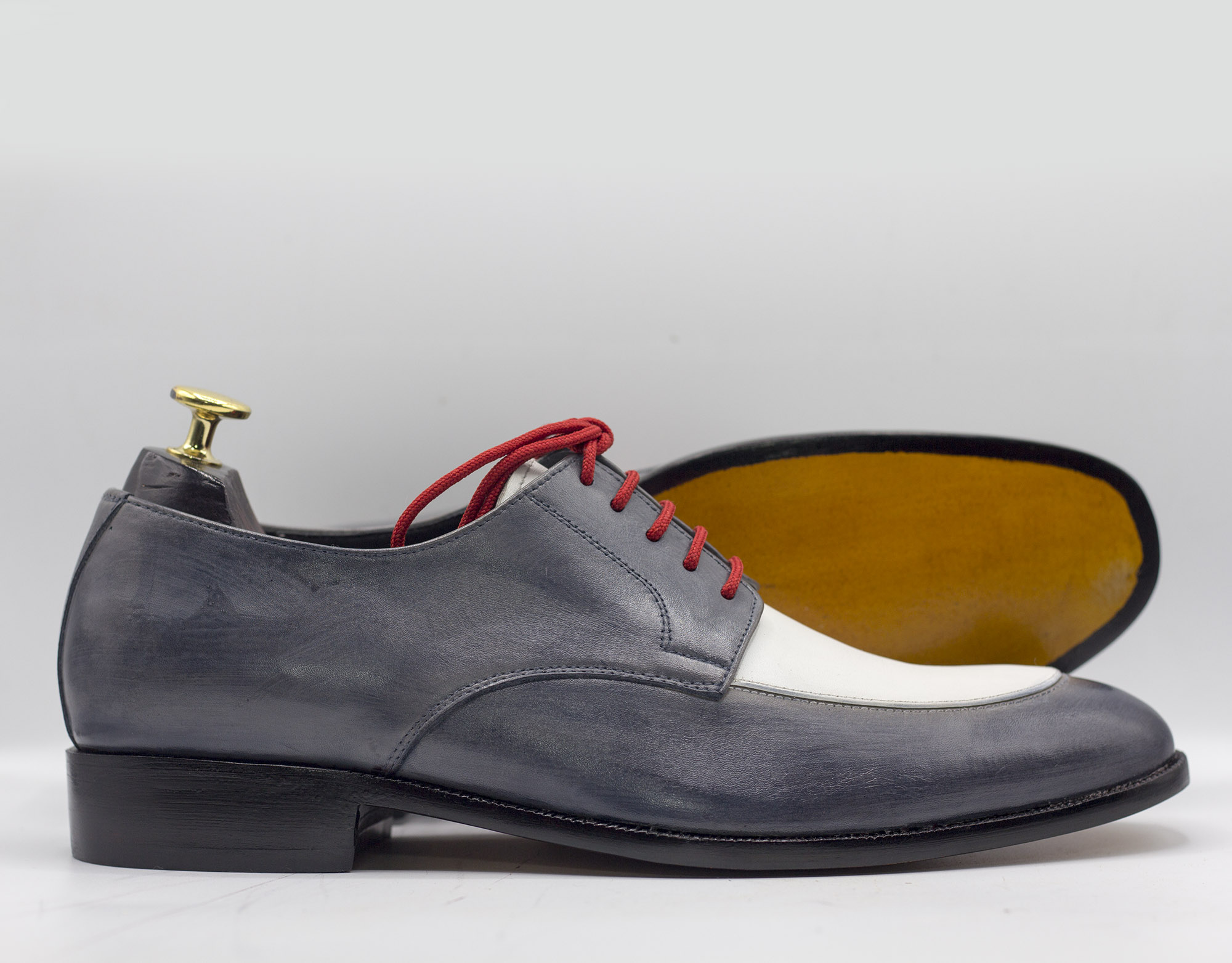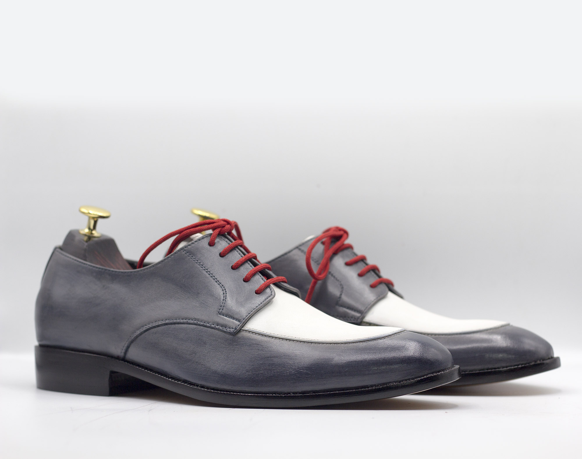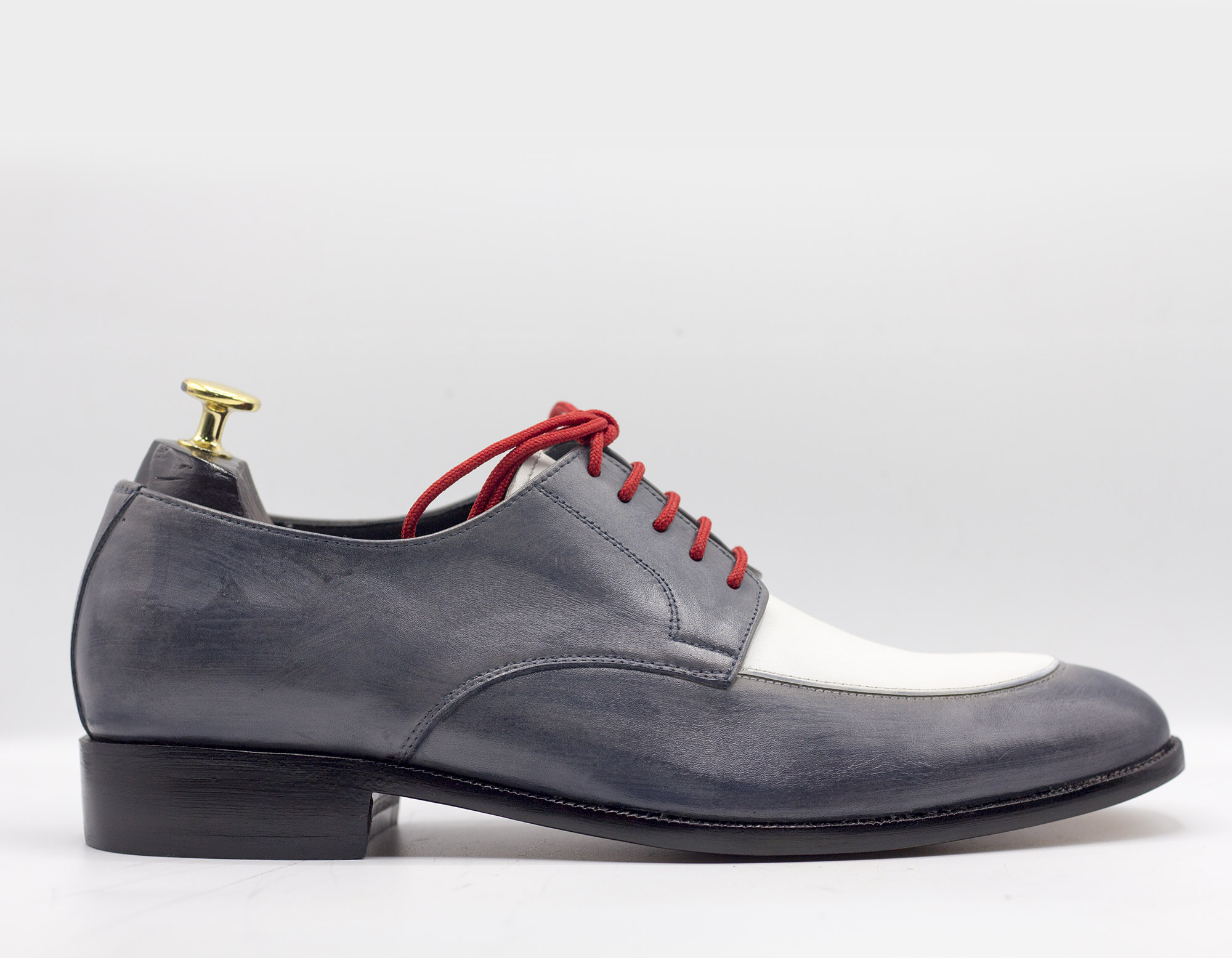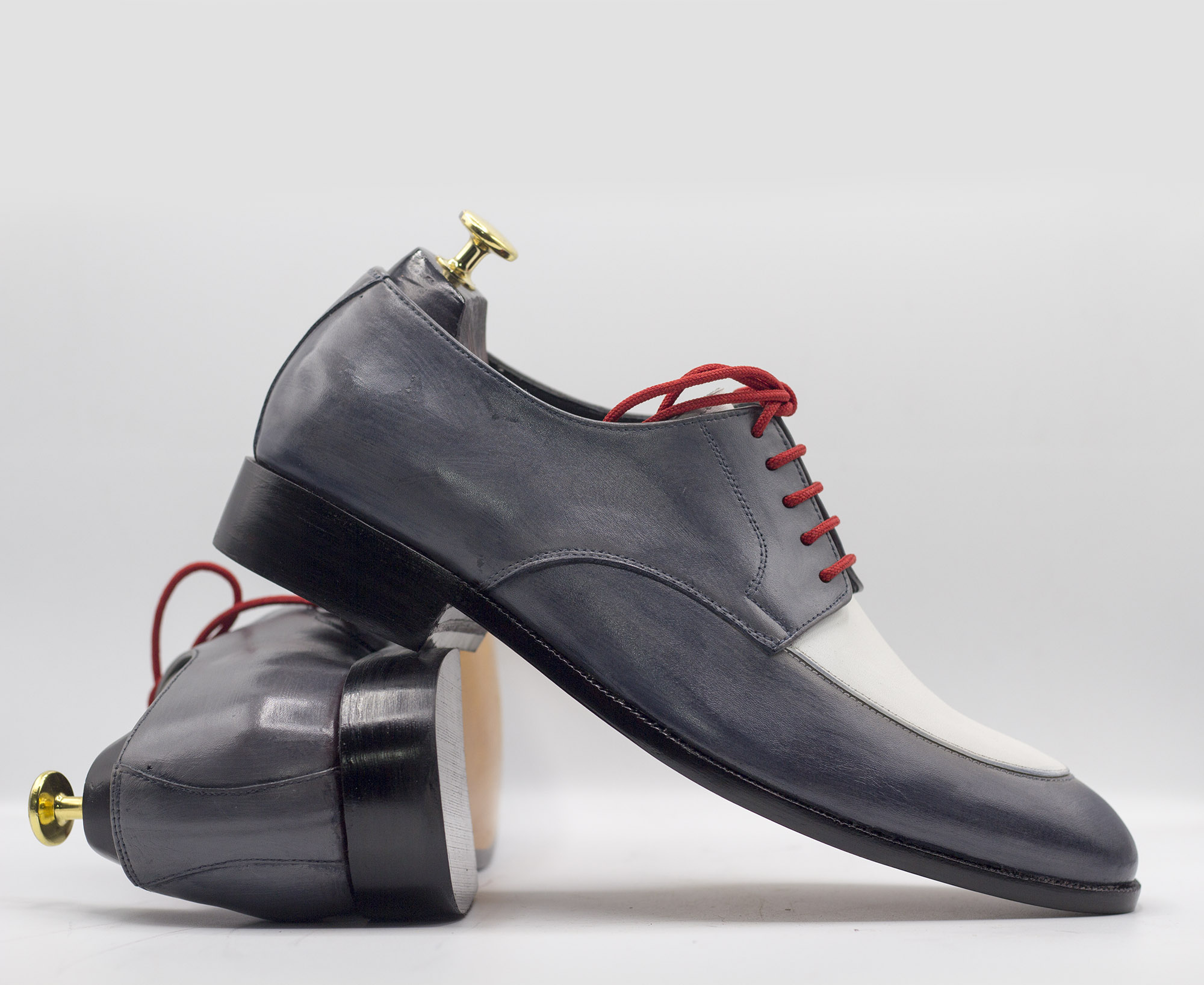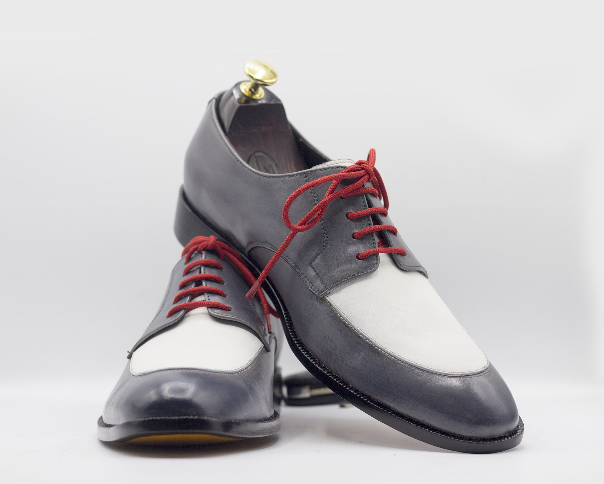 Two Tone Round Toe Lace Up Leather Shoes For Men