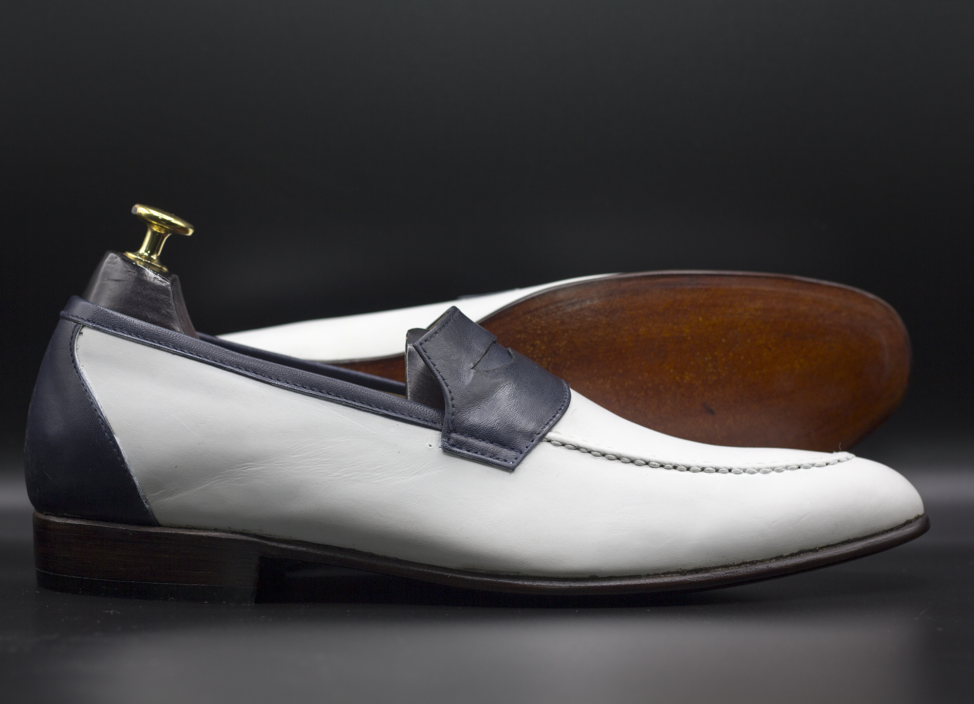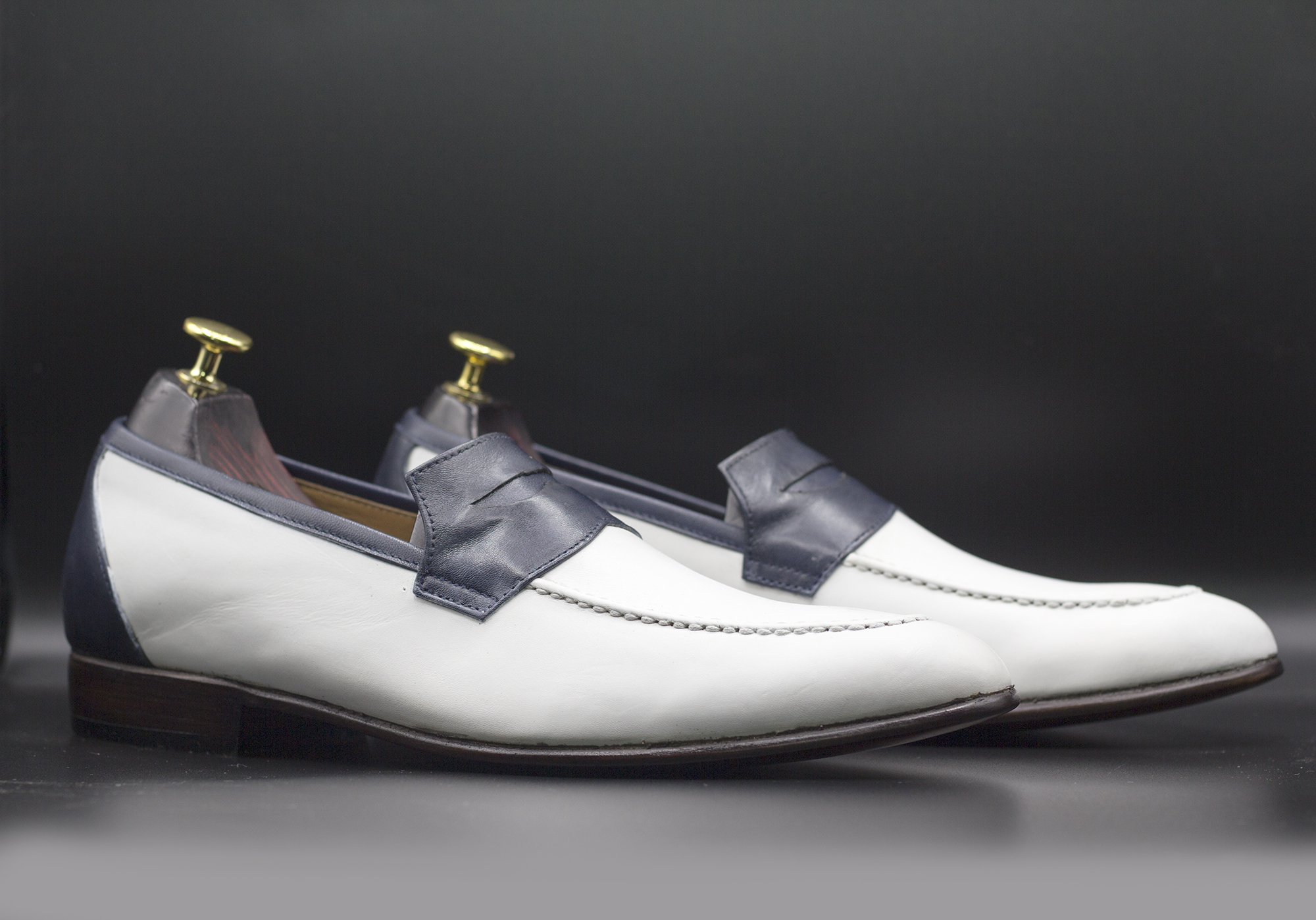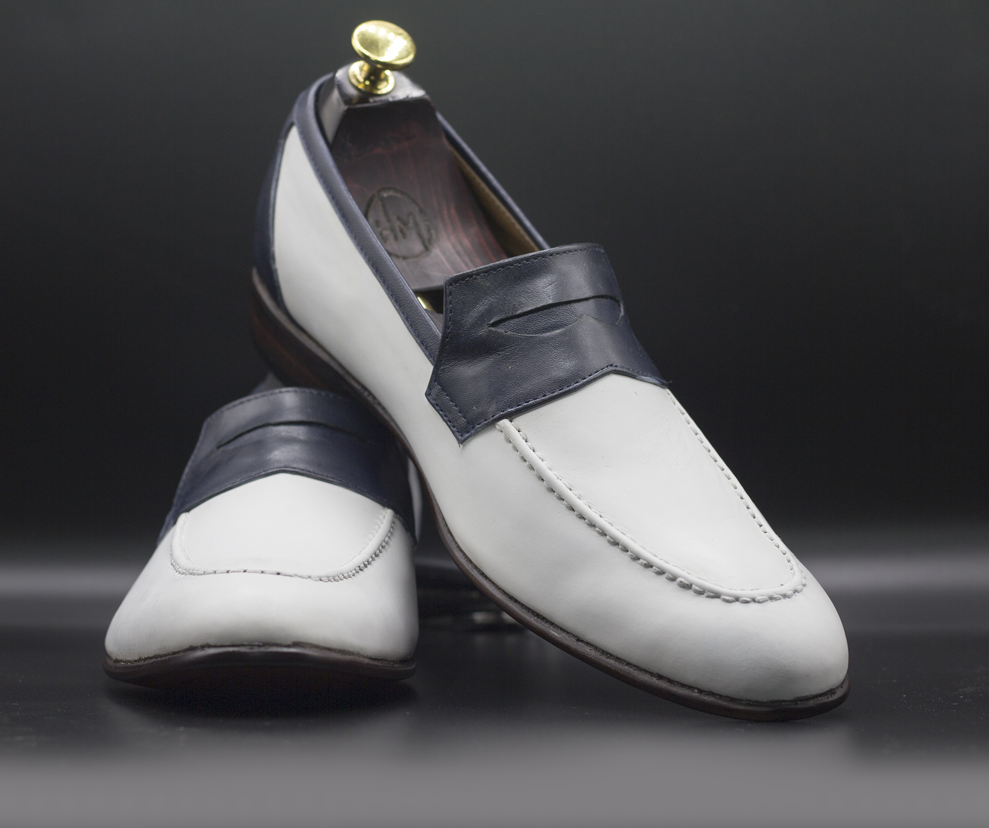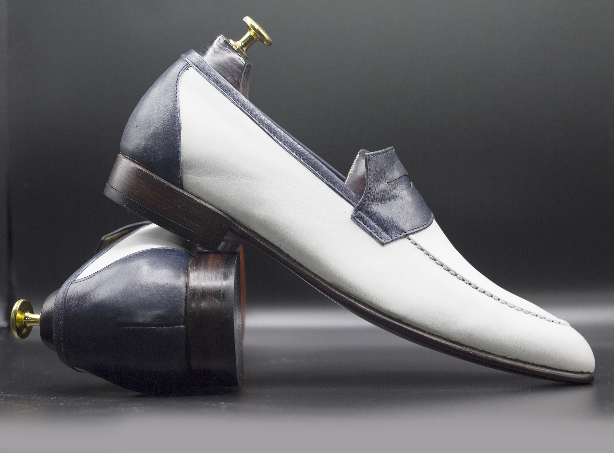 Men's Handmade Two Tone Round Toe Leather Moccasin Loafers