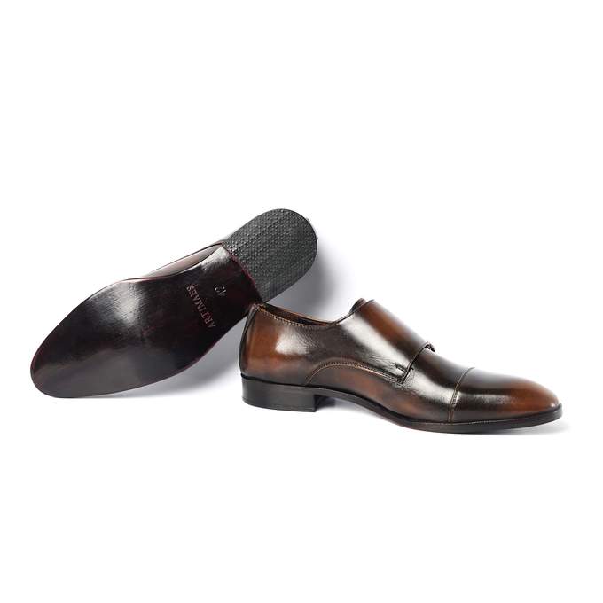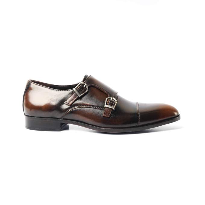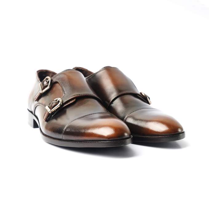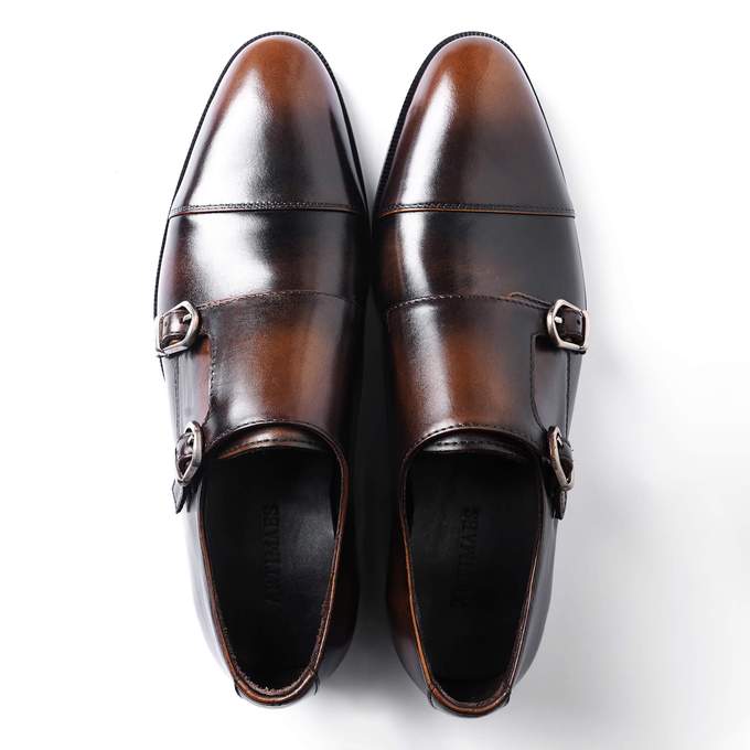 Double Buckle Cap Toe Two Tone Leather Shoes