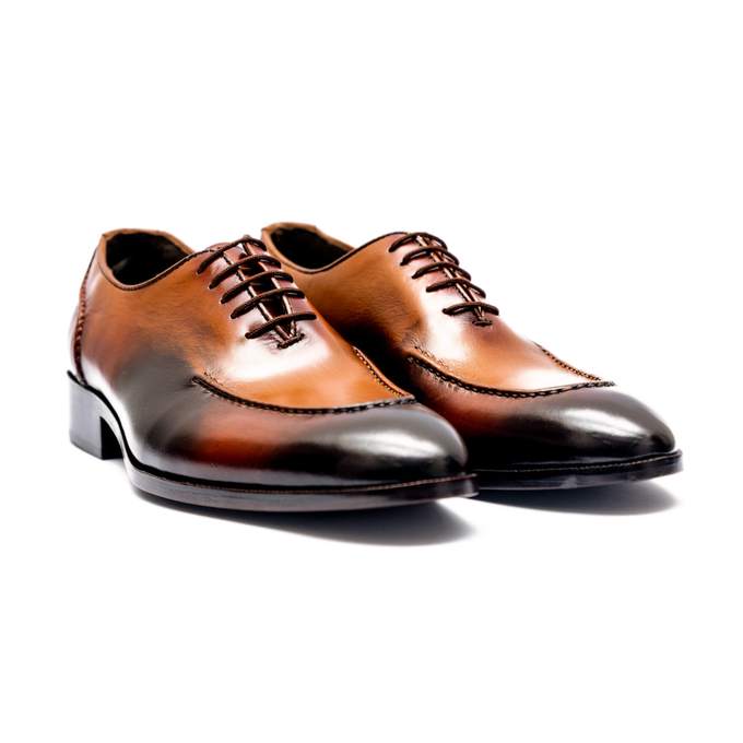 Men's Two Tone Round Toe Lace Up Leather Shoes