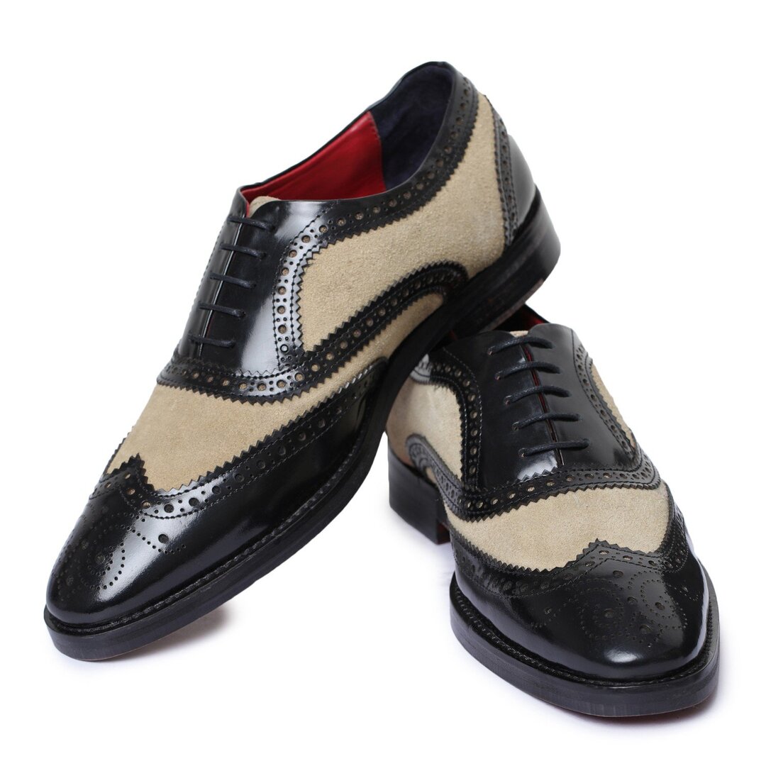 Two Tone Wing Tip Leather Suede Lace Up Shoes