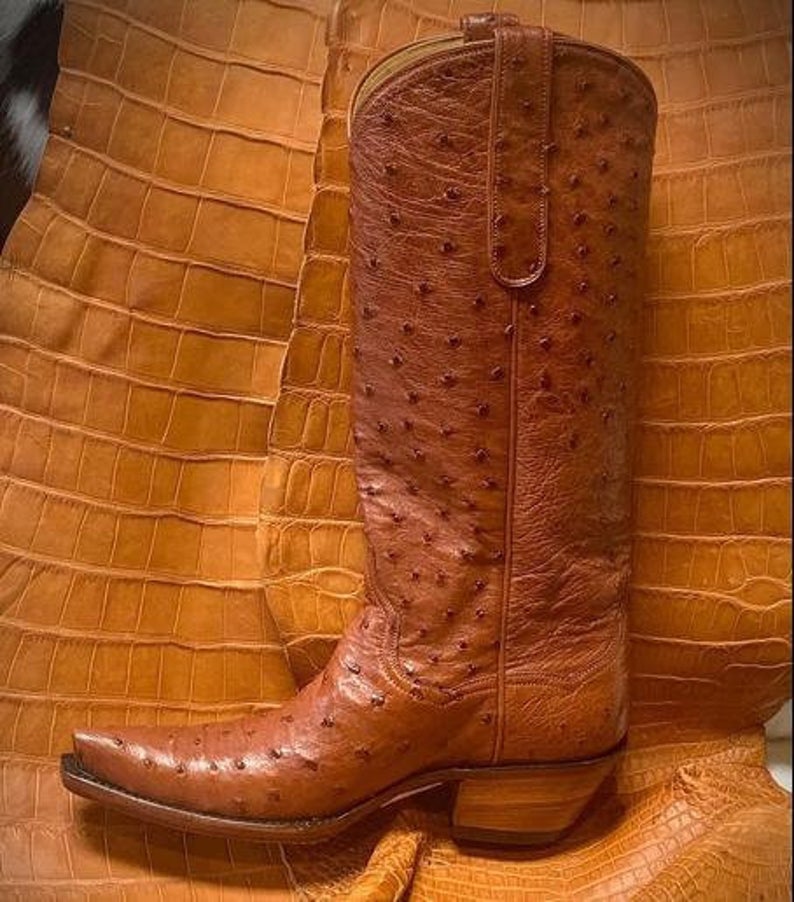 Hand Crafted Brown Ostrich Texture Leather Long Boots for Men