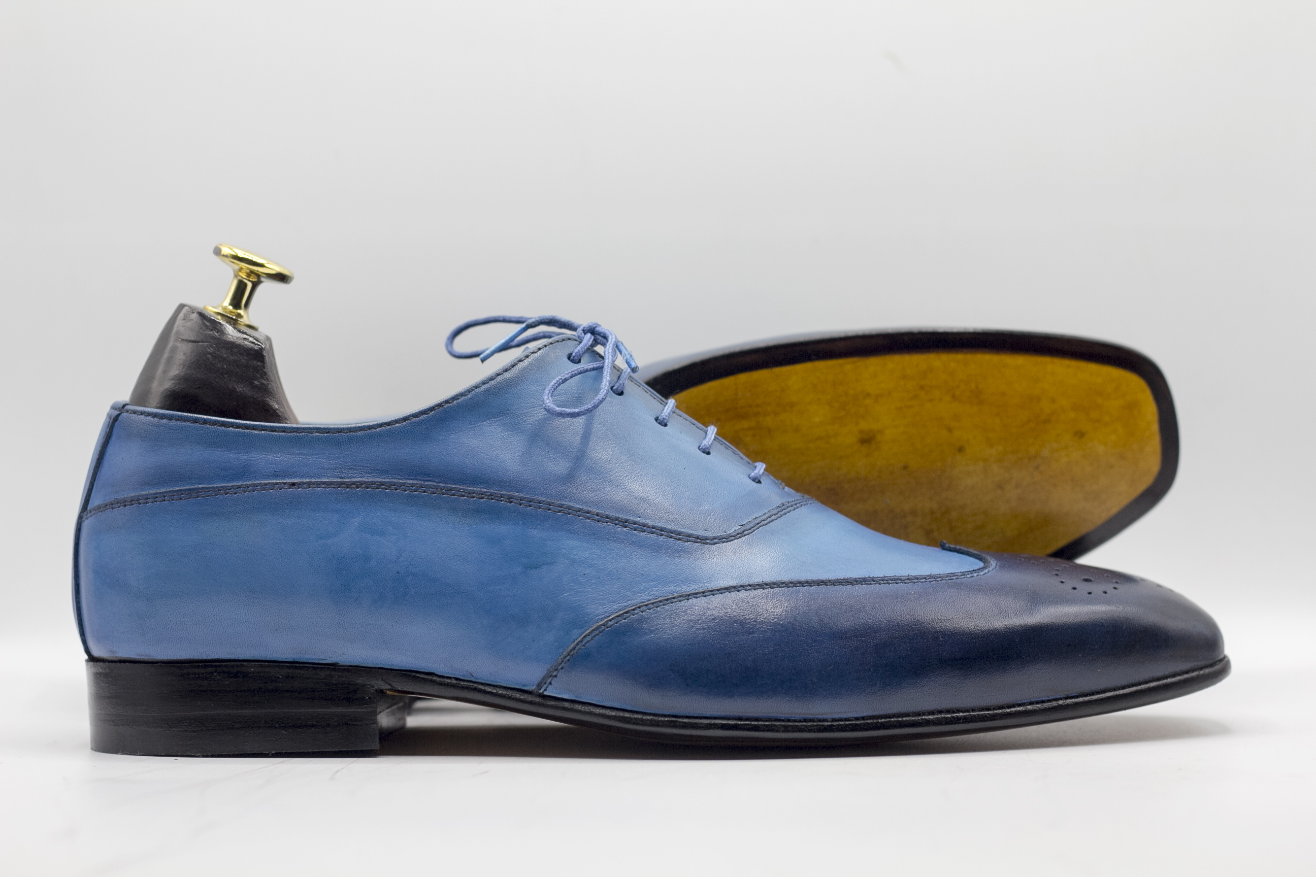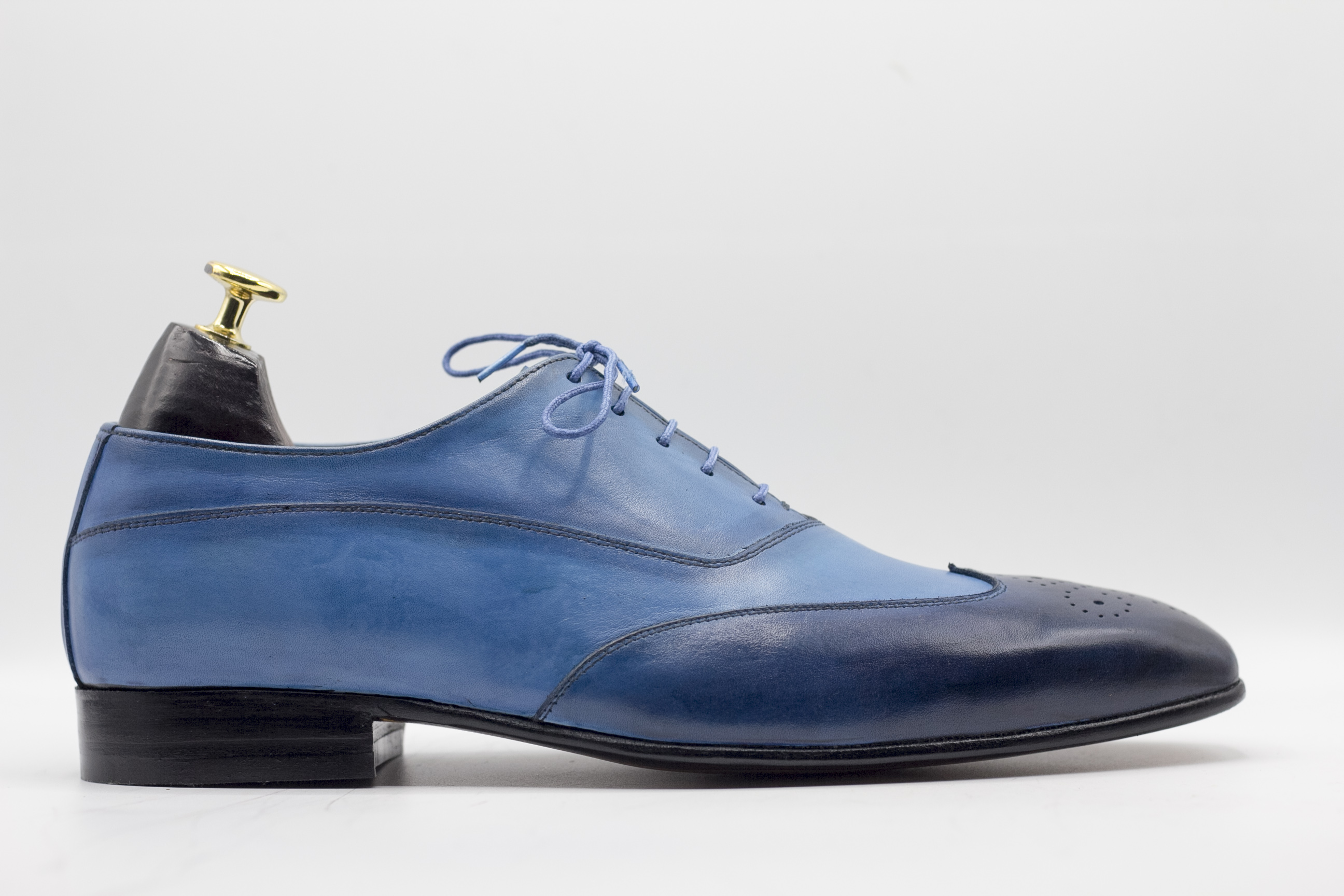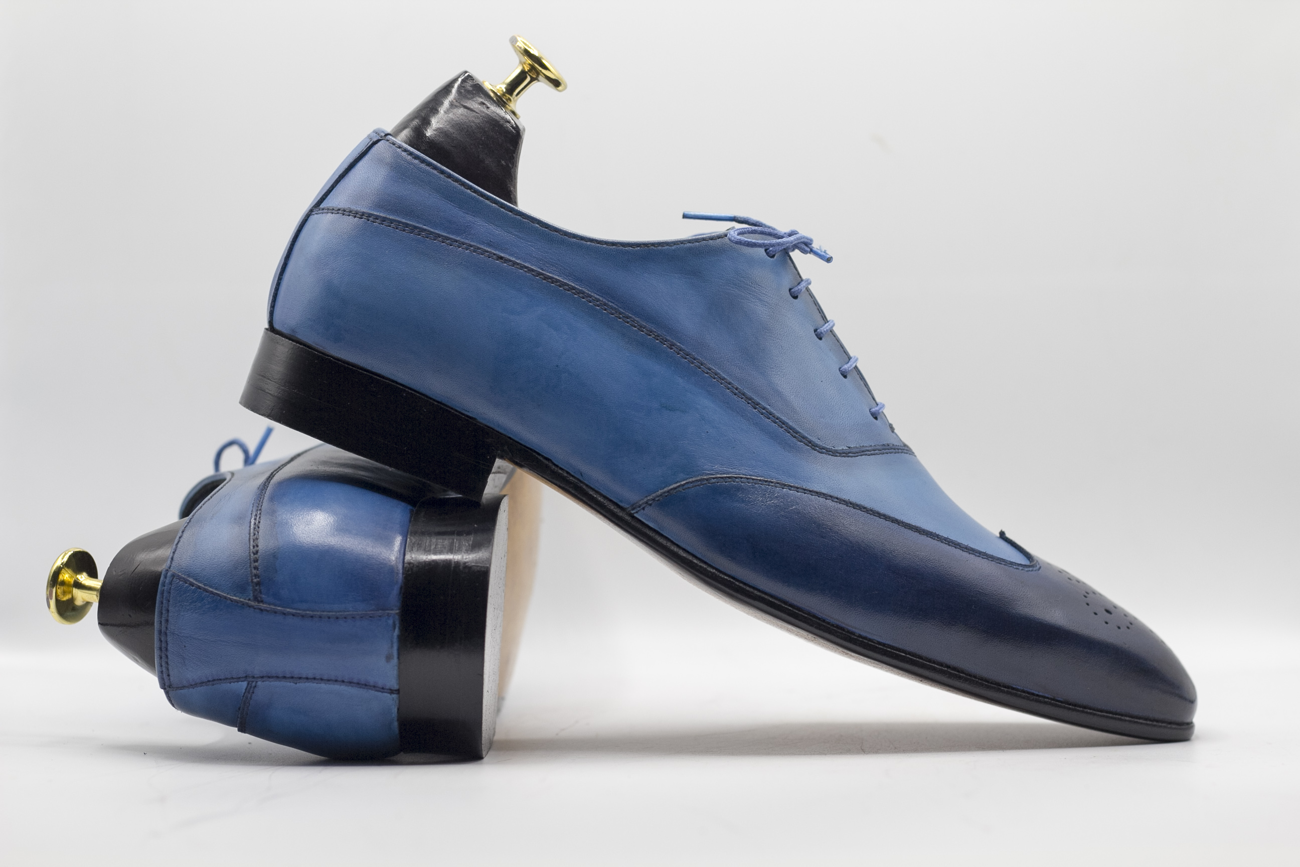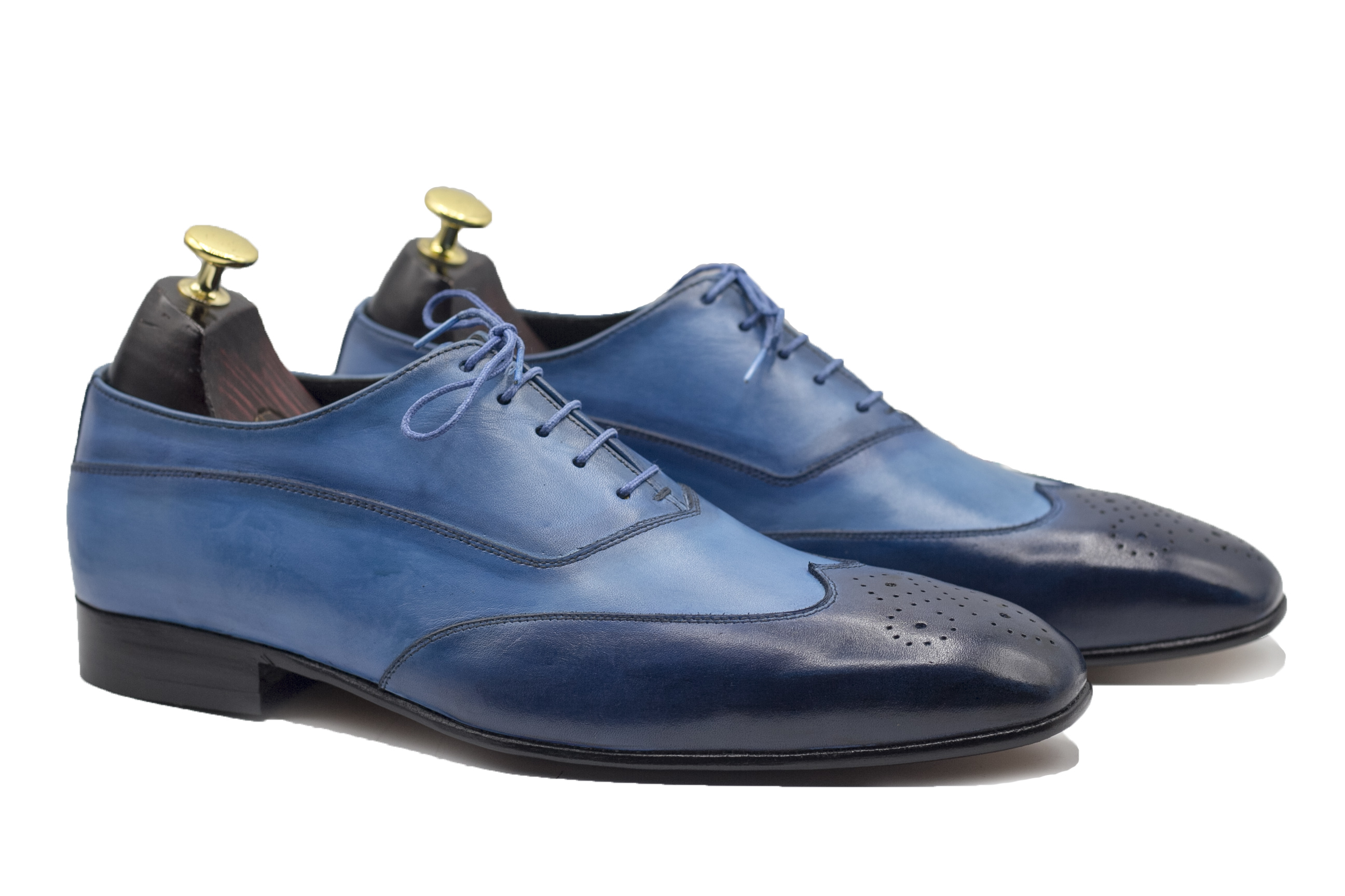 Oxford Two Tone Lace Up Wing Tip Leather Men's Shoes
