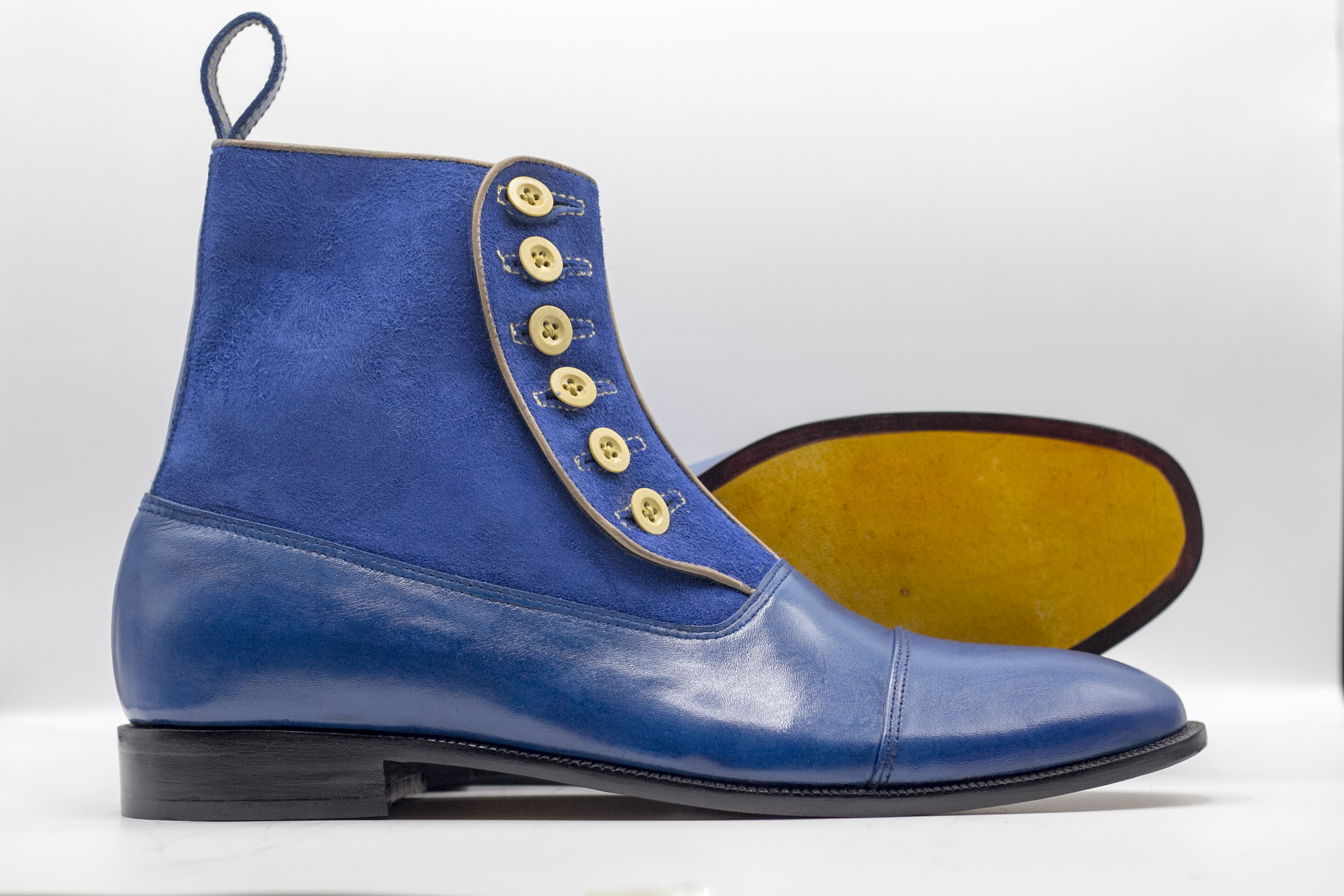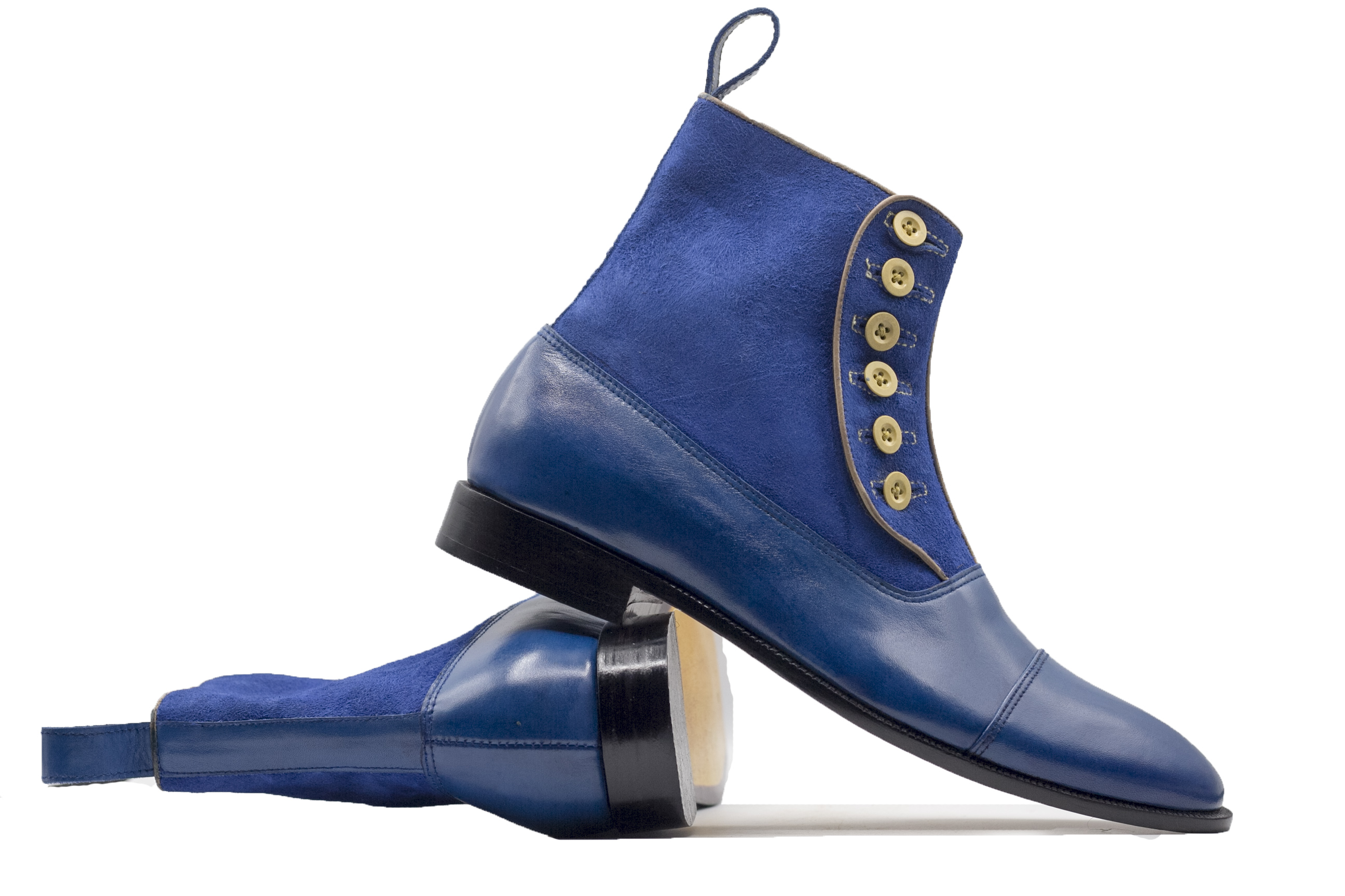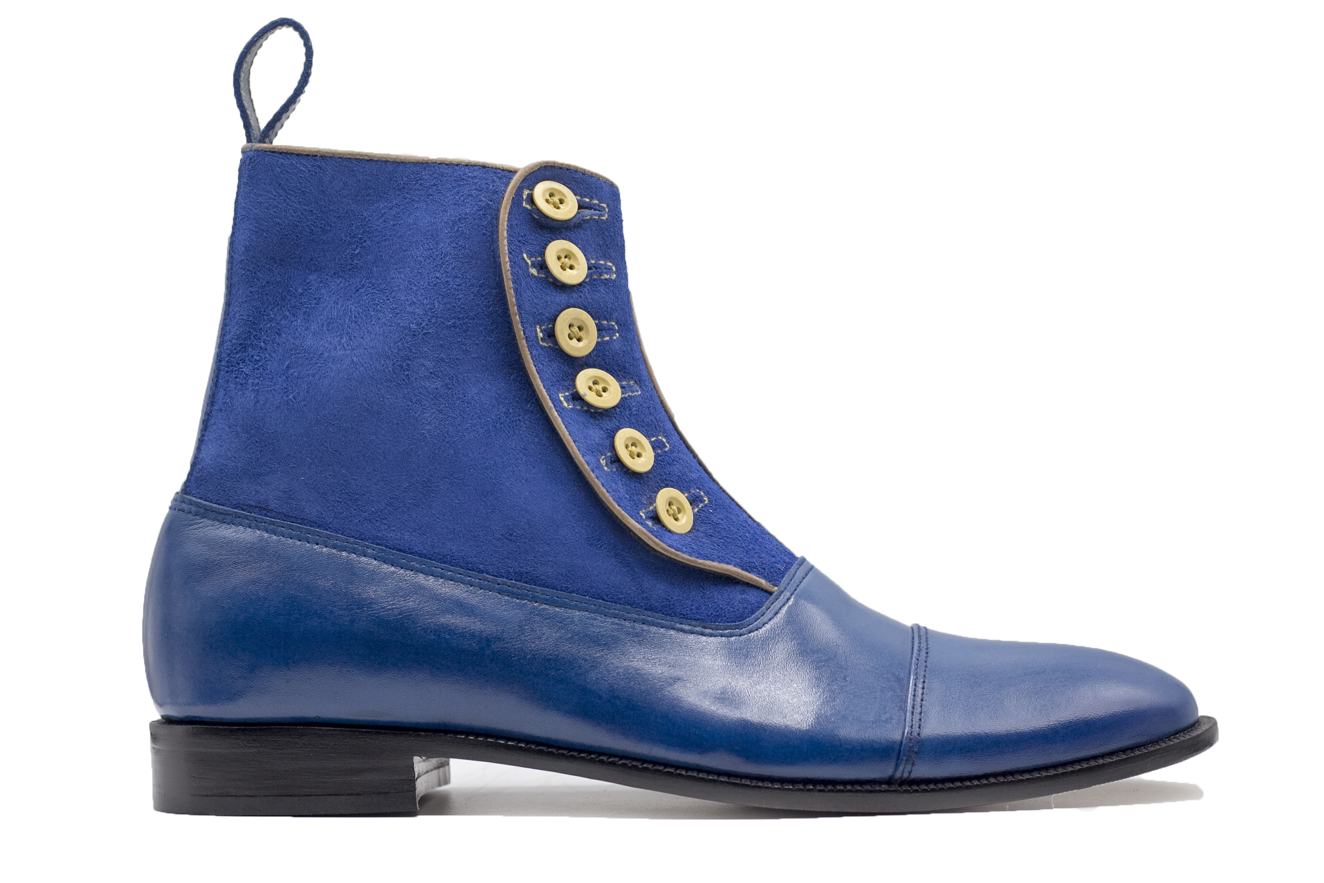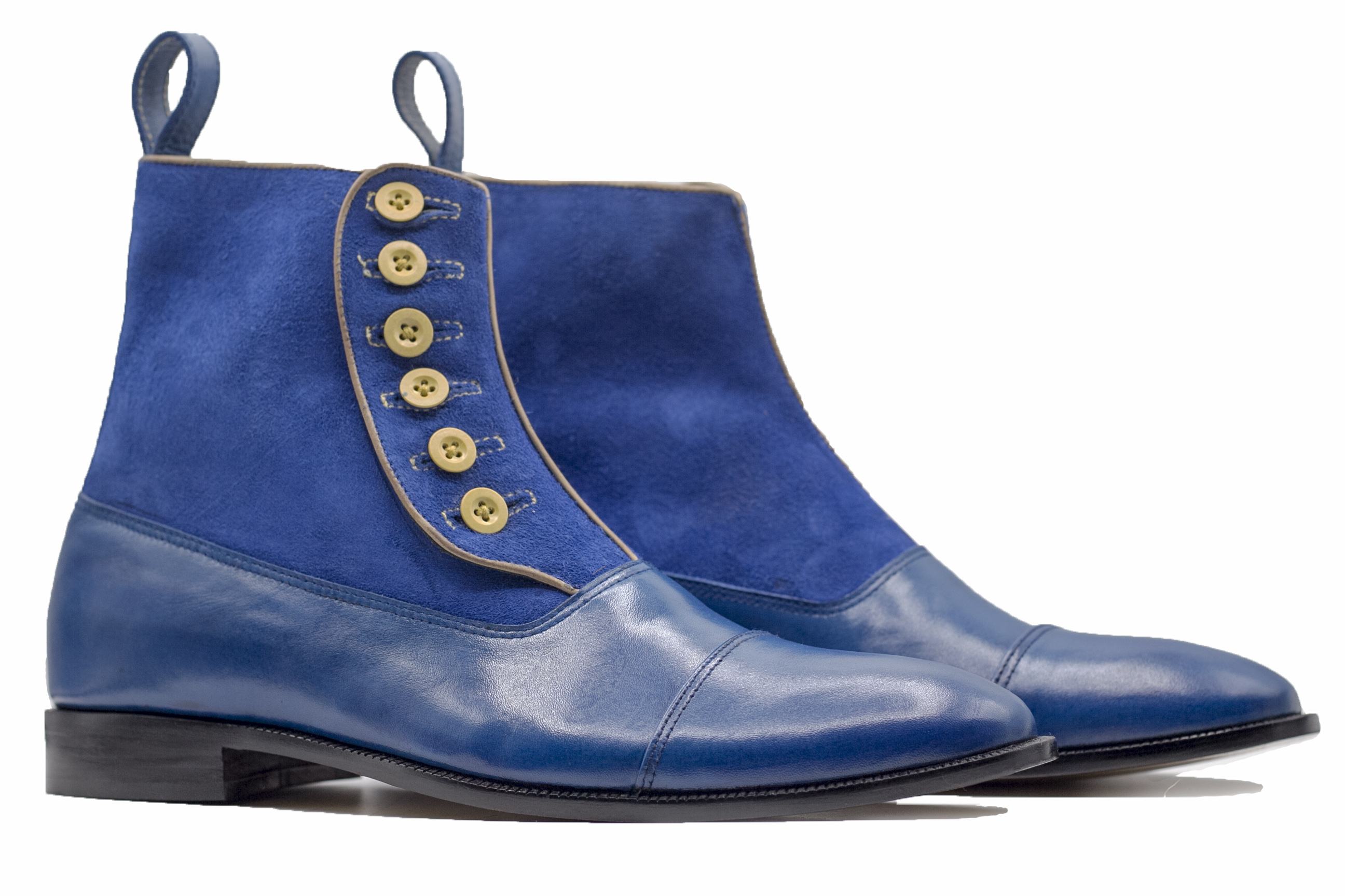 Ankle High Button Top Blue Cap Toe Leather Suede Boot