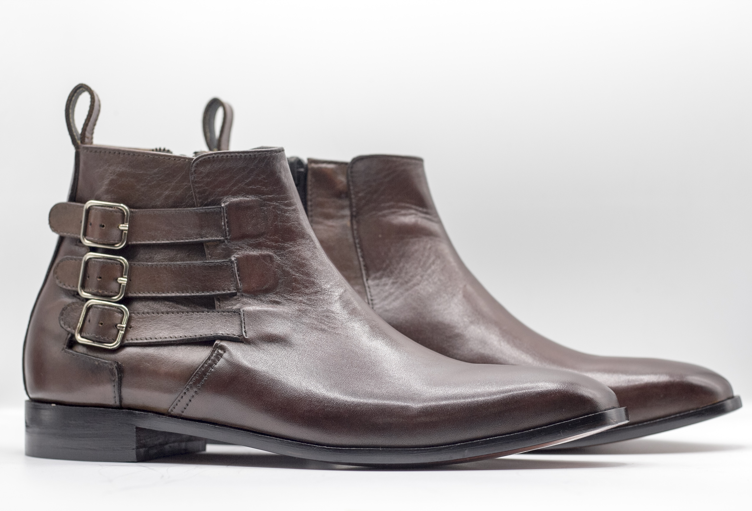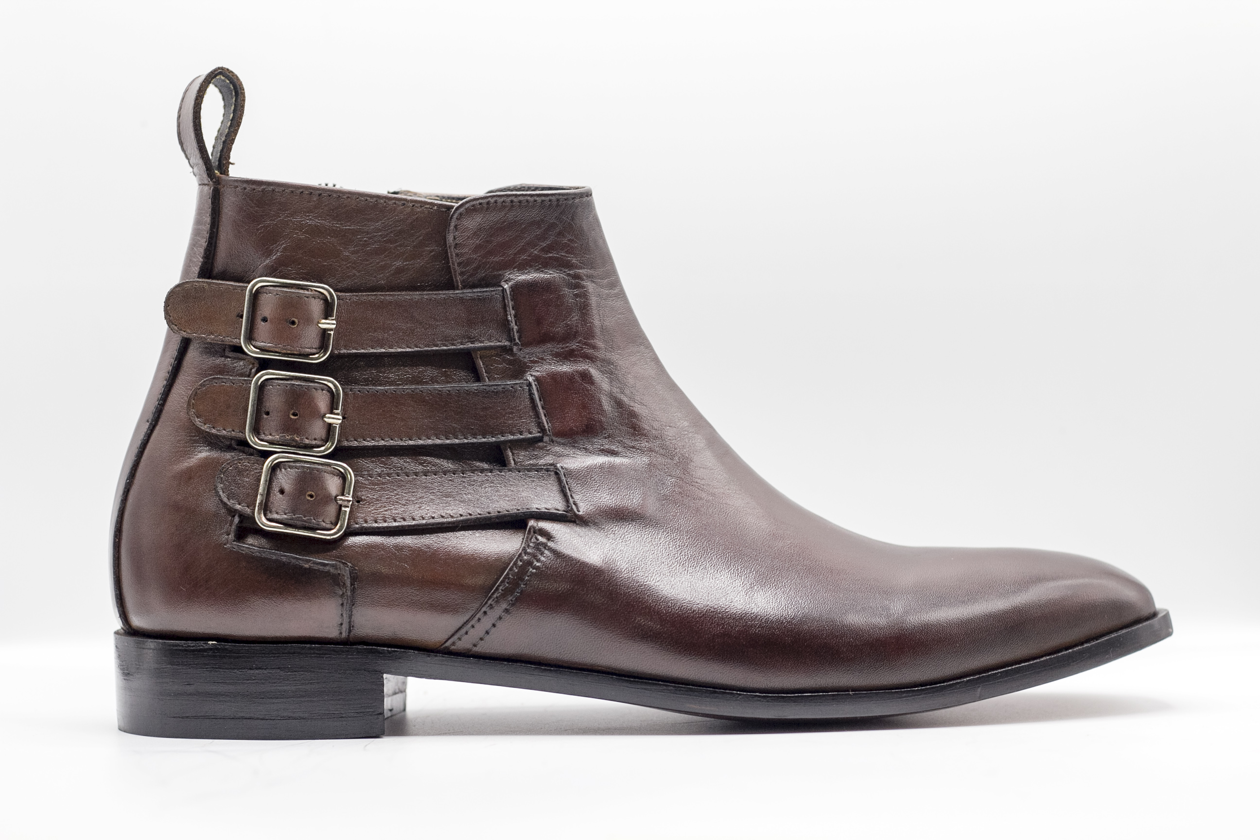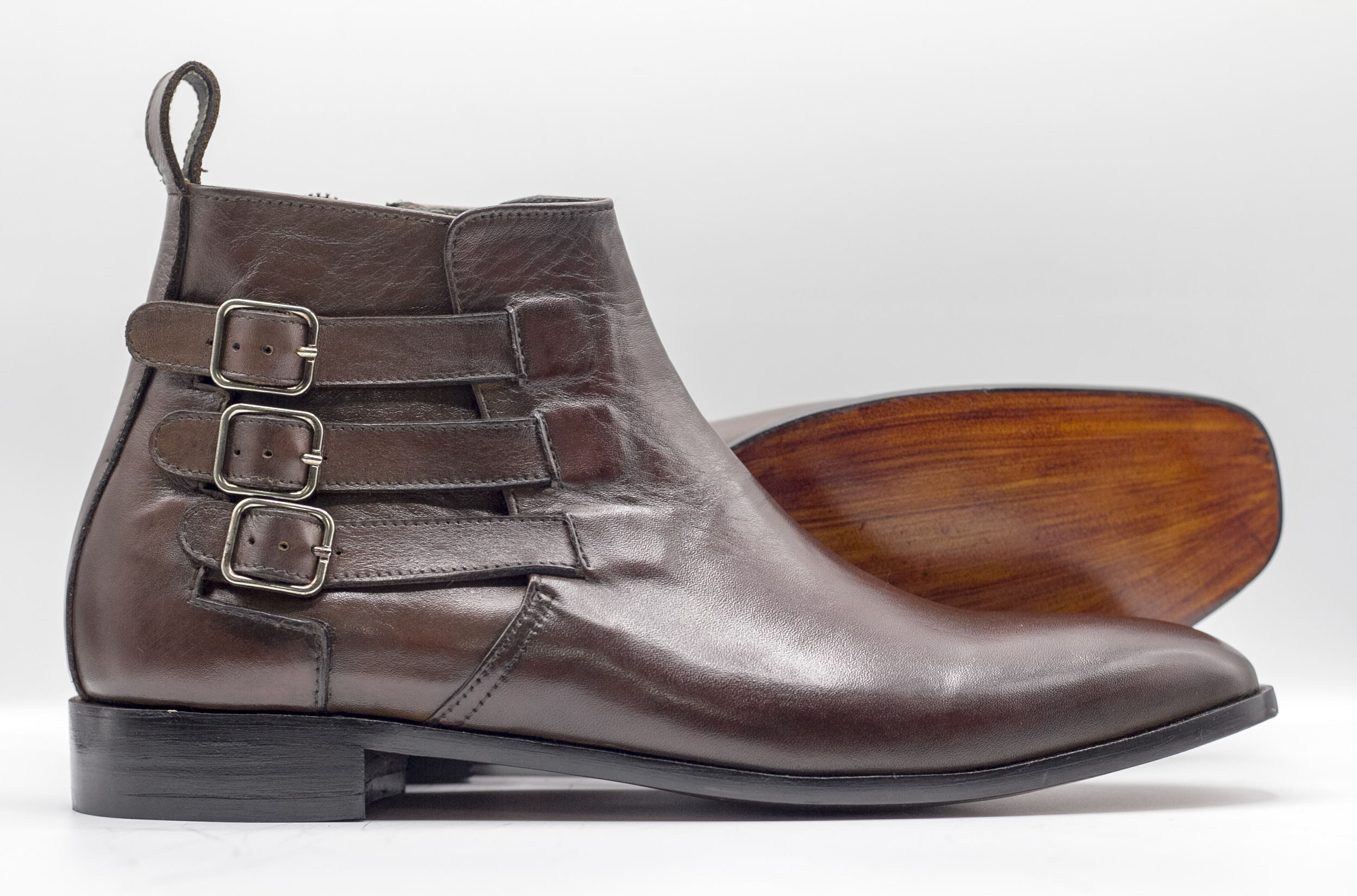 Half Ankle Monk Strap Brown Leather Zipper Boot