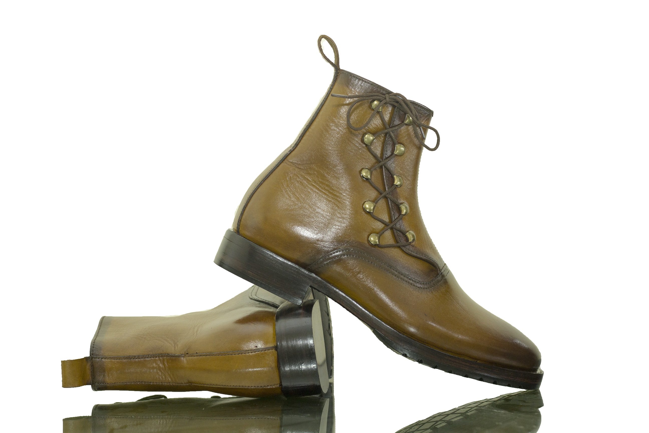 Hand Crafted Side Lace Up Tan Leather Men's Boot