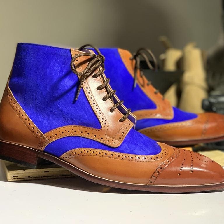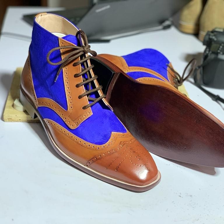 Oxford Ankle High Two Tone Leather Suede Lace Up Brogue Boot
