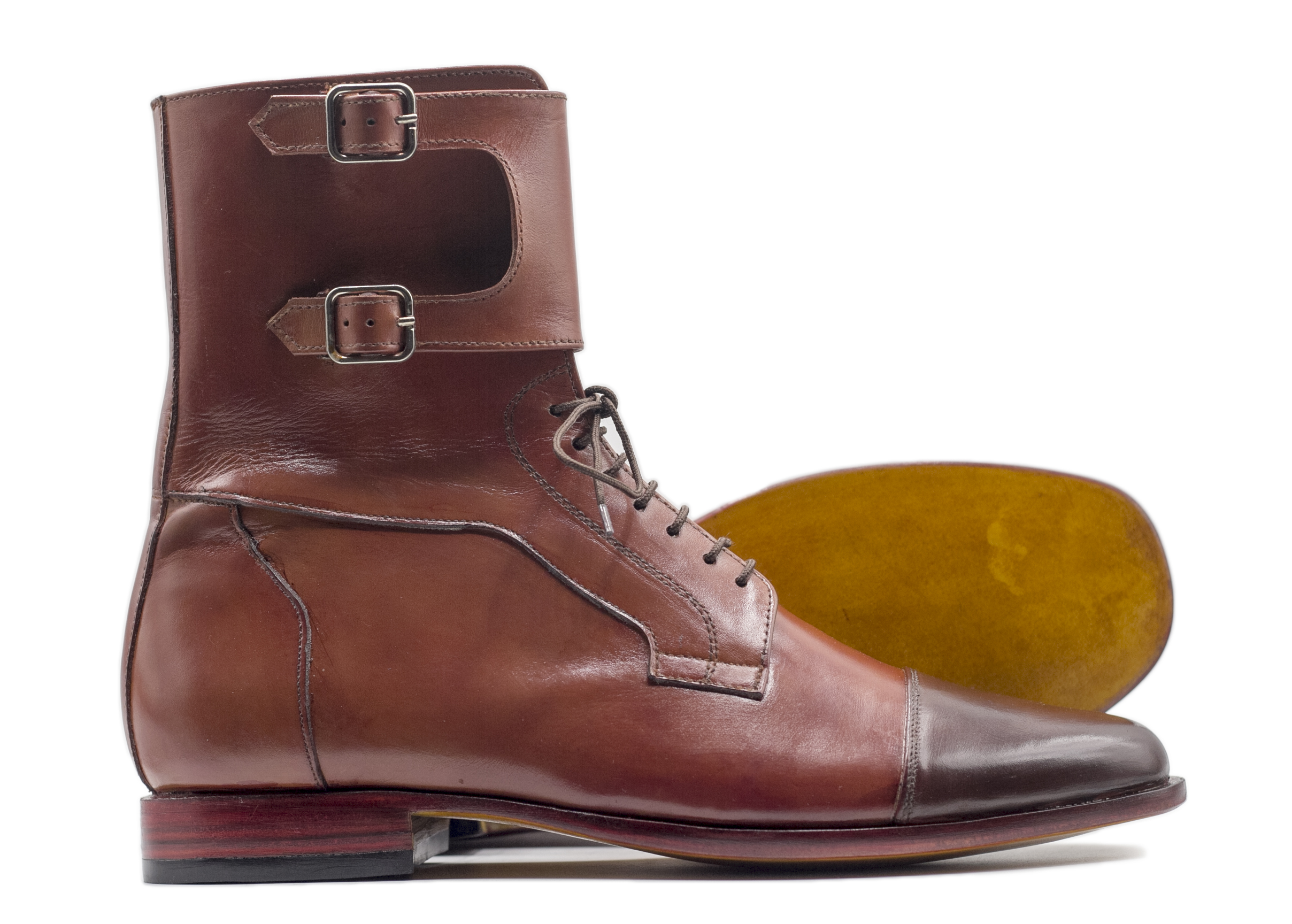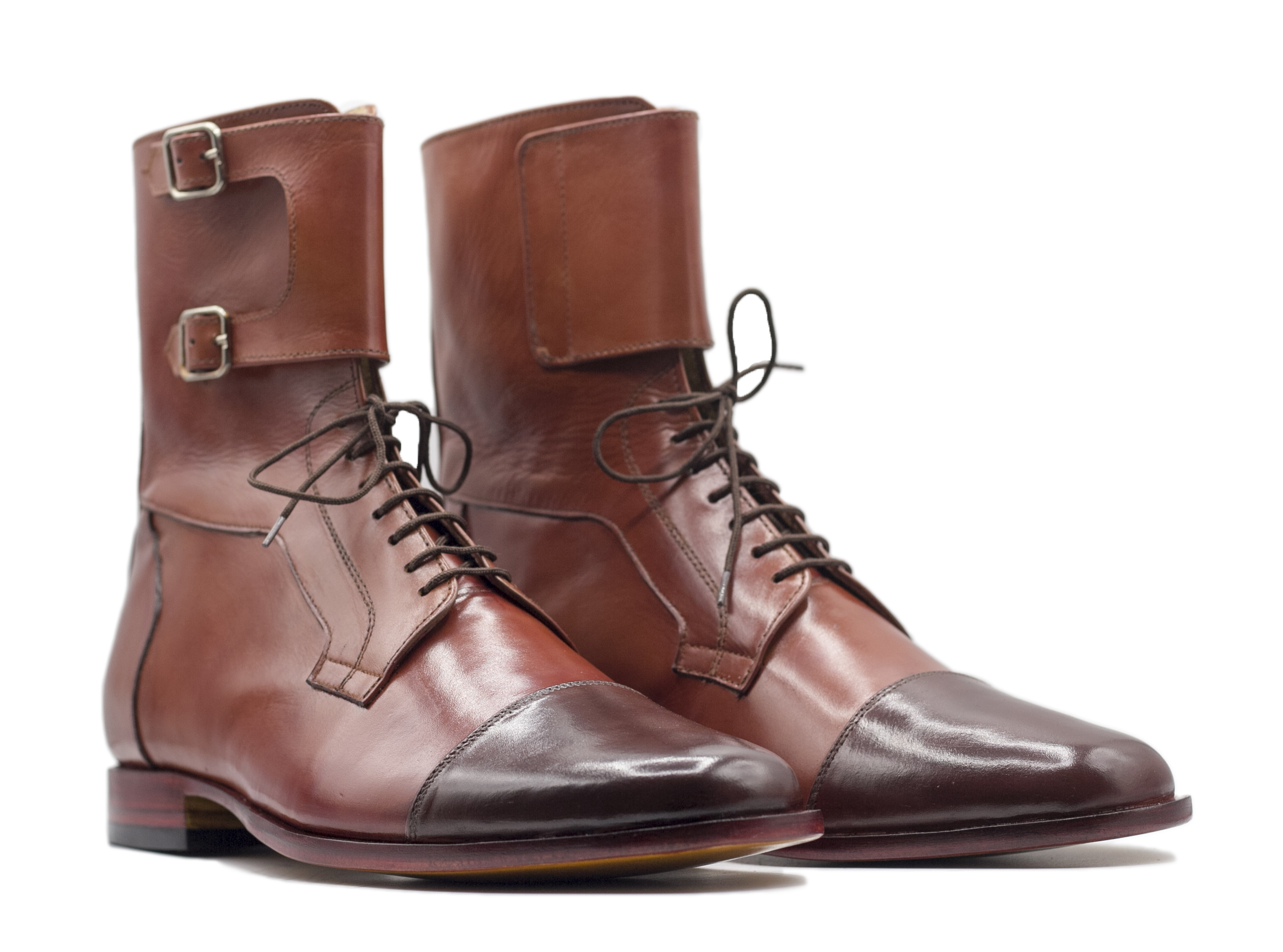 Ankle High Cap Toe Double Monk Leather Lace Up Two Tone Boot