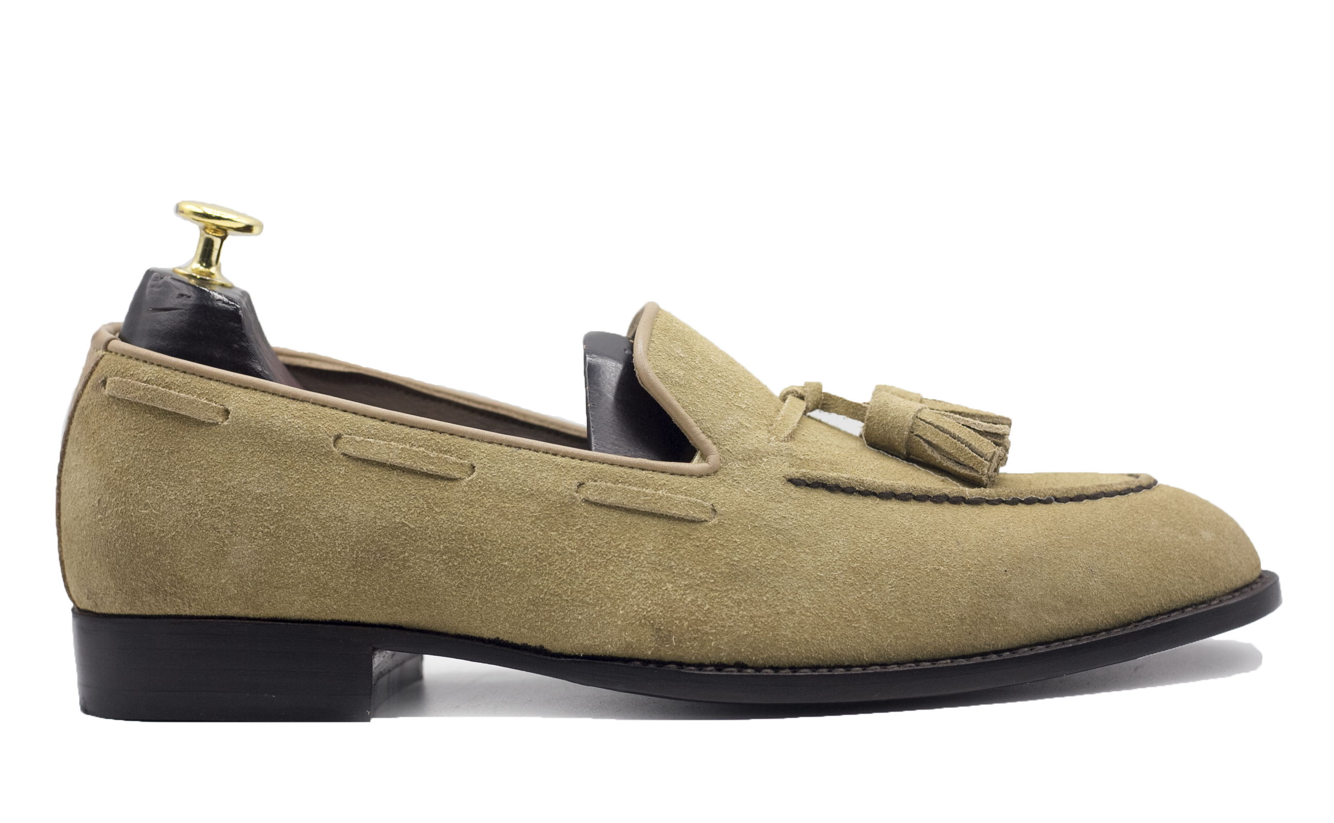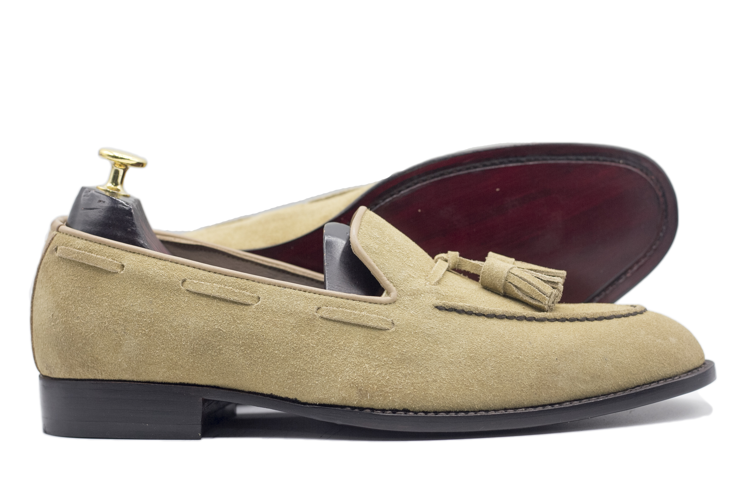 Round Toe Tasseled Beige Leather suede Slip On Loafer Shoes