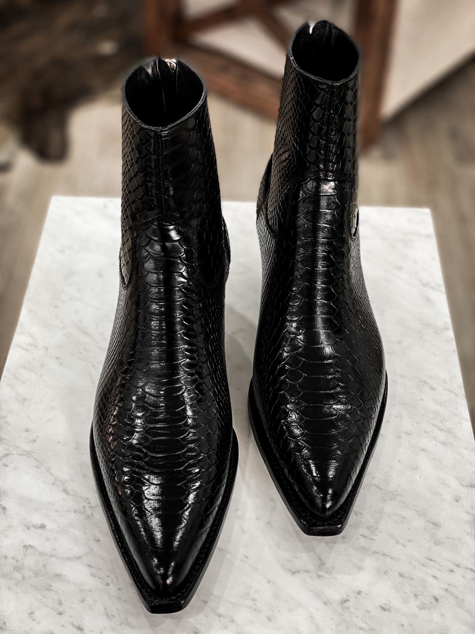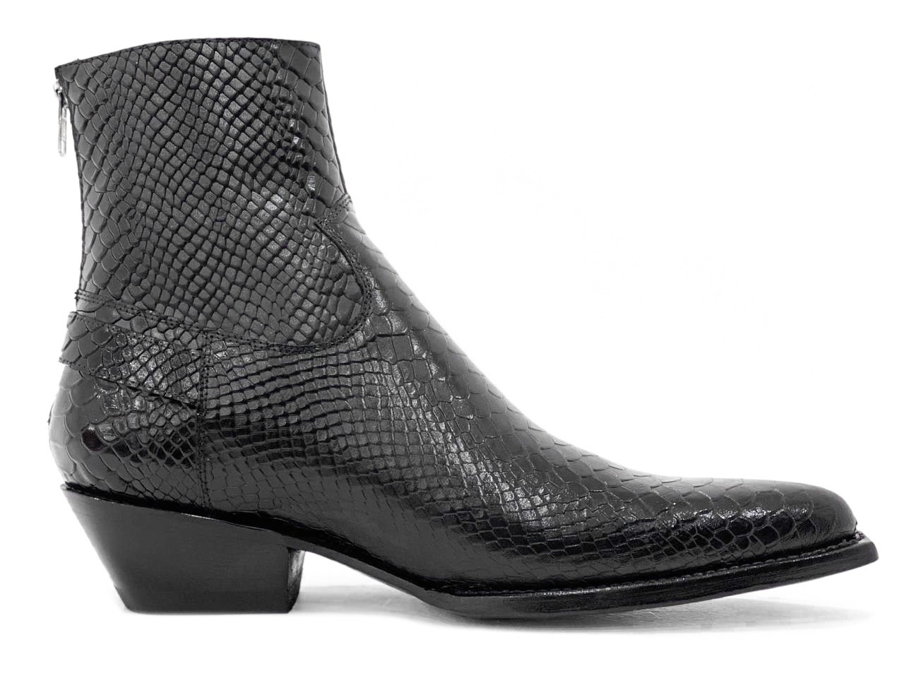 Buckle Strap Pure Black Zipper Python Texture Chelsea Leather Boot