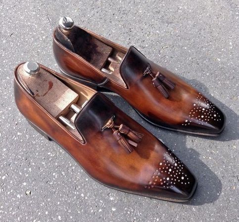 Hand Painted Pointed Toe Brown Brogue Leather Tasseled Shoes