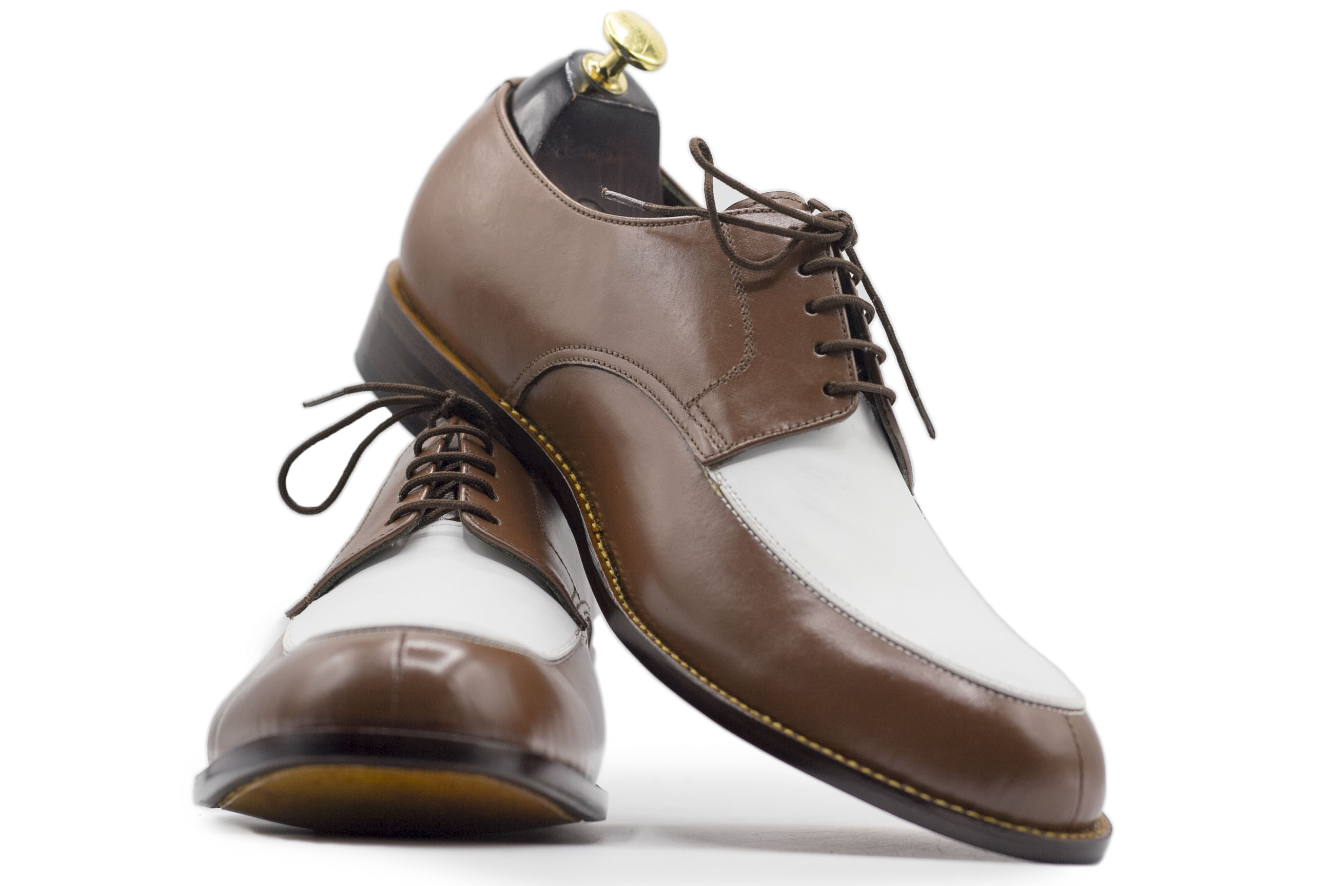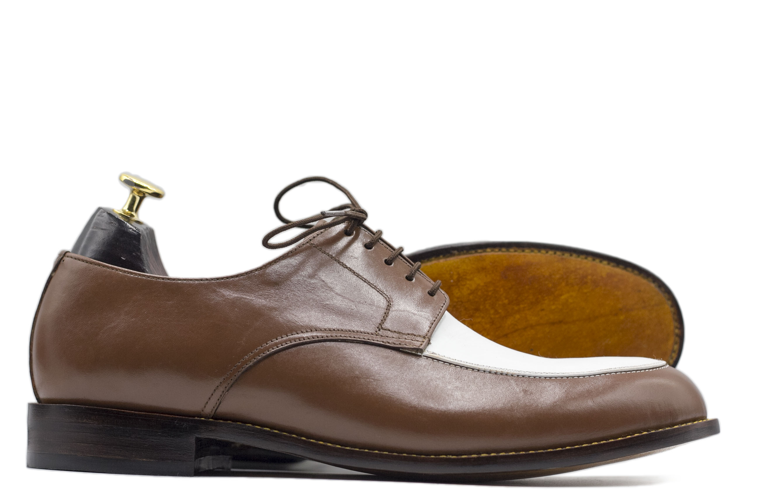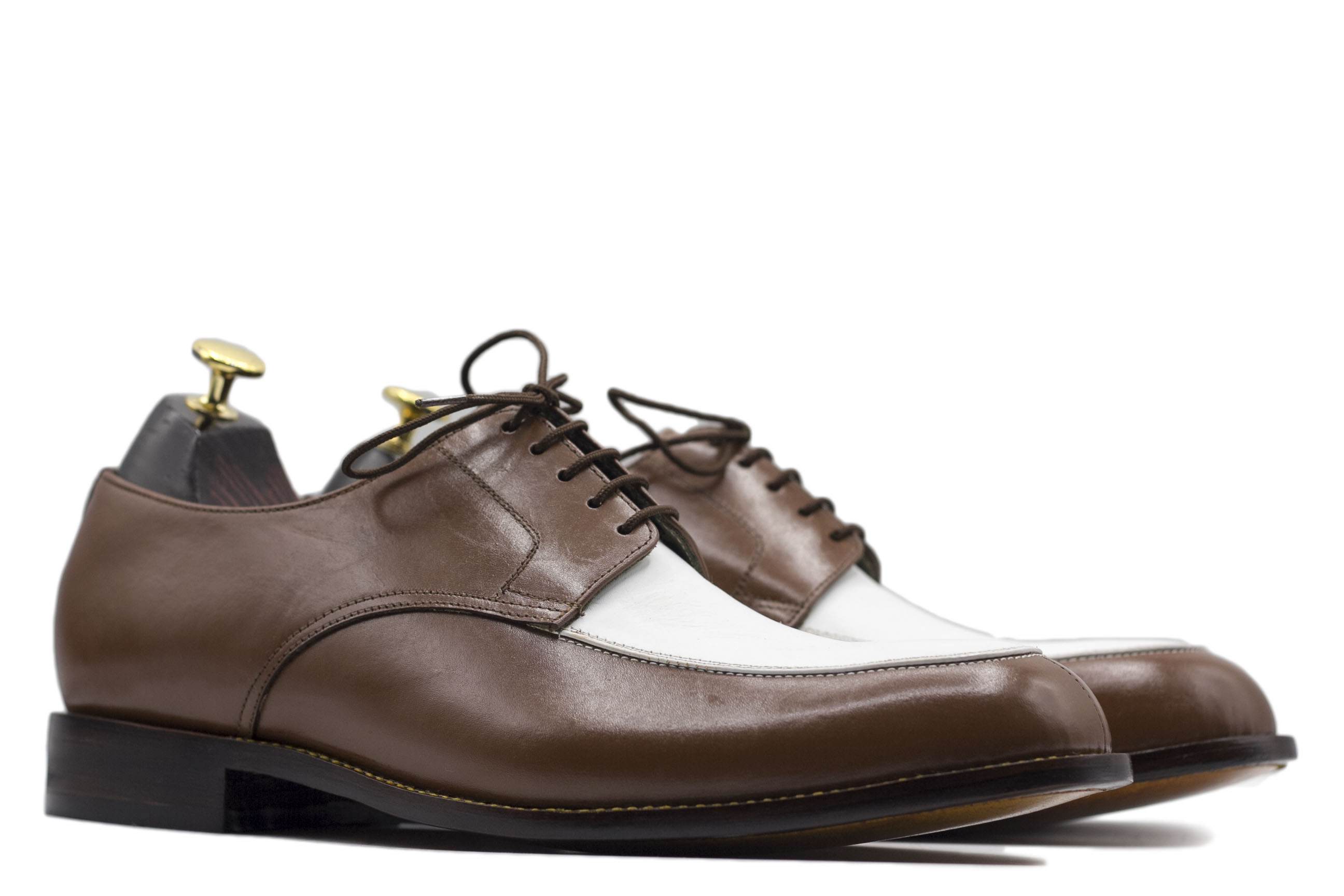 Two Tone Round Toe Lace Up Leather Handmade Shoes